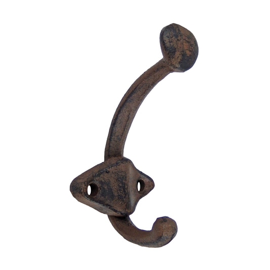 Cast Iron Double Wall Hook Rustic Coat Hanger Key Holder Towel Purse 3 1/2 inch