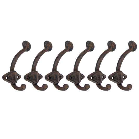 6 Cast Iron Double Wall Hooks Rustic Coat Hanger Key Holder Towel Purse 3 1/2 in