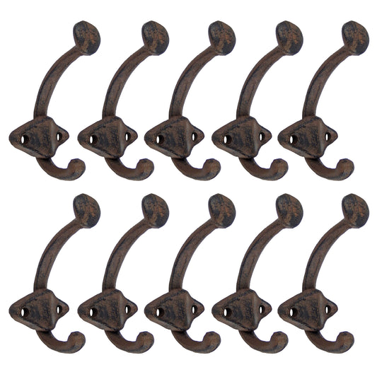 10 Cast Iron Double Wall Hooks Rustic Coat Hanger Key Holder Towel Purse 3 1/2 in