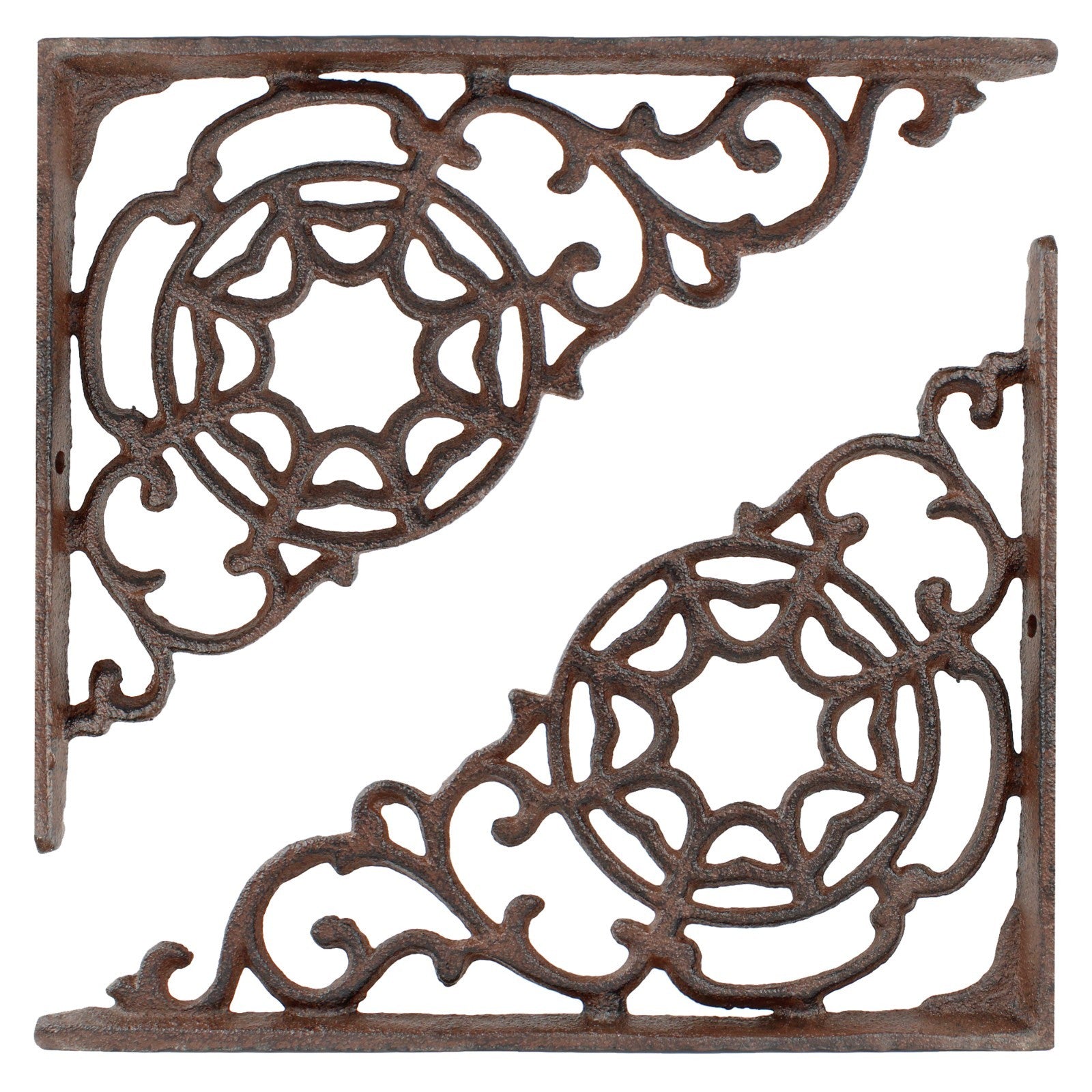2 Rustic Cast Iron Scrolls Web Shelf Brackets Ornate Corner Brace 9 x 7 1/4 inch