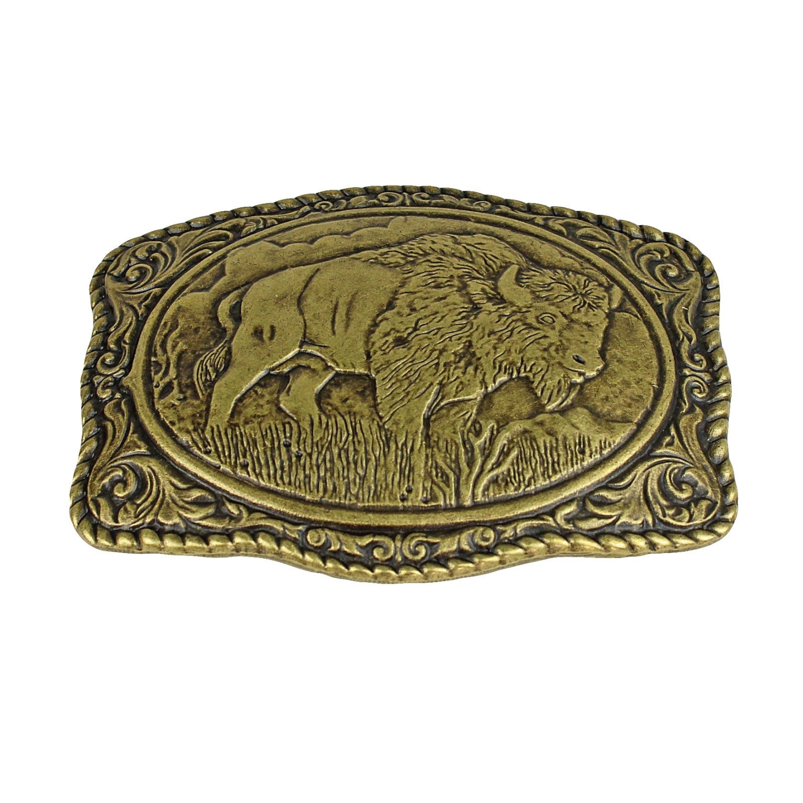 American Bison Buffalo Floral Belt Buckle Antique Bronze Fits 1.5 inch Belts