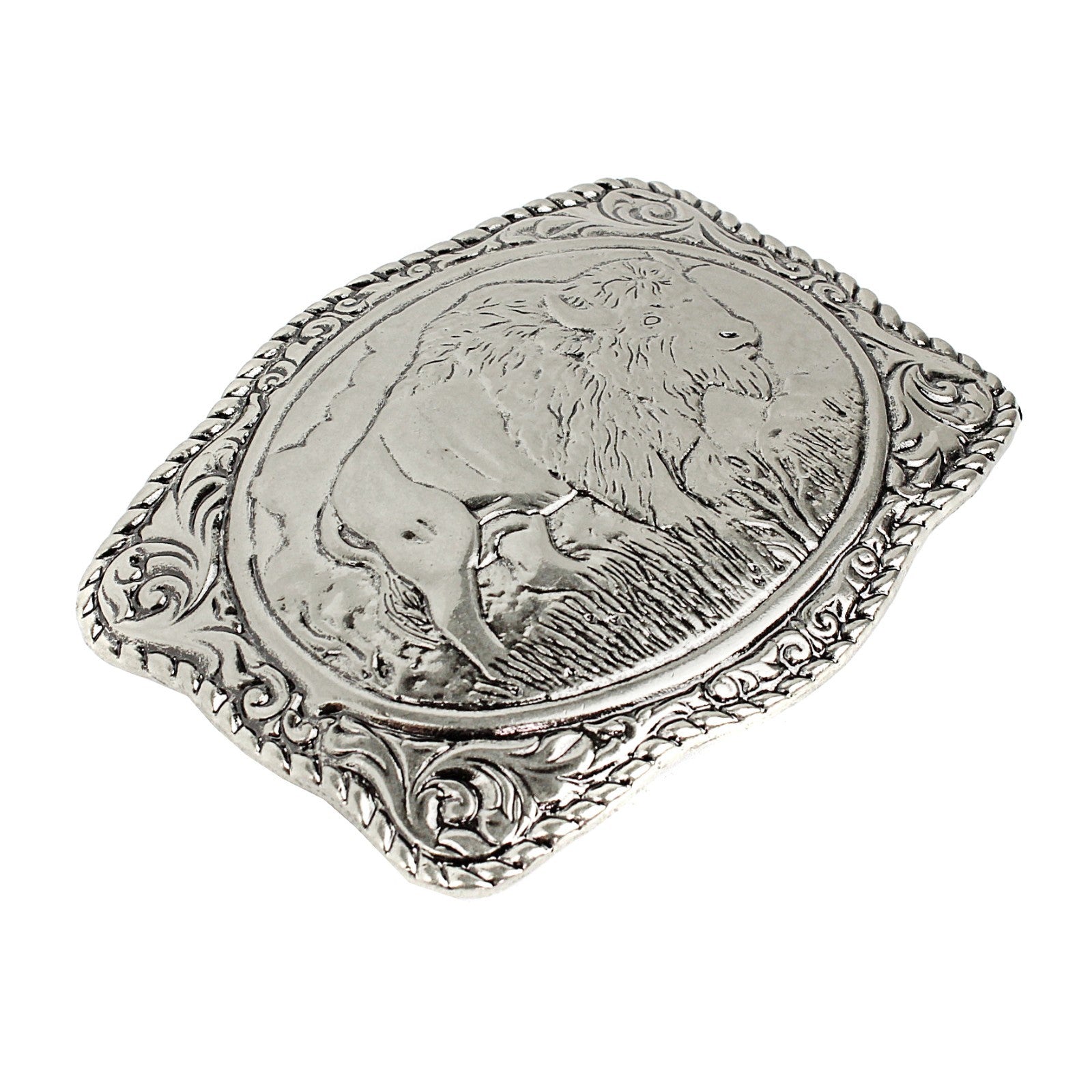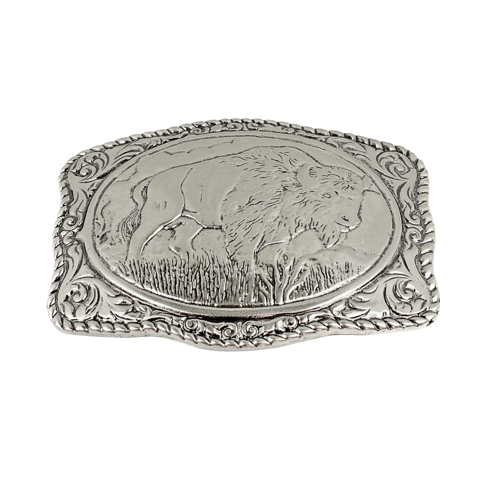 American Bison Buffalo Floral Belt Buckle Antique Silver Fits 1.5 inch Belts