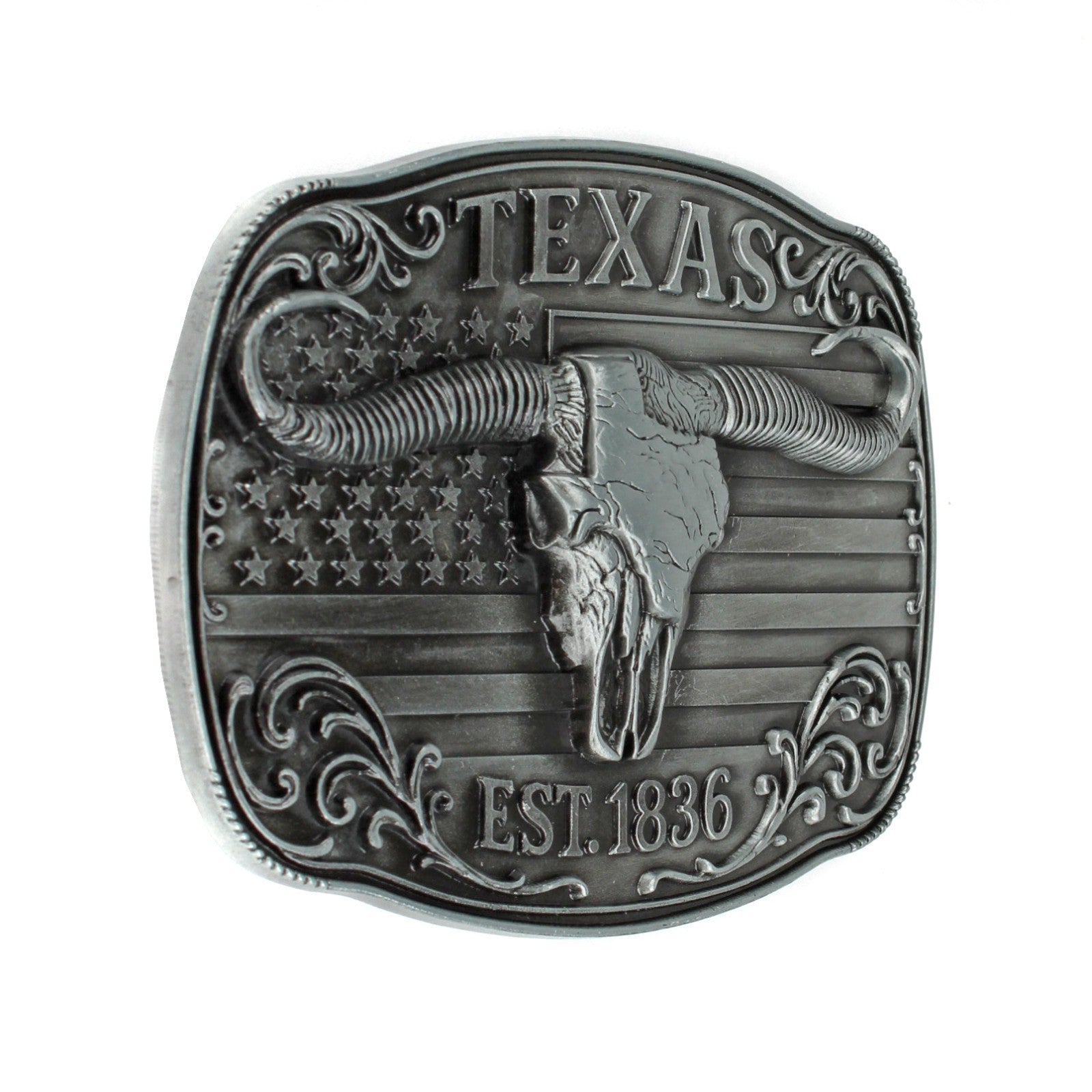American Flag Texas 1836 Longhorn Belt Buckle Antique Silver Fits 1.5 inch Belts