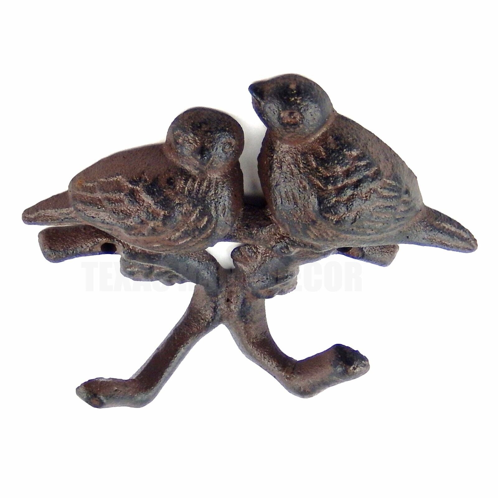Birds on Tree Branch Double Wall Hook Coat Rack Purse Towel Key Hanger Rustic Cast Iron #G136