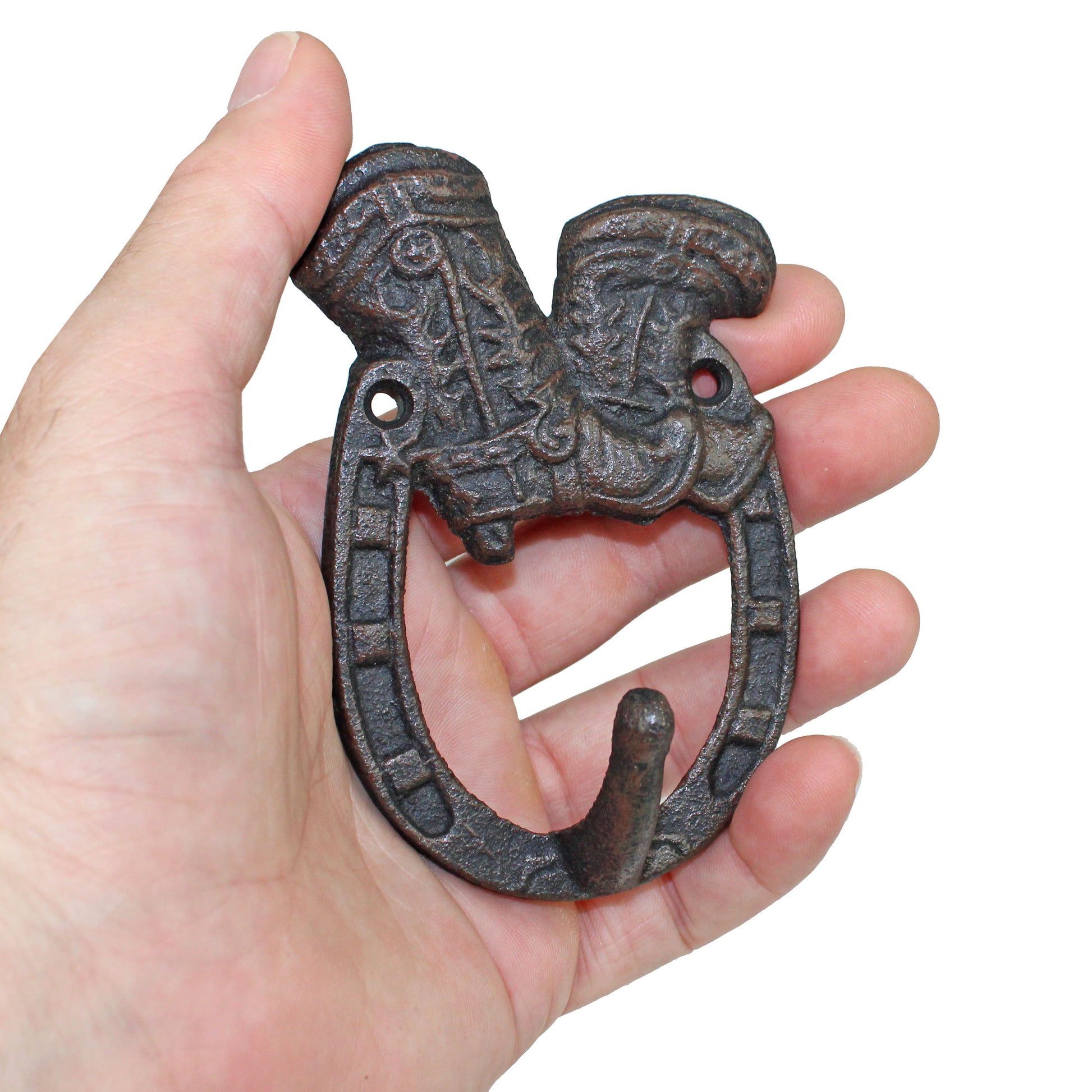 Rustic Cast Iron Lucky Horseshoe Boots Western Wall Hook Key Towel Coat Hanger