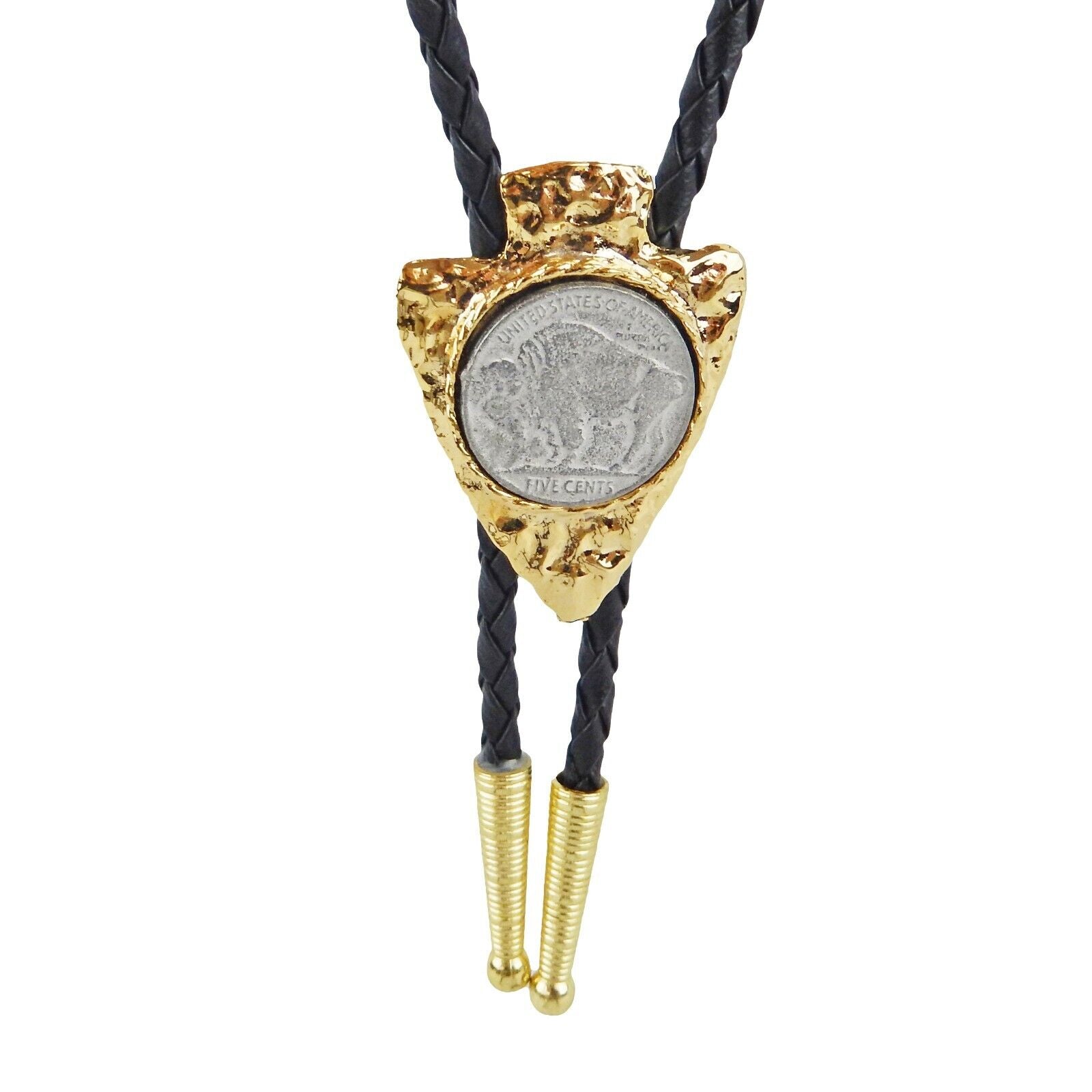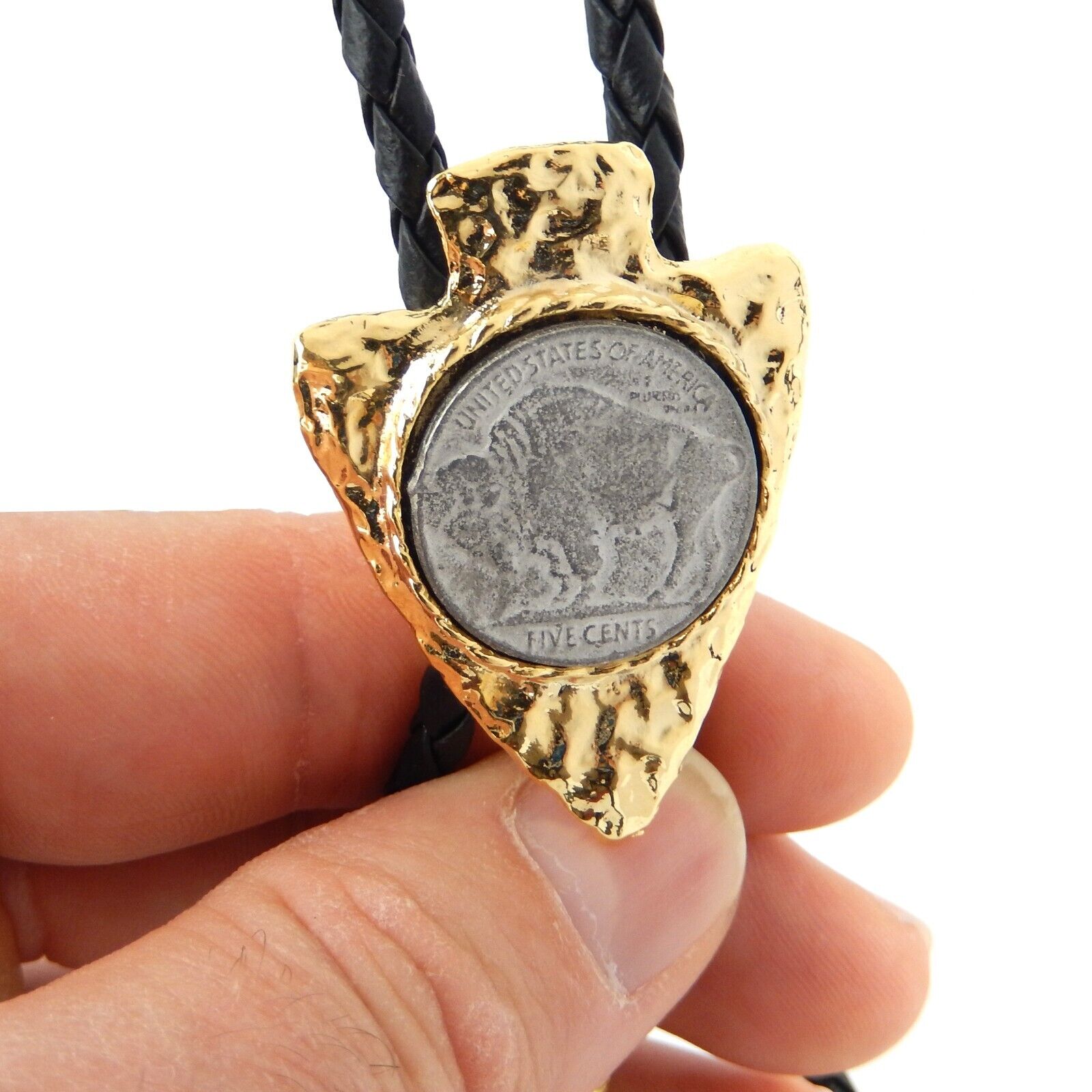 Buffalo Coin Gold Arrowhead Bolo Tie 36 inch Adjustable Braided Cord #BT-25