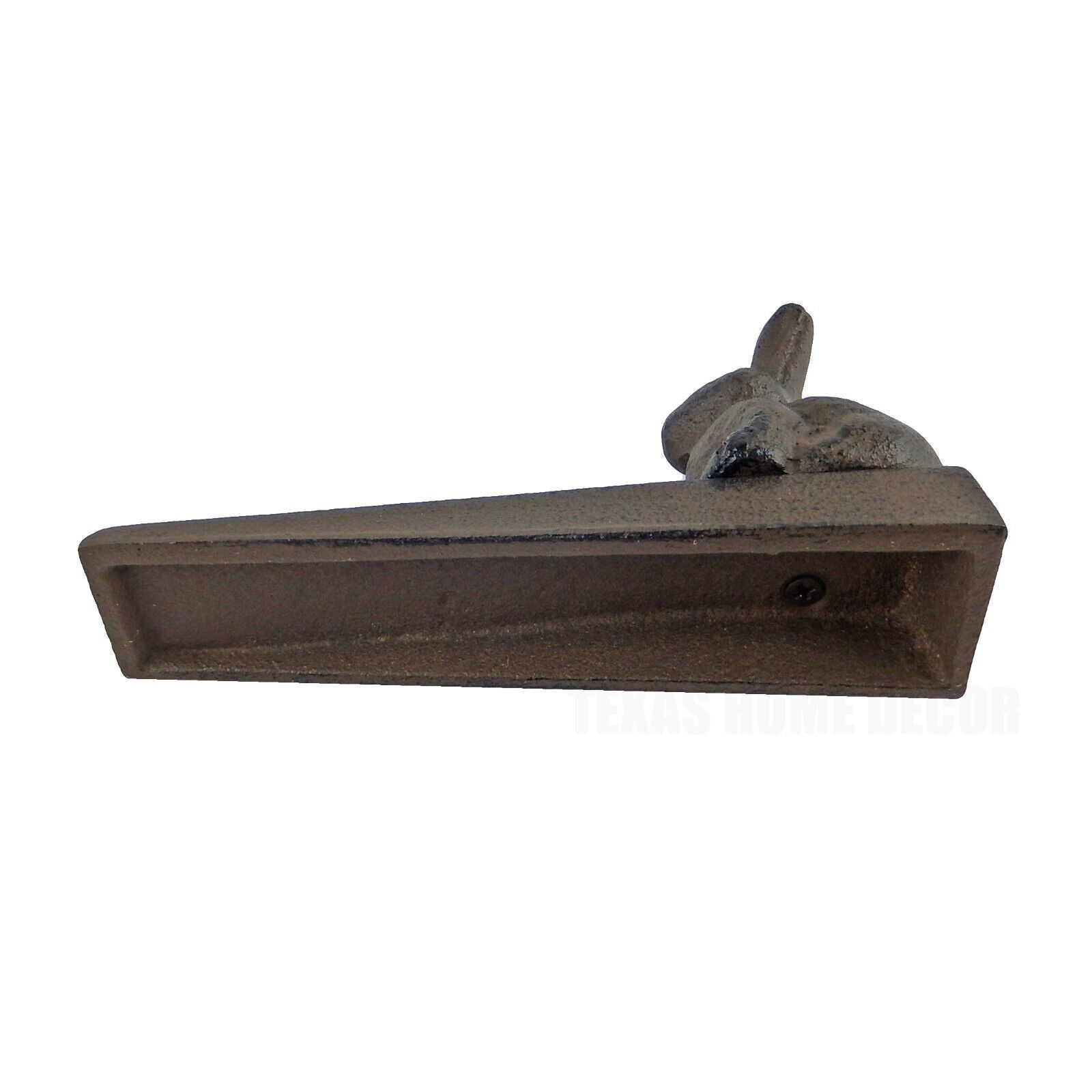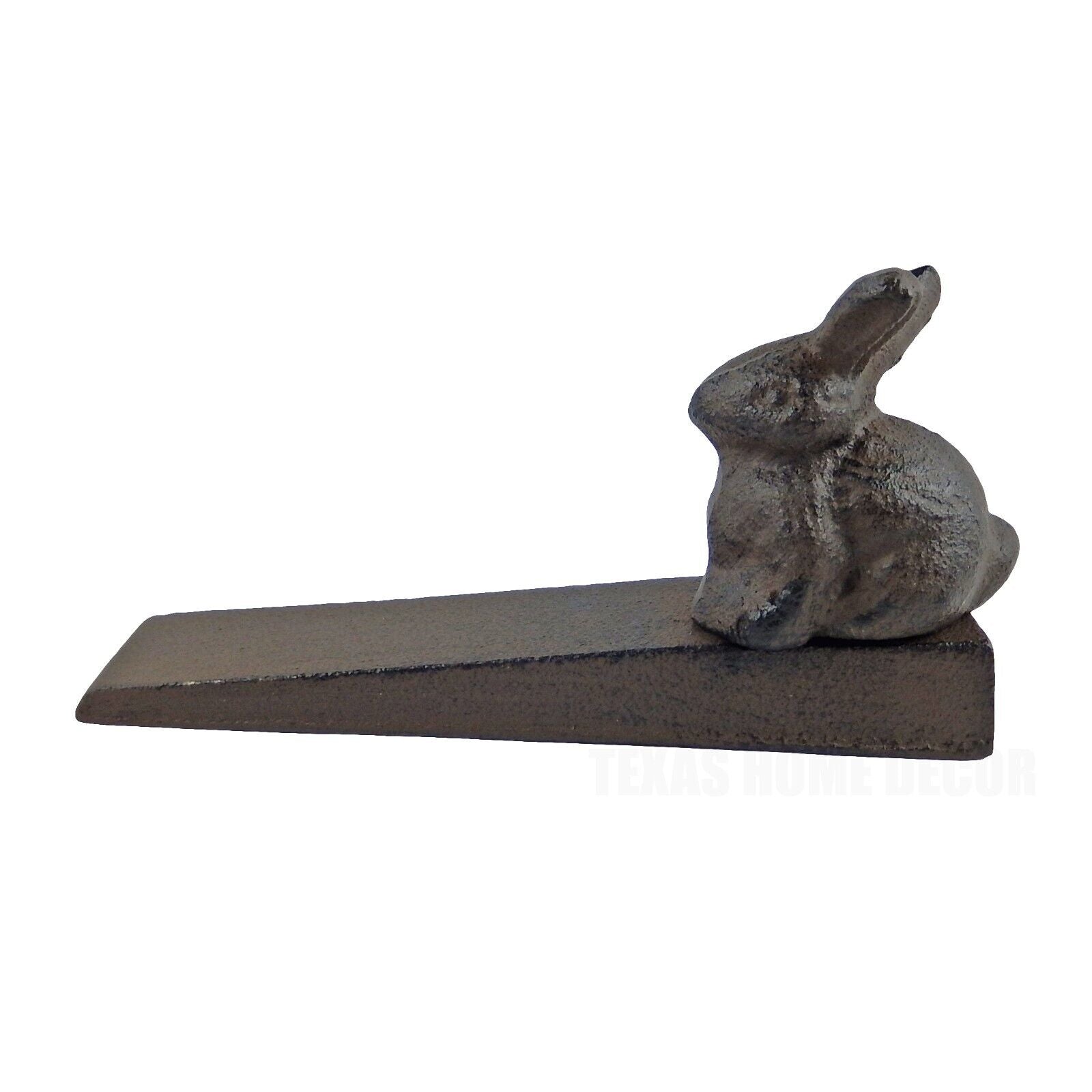 Bunny Rabbit Doorstop Wedge Cast Iron Rustic Antique Brown Finish Garden Decor #054A