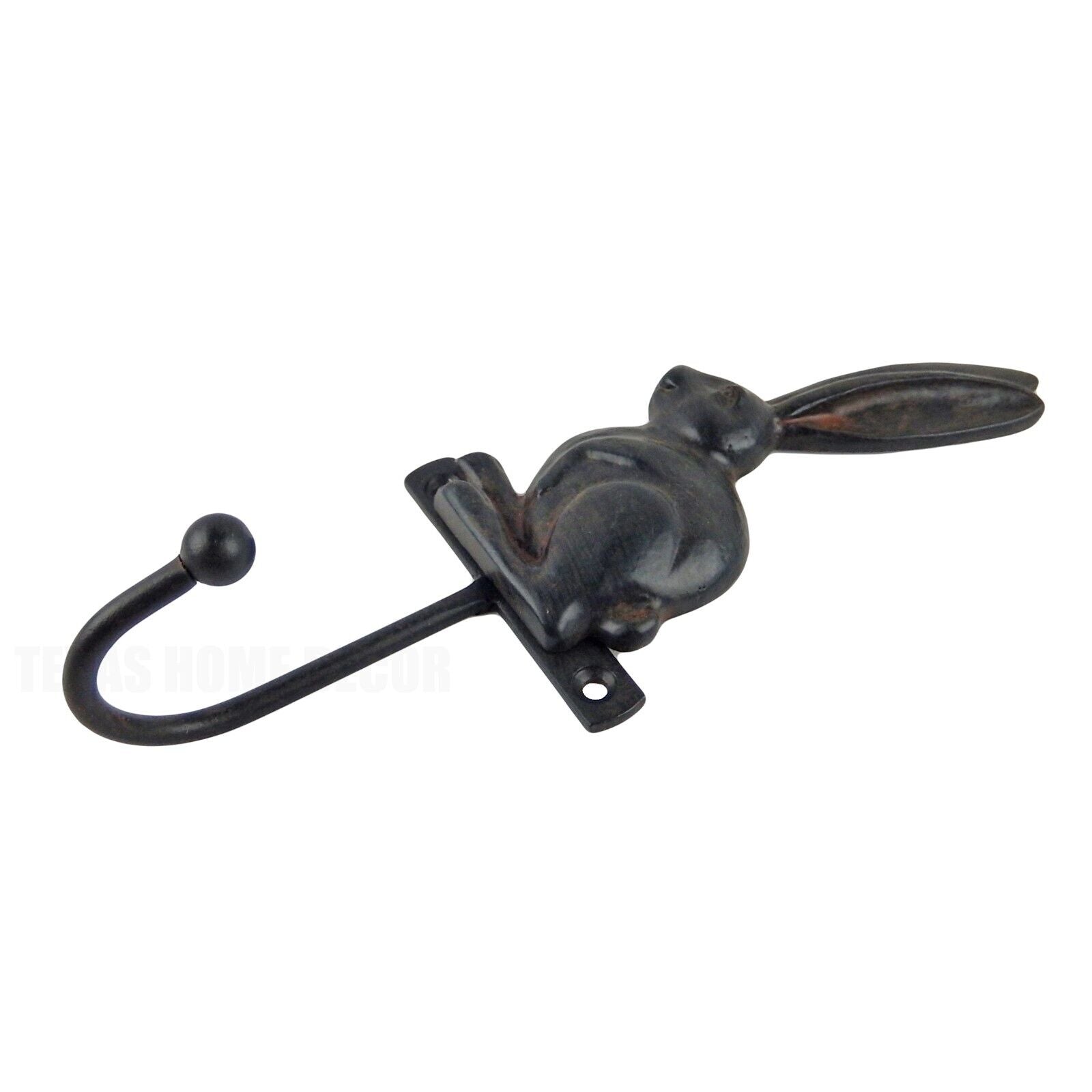 Bunny Rabbit Wall Hook Key Towel Coat Hanger Rustic Brown Wrought Iron #CMR 907