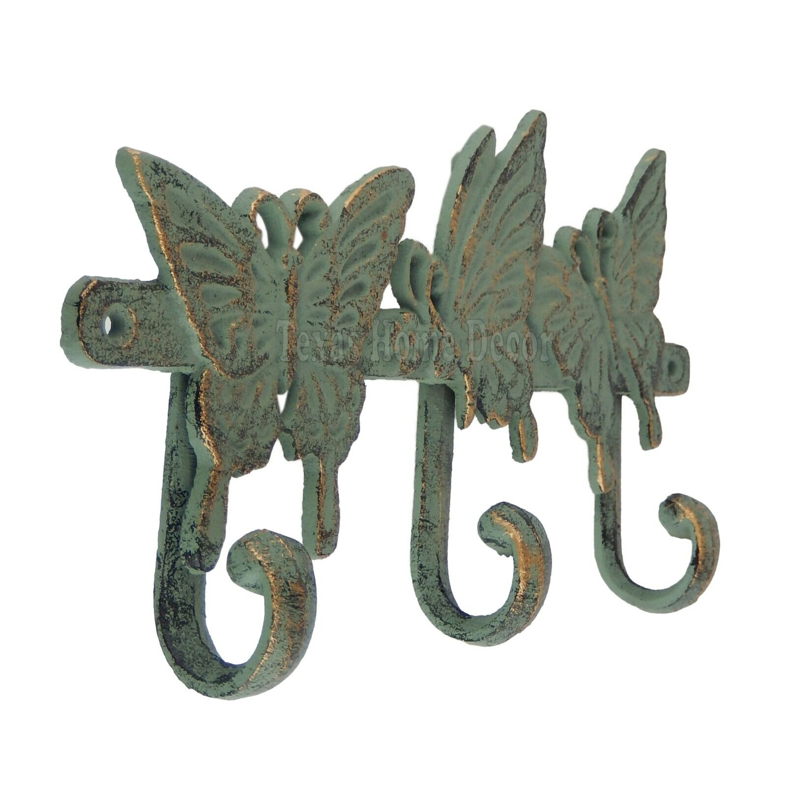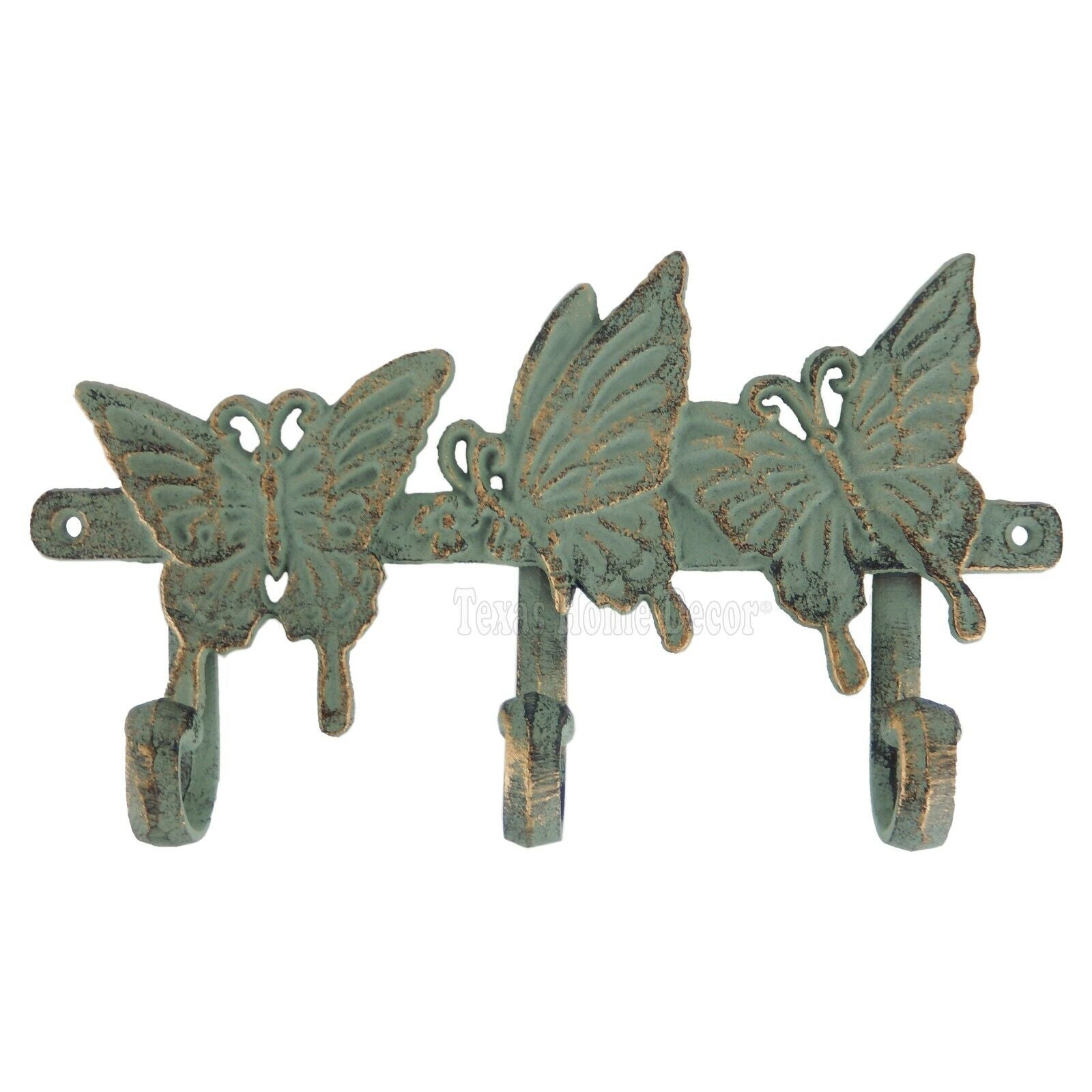 Butterflies Coat Rack Wall Hook Key Hooks Hanger Cast Iron Sea Green & Gold