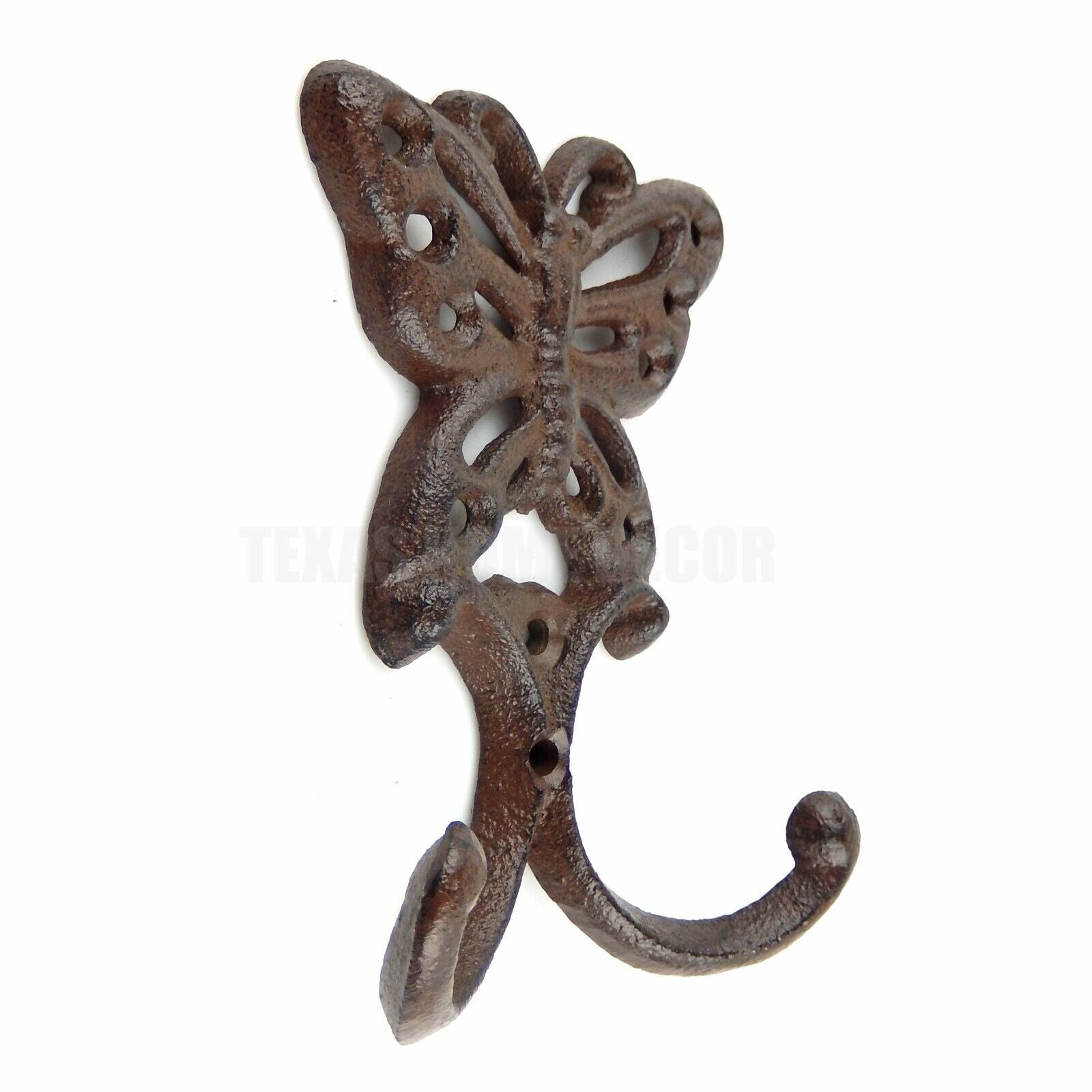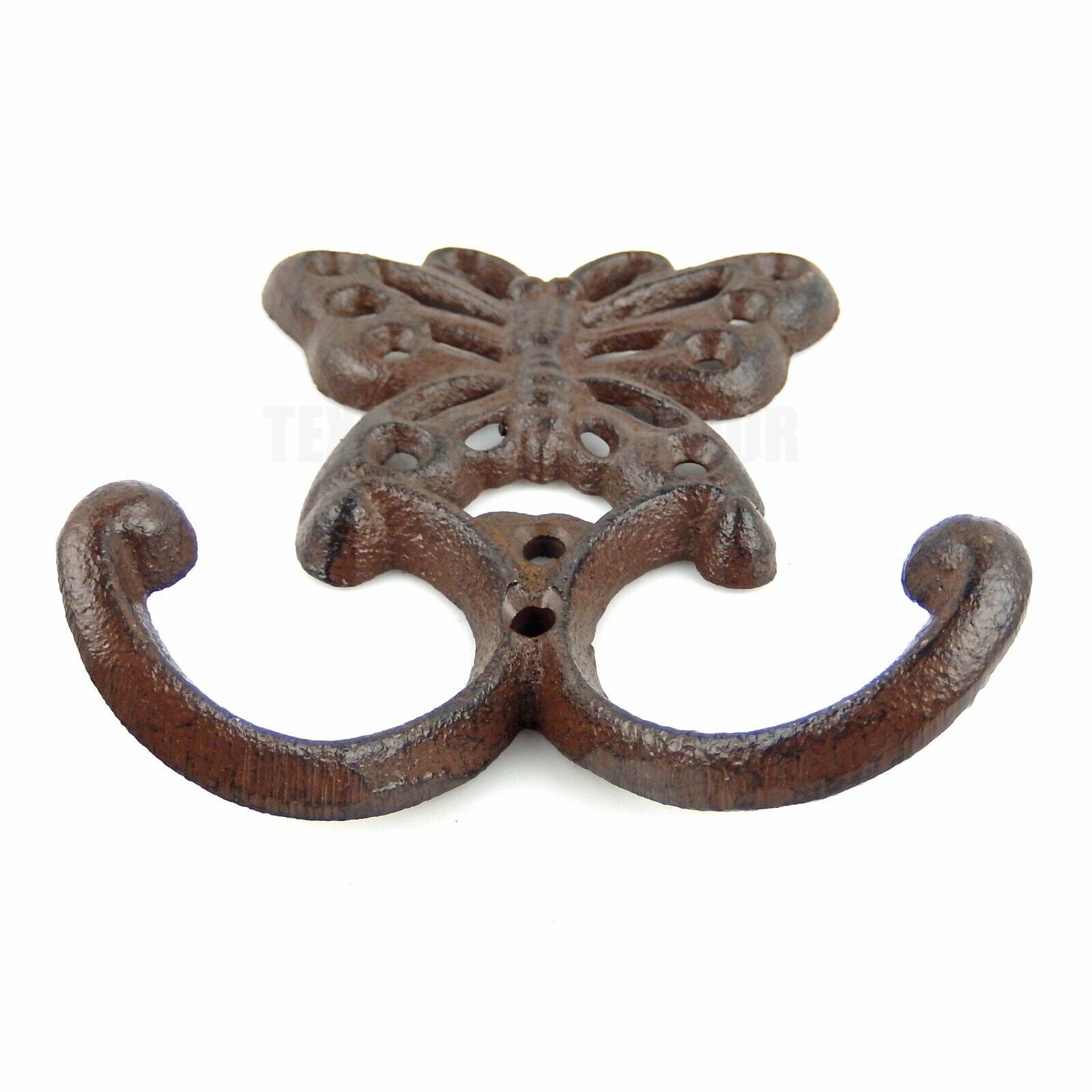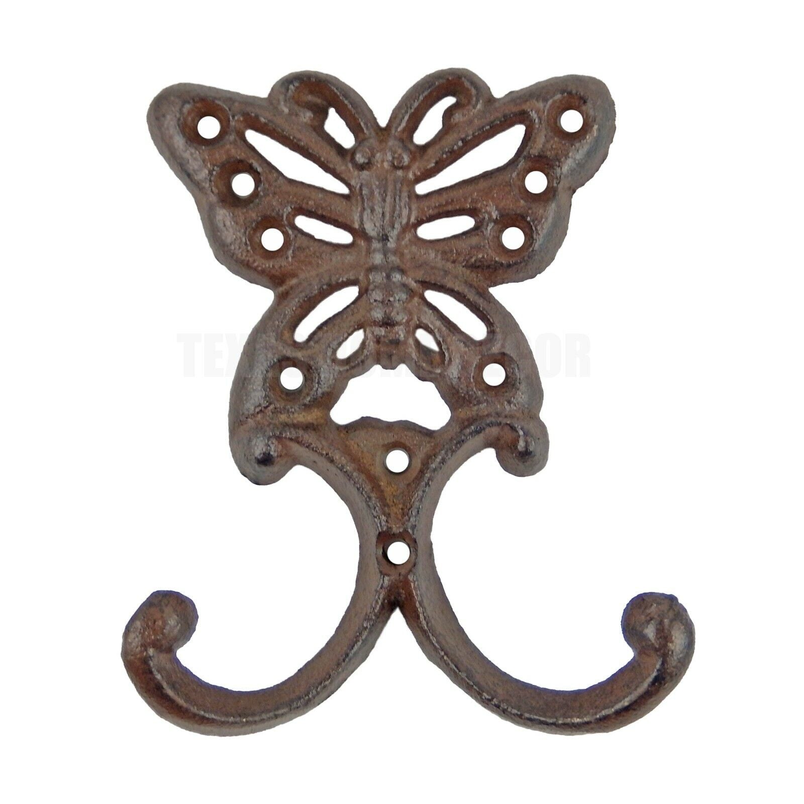 Butterfly Double Wall Hook Cast Iron Coat Towel Key Hanger Antique Style Brown