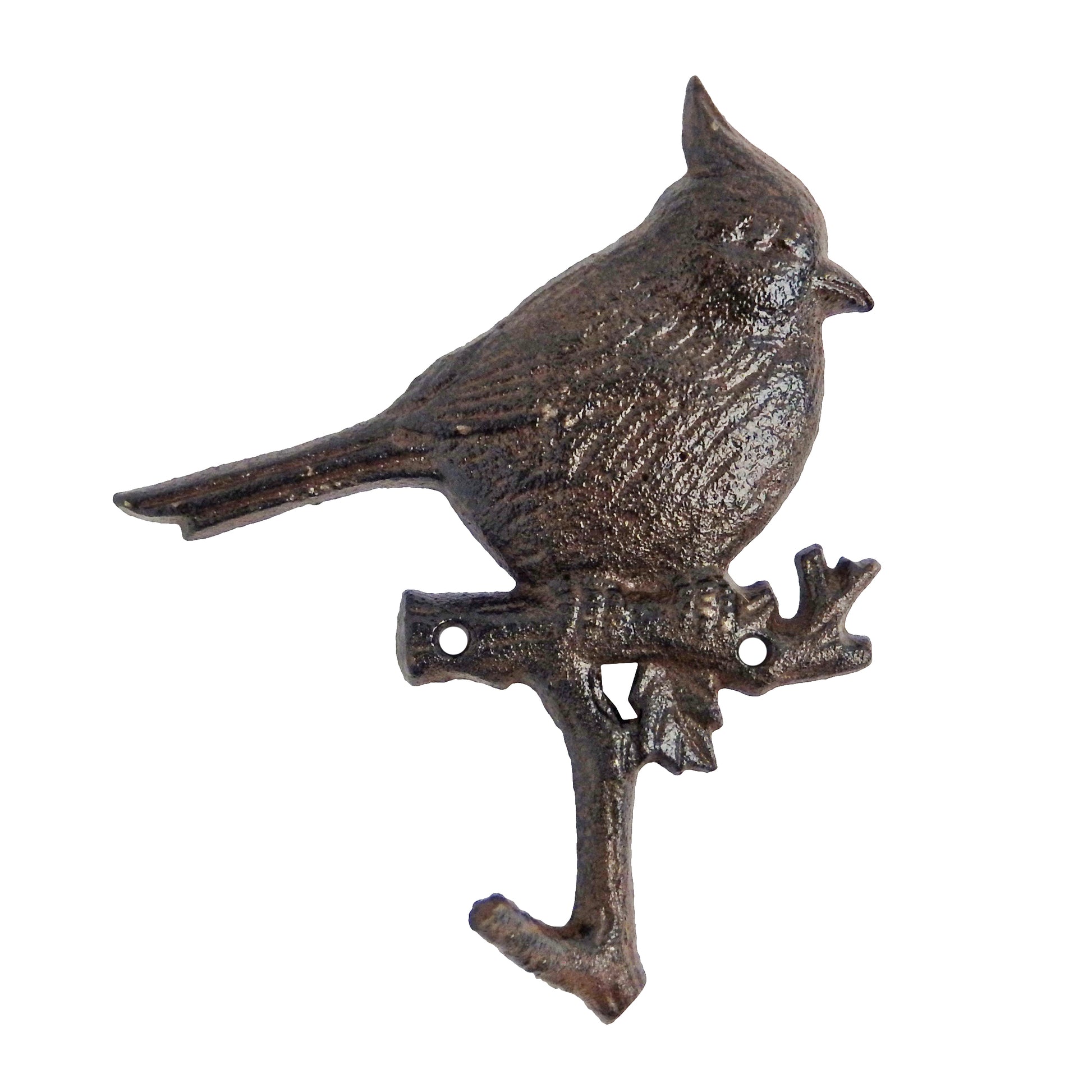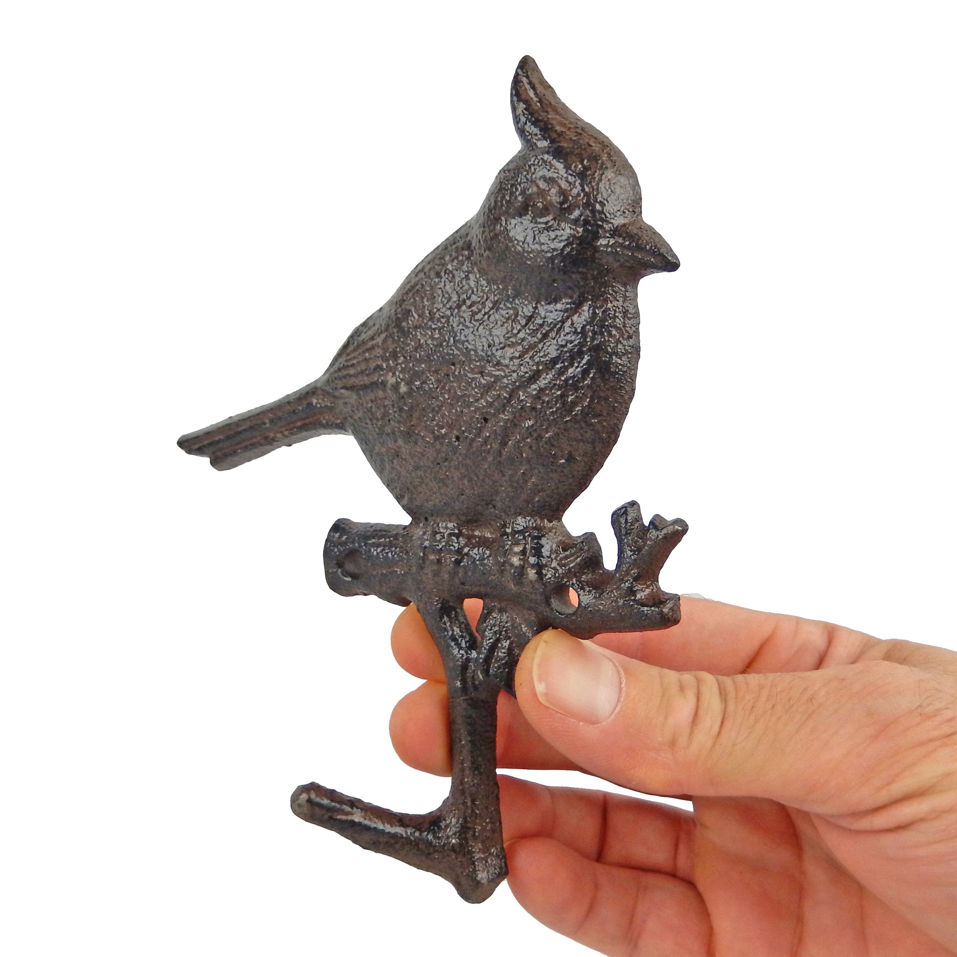 Cast Iron Cardinal Bird Branch Wall Hook Key Towel Coat Hanger Rustic Brown