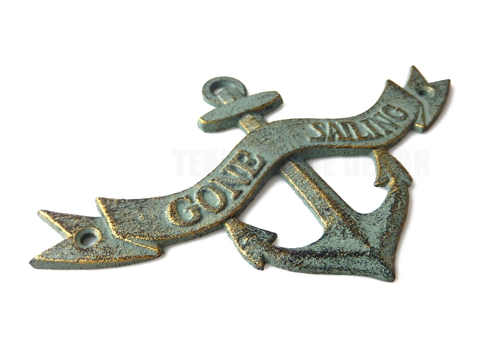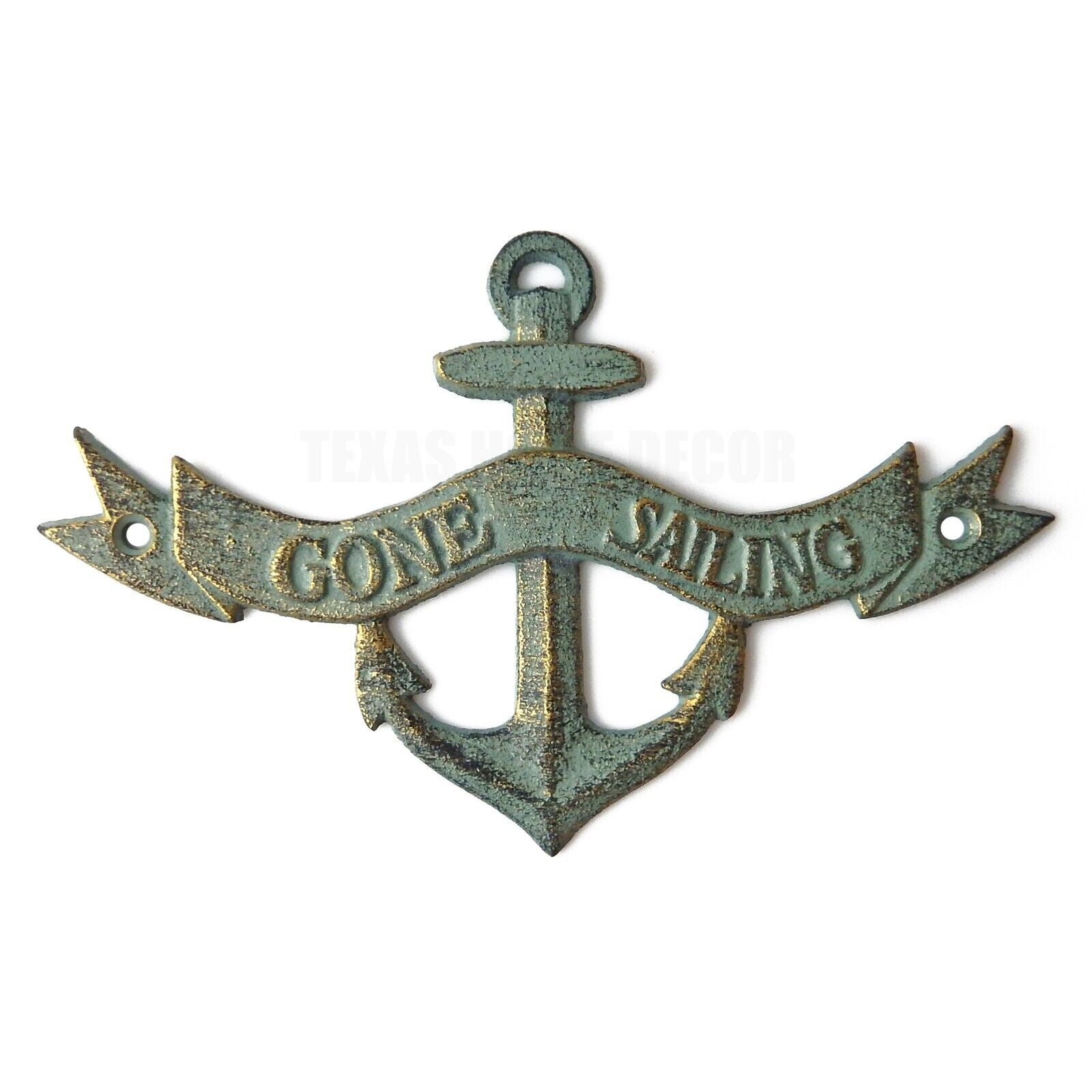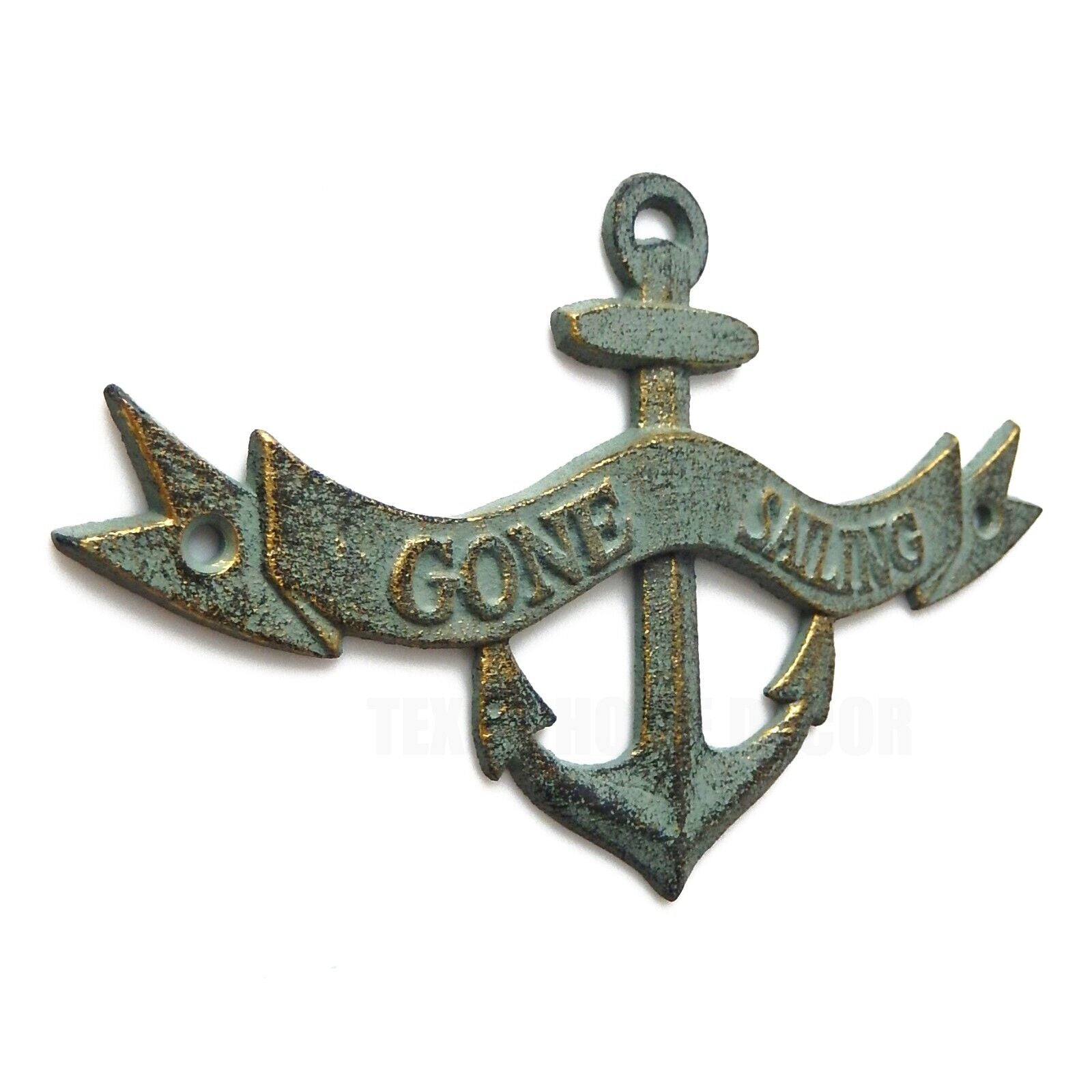 Cast Iron Anchor Gone Sailing Wall Plaque Sign Nautical Verdigris Patina Finish