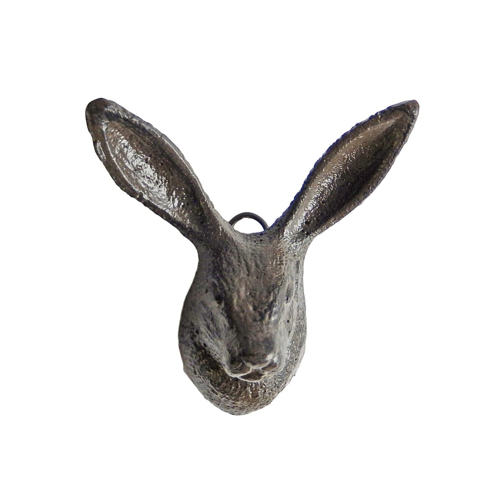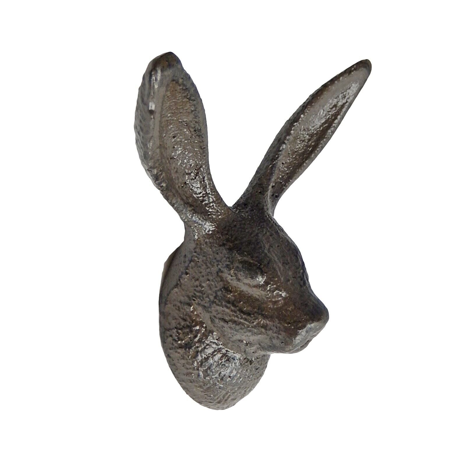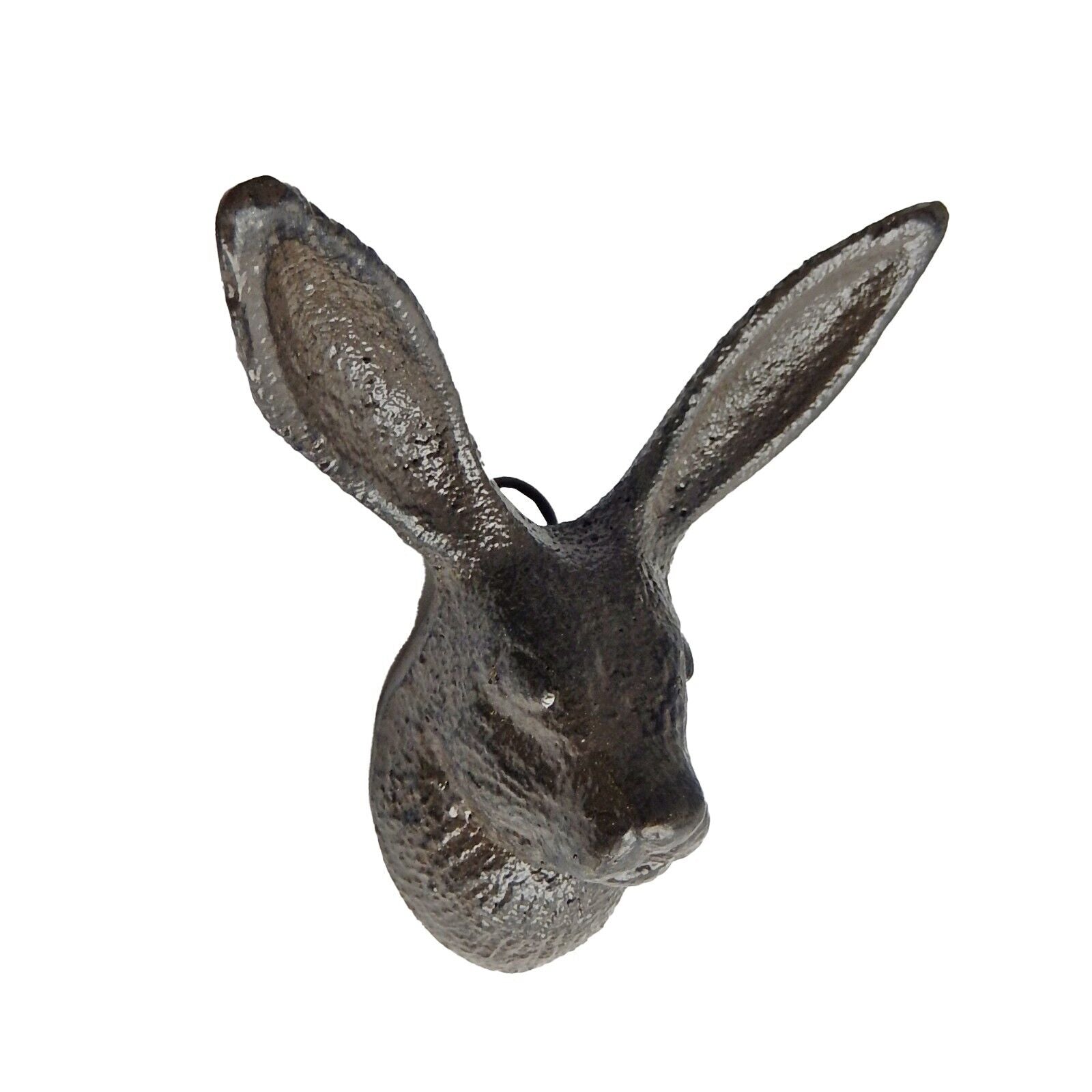 Add a touch of rustic charm to your home decor with this Cast Iron Bunny Rabbit Ears Wall Hook. The brown patina finish and antique style of this hanger make it a perfect addition to any vintage-themed home. The hook style is rabbit ears, and it features 2 usable hooks which provide ample space for hanging your belongings. Constructed with high-quality cast iron material, this wall-mounted towel hanger is sturdy and durable. It weighs less than 1 lb. and has a height of 4 inches and a width of 3 1/2 in. The ears stick out 2 inches when mounted. It comes with a metal loop on the back for easy mounting. Get organized in style with this hook, which is suitable for use in the kitchen, bathroom, or any other room in your home. (Mounting screw not included).