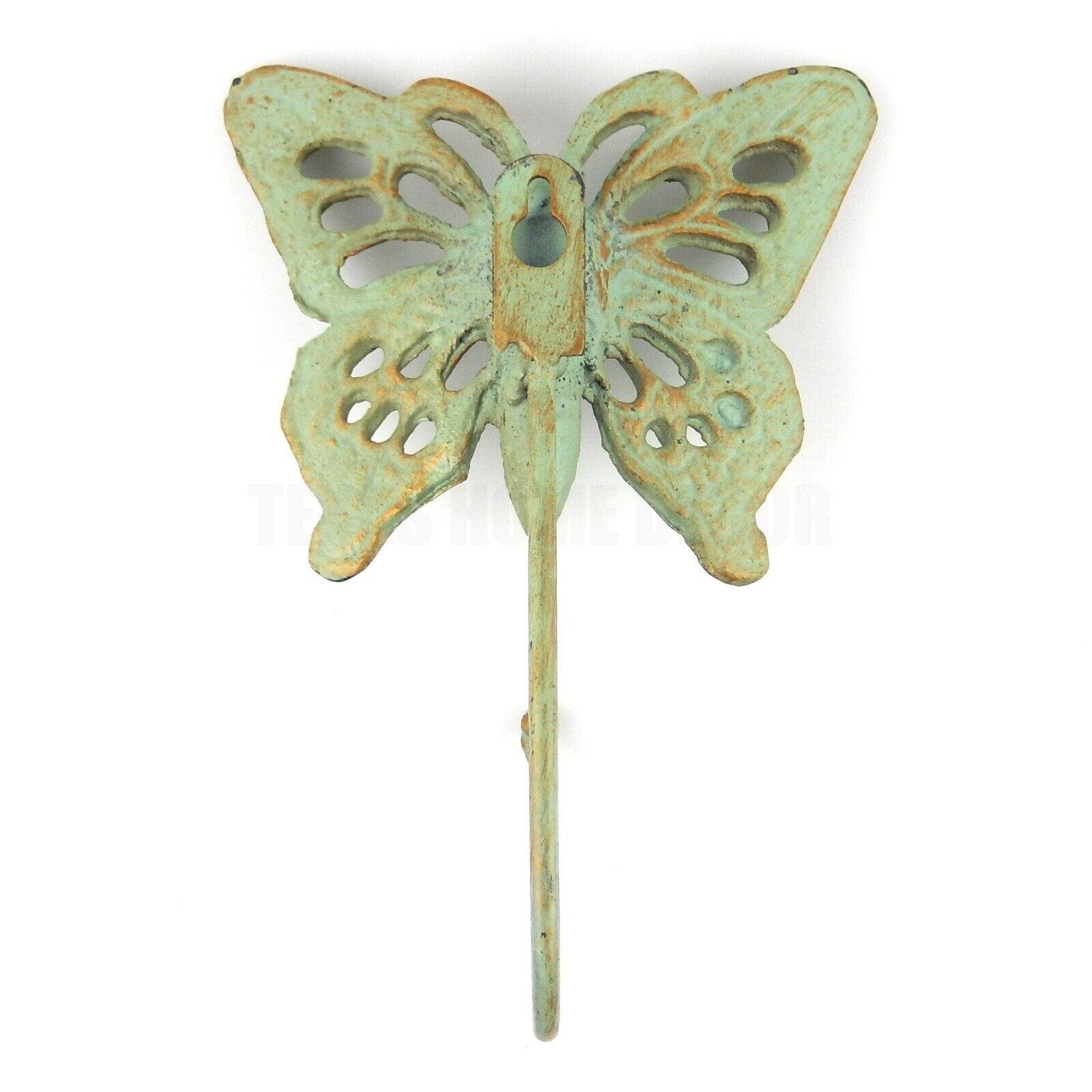 Cast Iron Butterfly Wall Hook Key Towel Coat Robe Hanger Antique Weathered Green #2395
