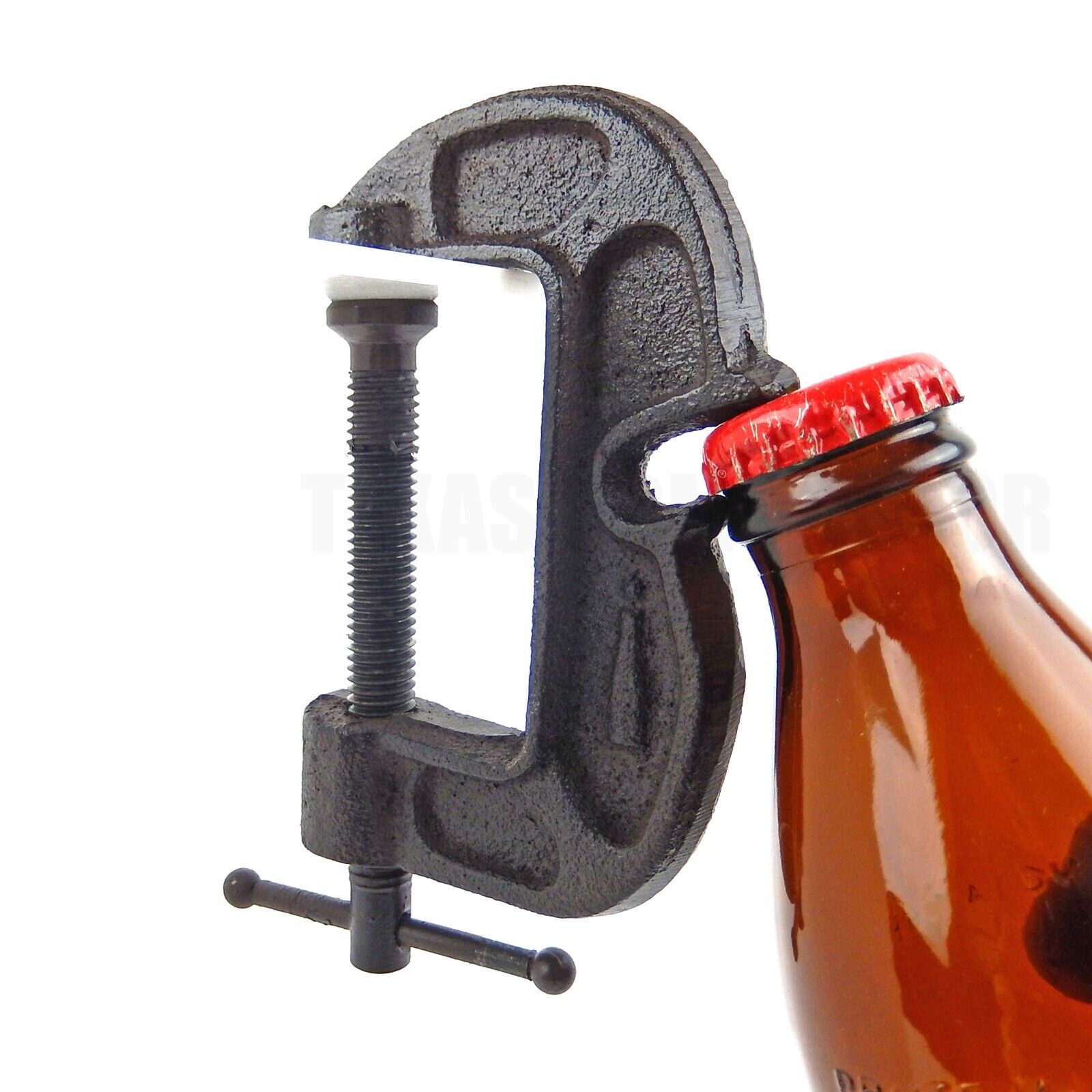 Cast Iron C Clamp Beer Soda Bottle Opener Rustic Bar Pub Workshop Garage Decor