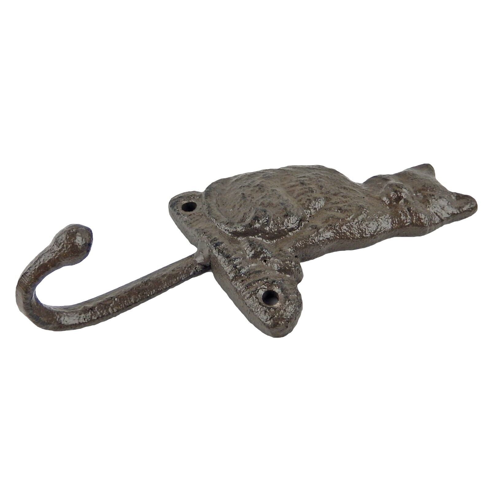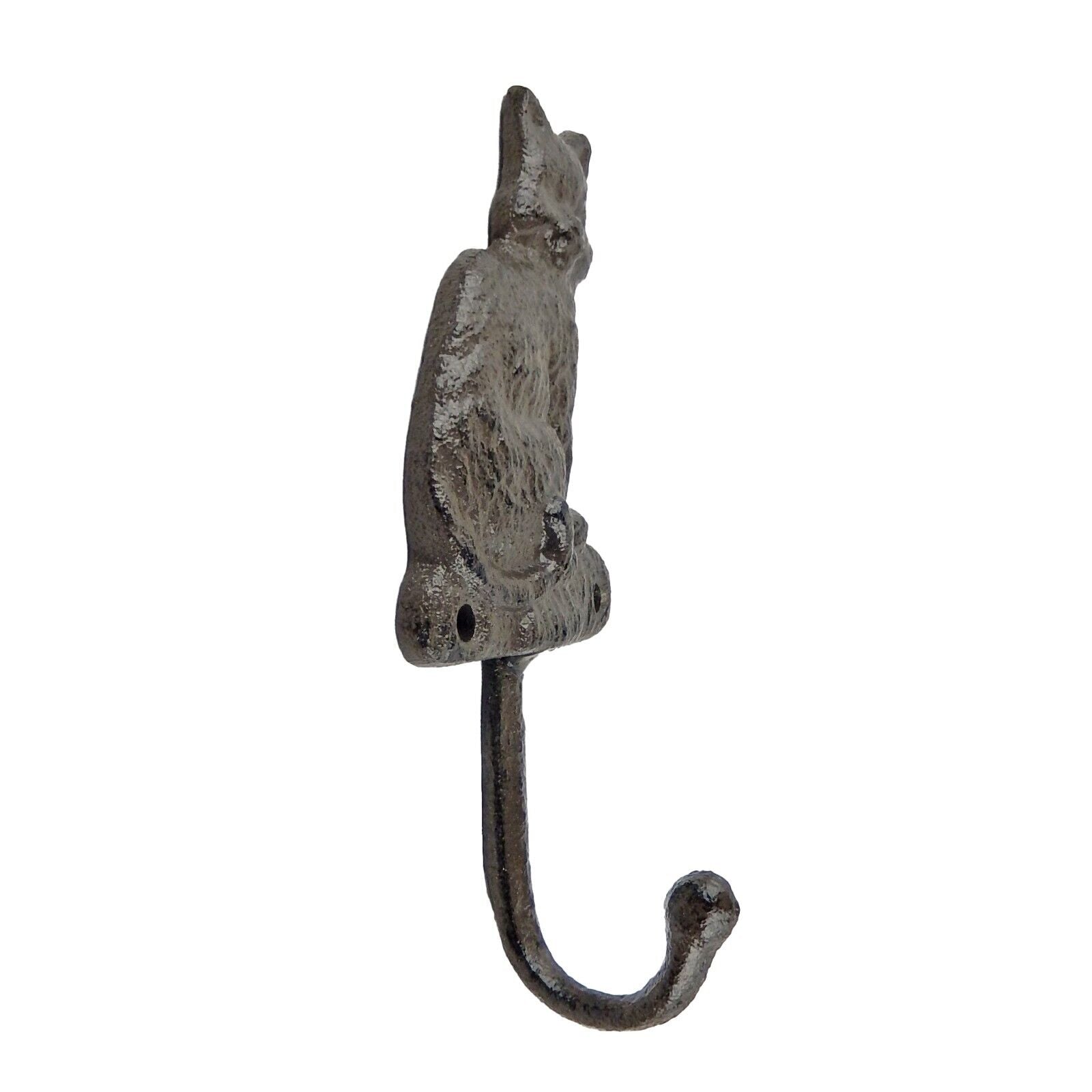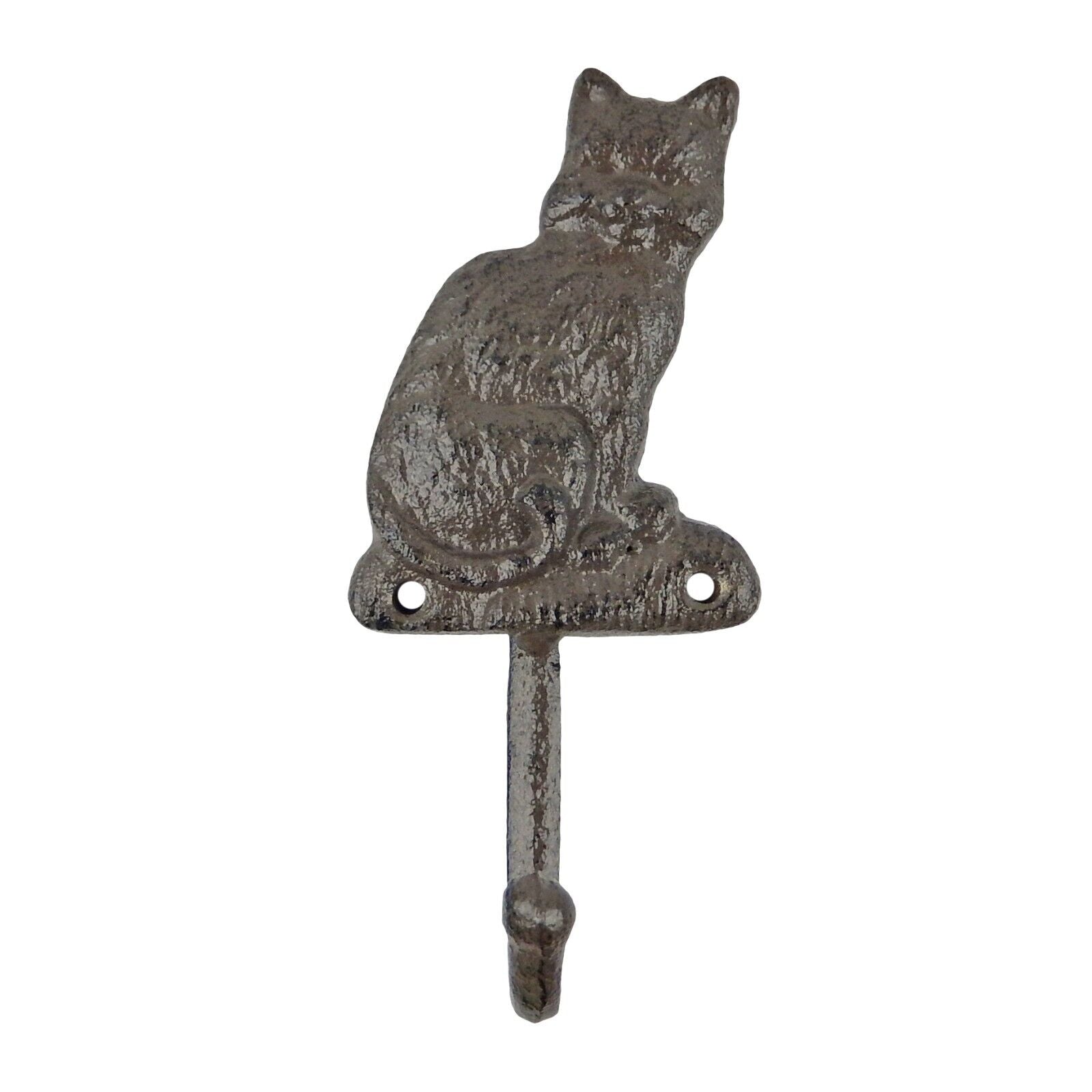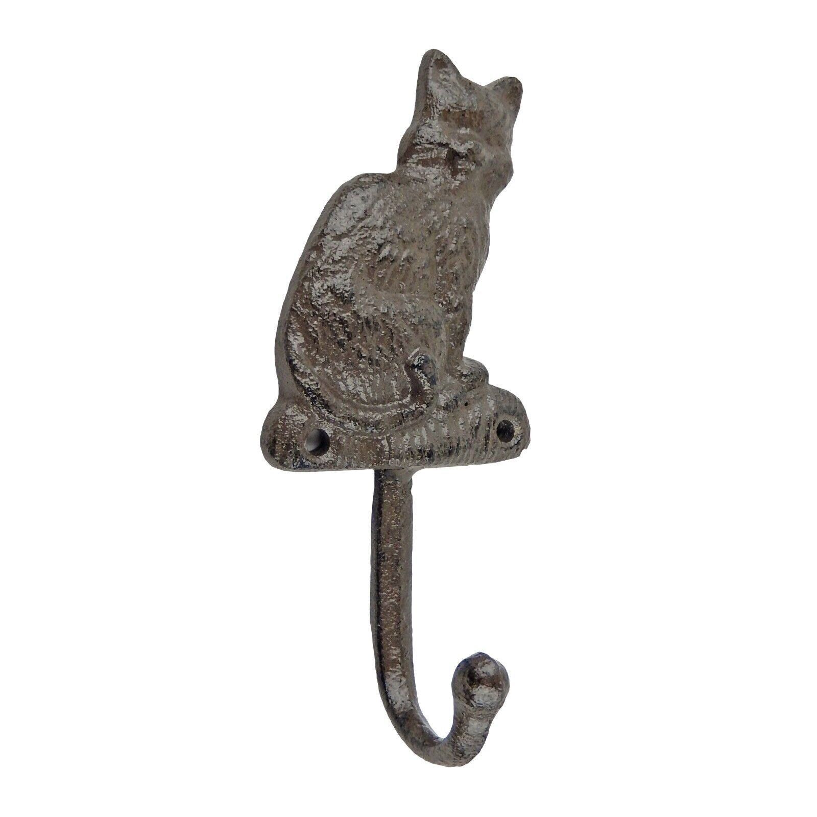 Cast Iron Cat Wall Hook Key Towel Coat Hanger Rustic Antique Brown Patina