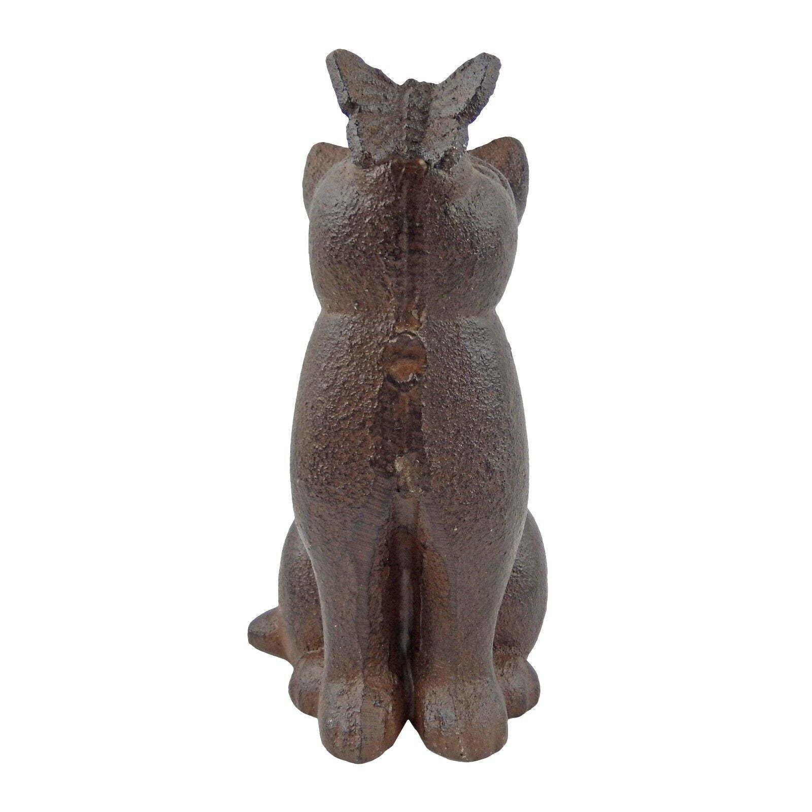 Cast Iron Cat With Butterfly on Nose Figurine Statue Shelf Decor Sitter 5.75 in #UX-4660