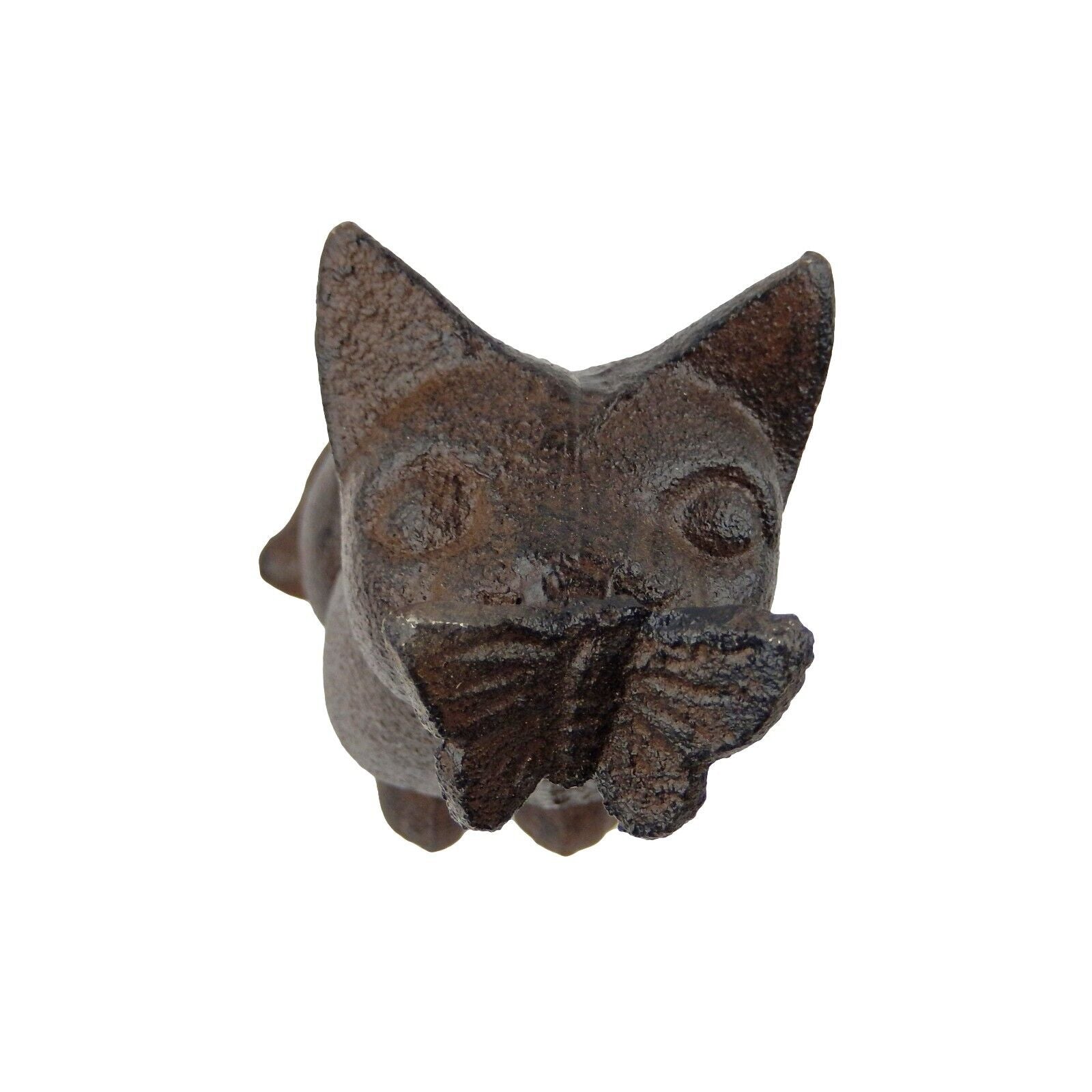 Cast Iron Cat With Butterfly on Nose Figurine Statue Shelf Decor Sitter 5.75 in