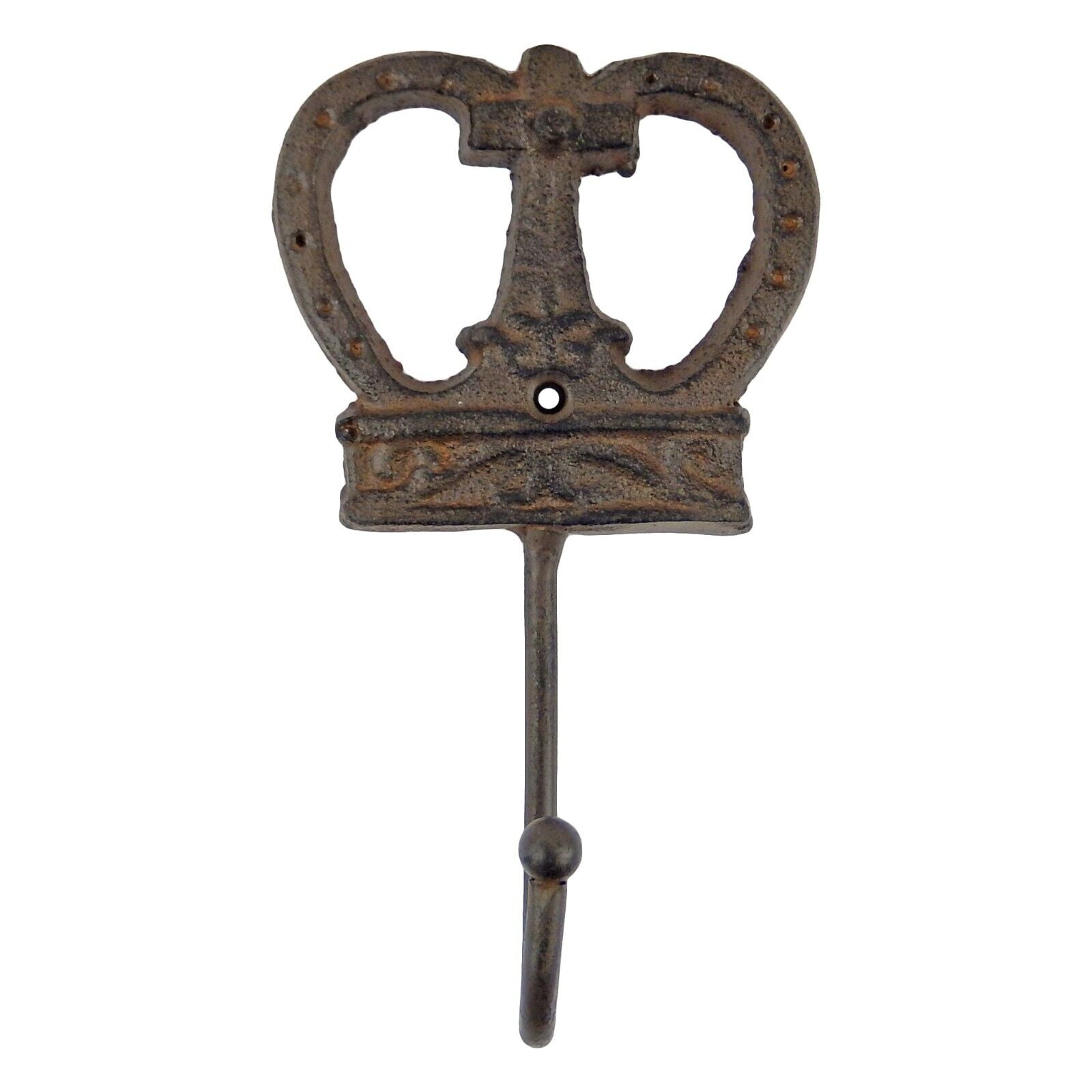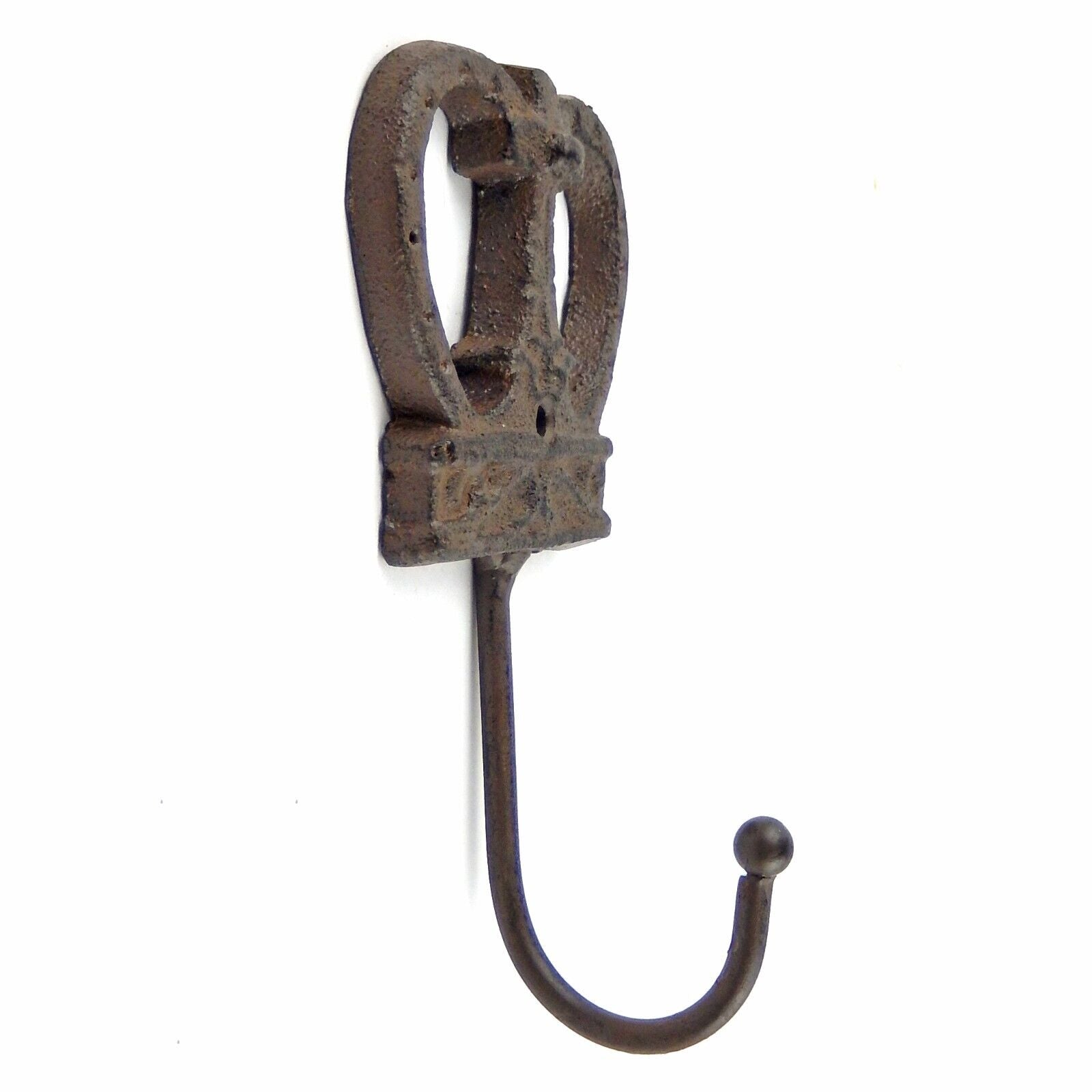 Cast Iron Crown Cross Wall Hook Key Coat Hanger Royal Antique Style Brown #11168
