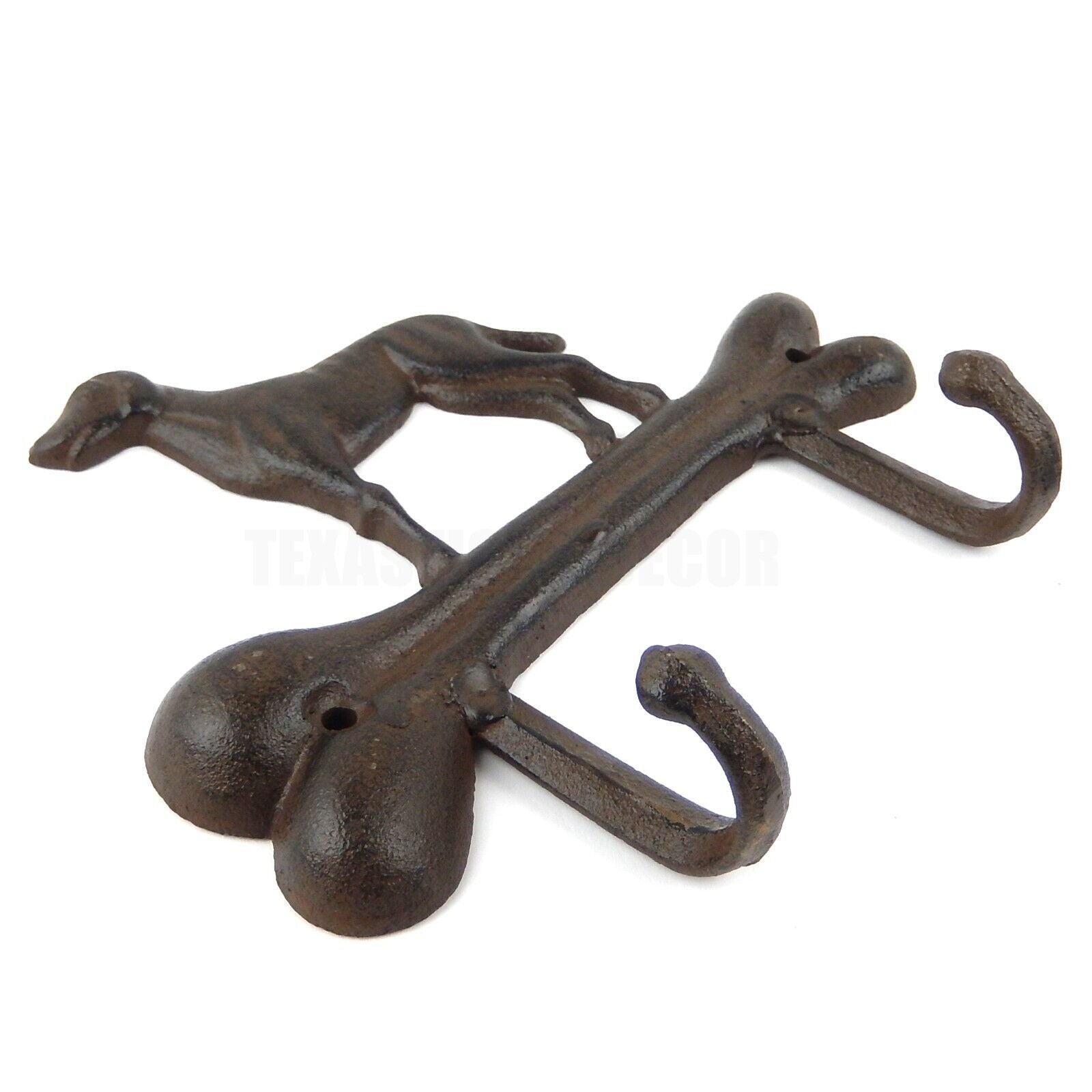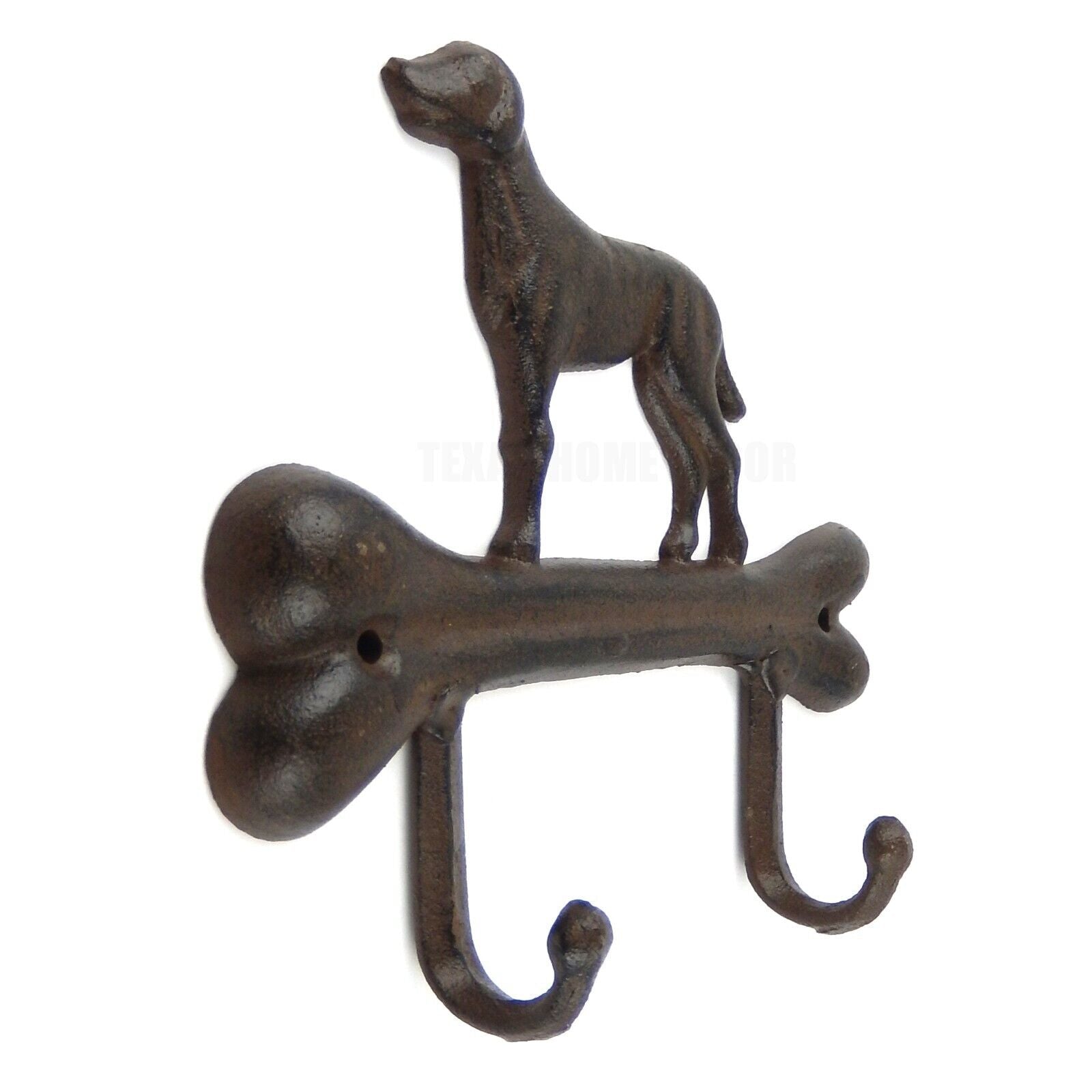 Cast Iron Dog Bone Leash Double Wall Hook Key Towel Coat Hanger Antique Brown