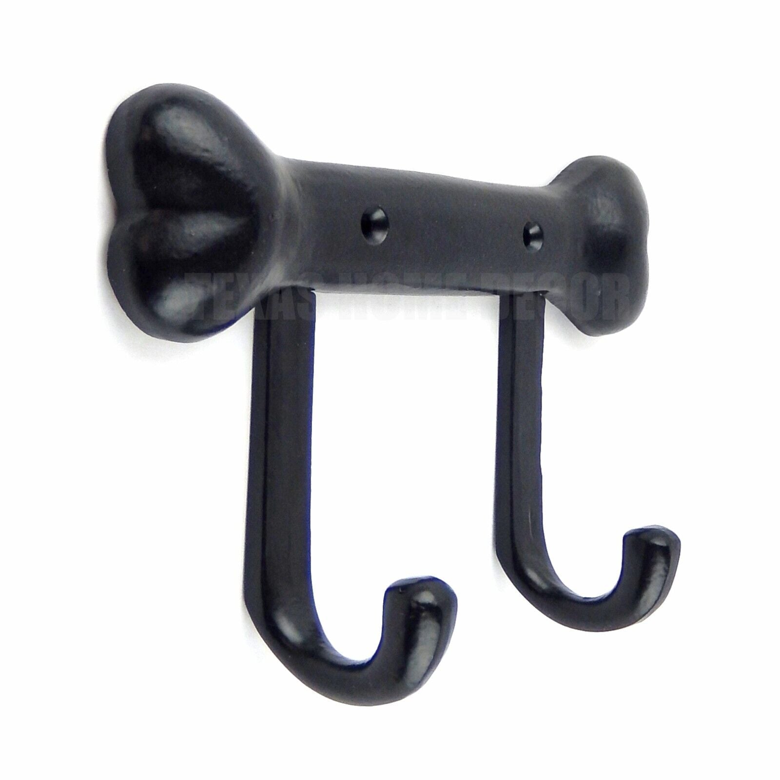 Cast Iron Dog Bone Leash Holder Hook Wall Mounted Coat Towel Key Hanger Black