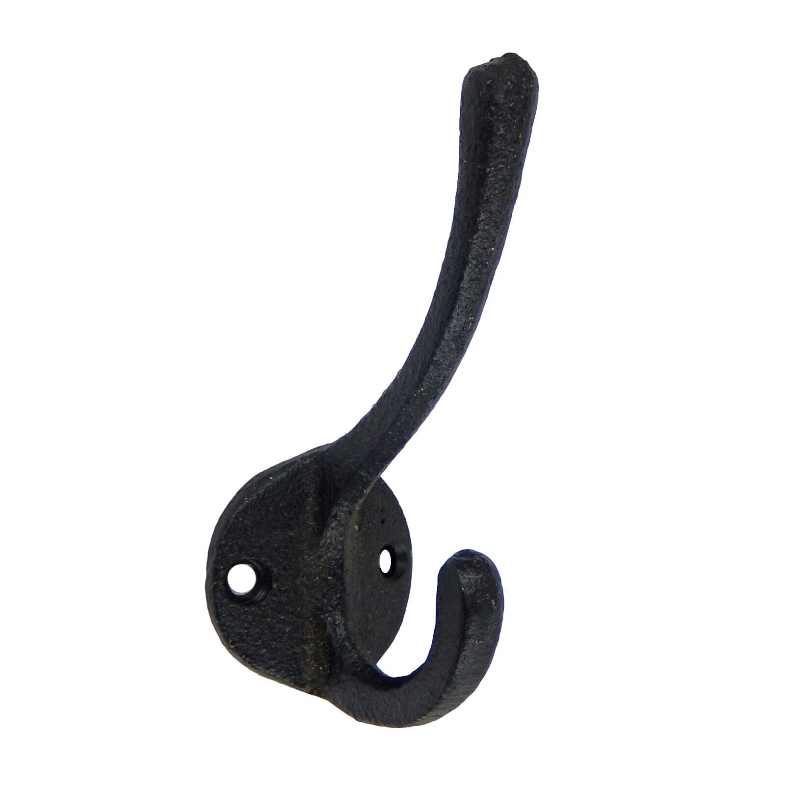 Cast Iron Double Wall Hook Key Towel Coat Hanger Matte Black #56590