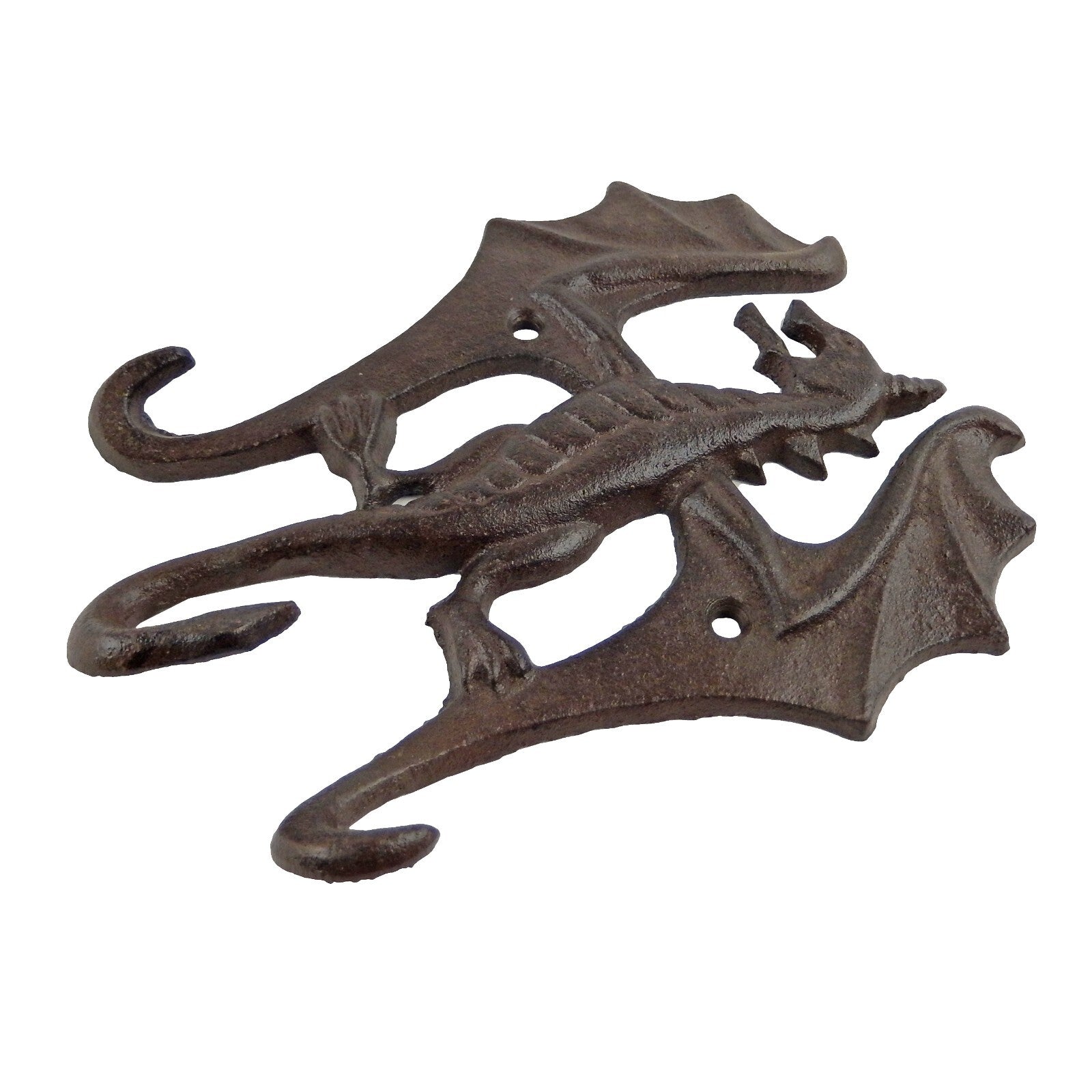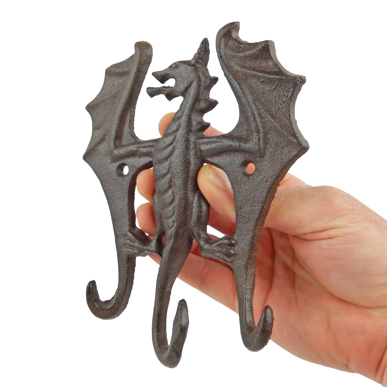 Cast Iron Dragon Triple Wall Hook Rack Key Hanger Fantasy Decor Rustic Brown