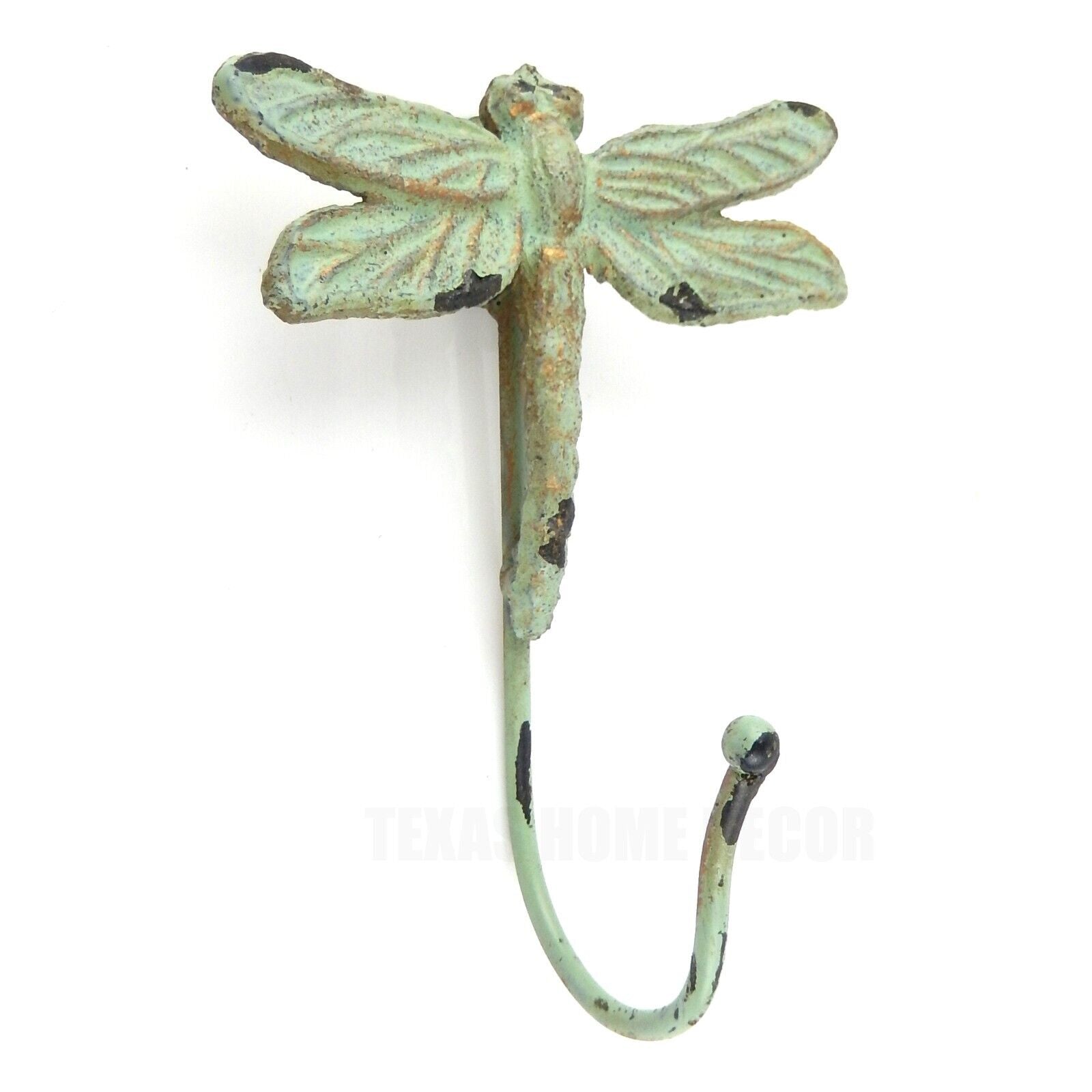 Cast Iron Dragonfly Wall Hook Key Towel Coat Robe Hanger Antique Weathered Green #2395
