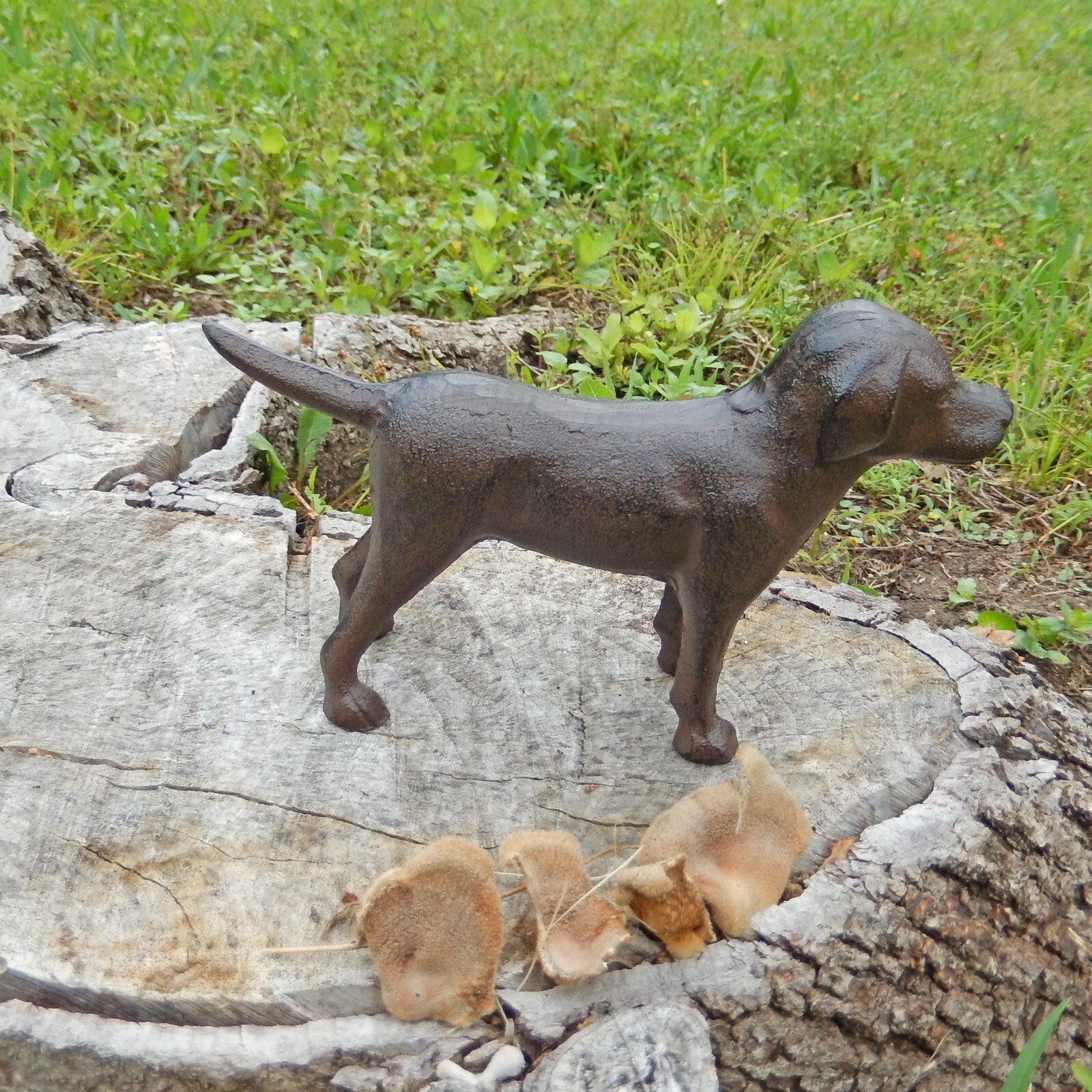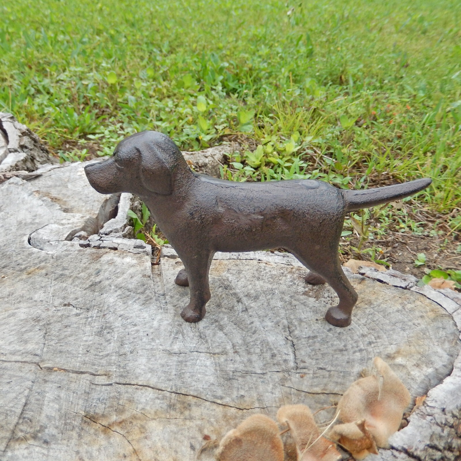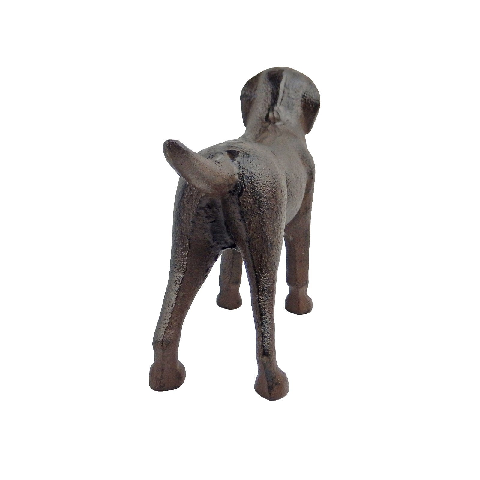 Cast Iron Excited Dog Shelf Figurine Statue Rustic Brown Finish 5 inch Tall