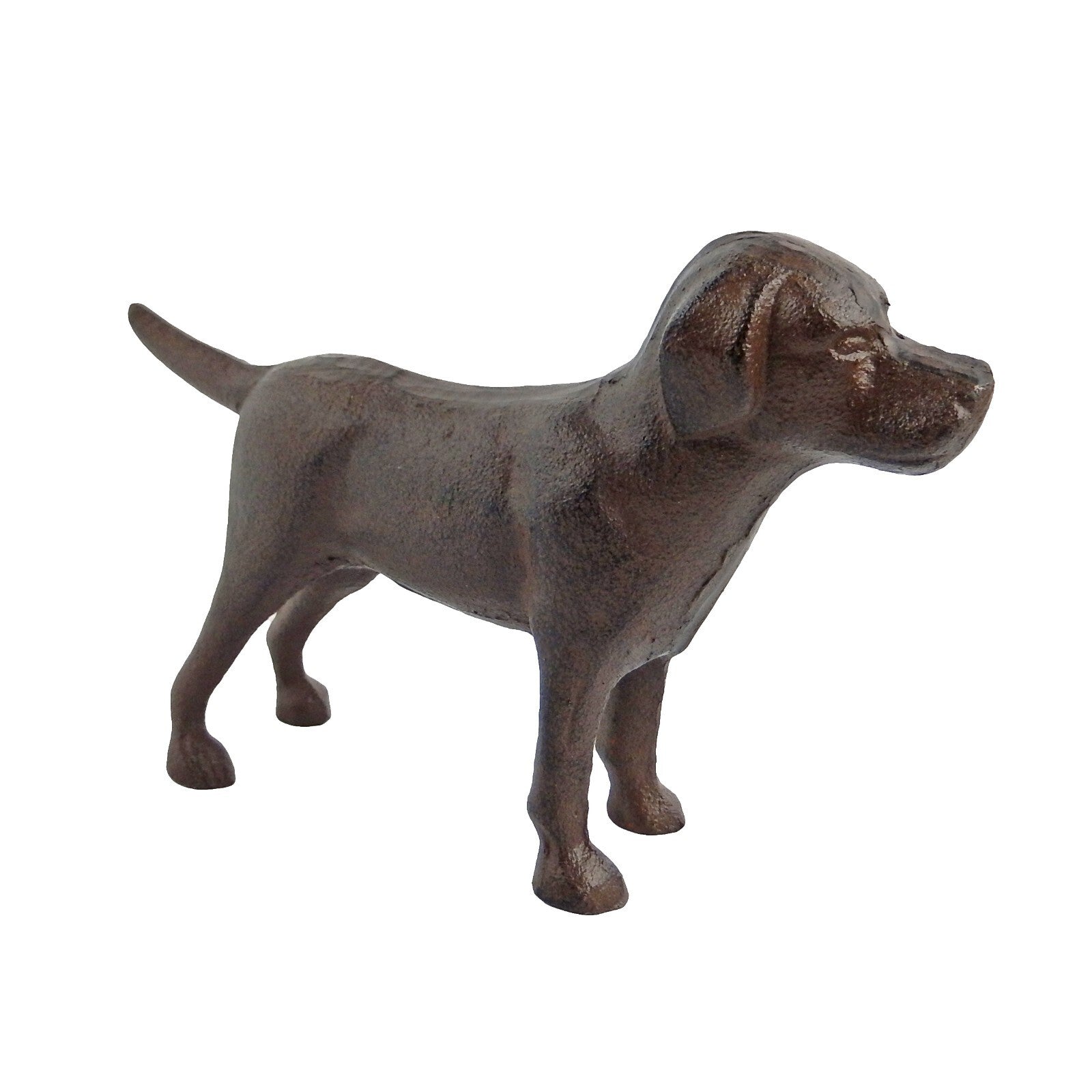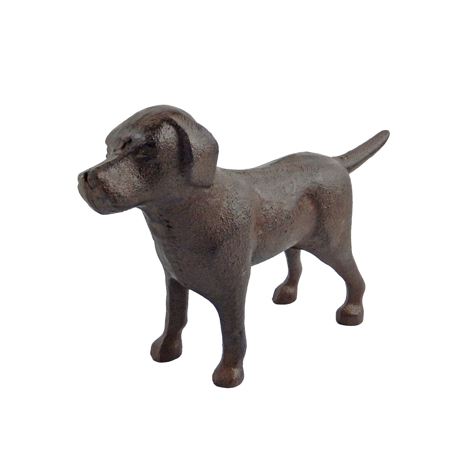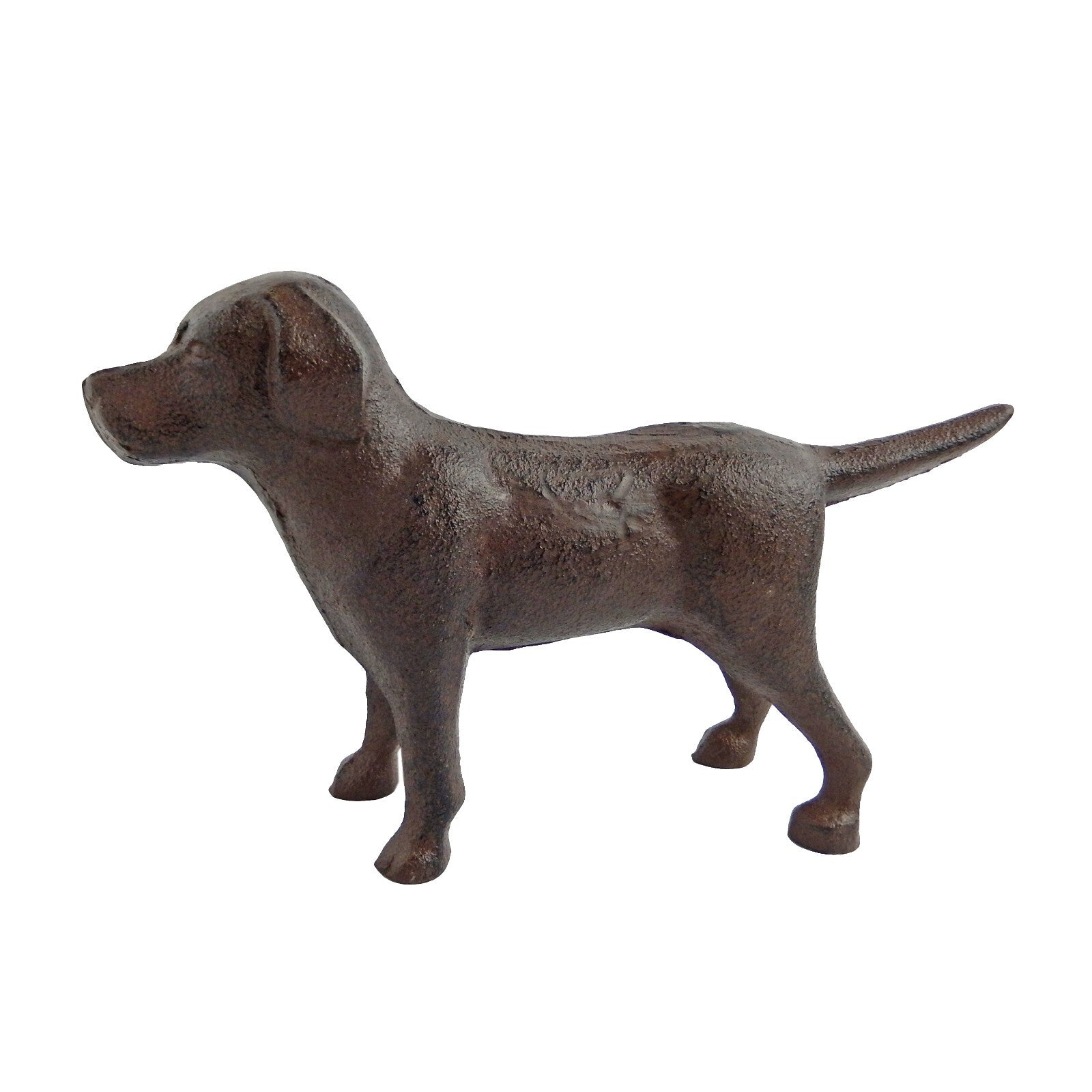 Cast Iron Excited Dog Shelf Figurine Statue Rustic Brown Finish 5 inch Tall