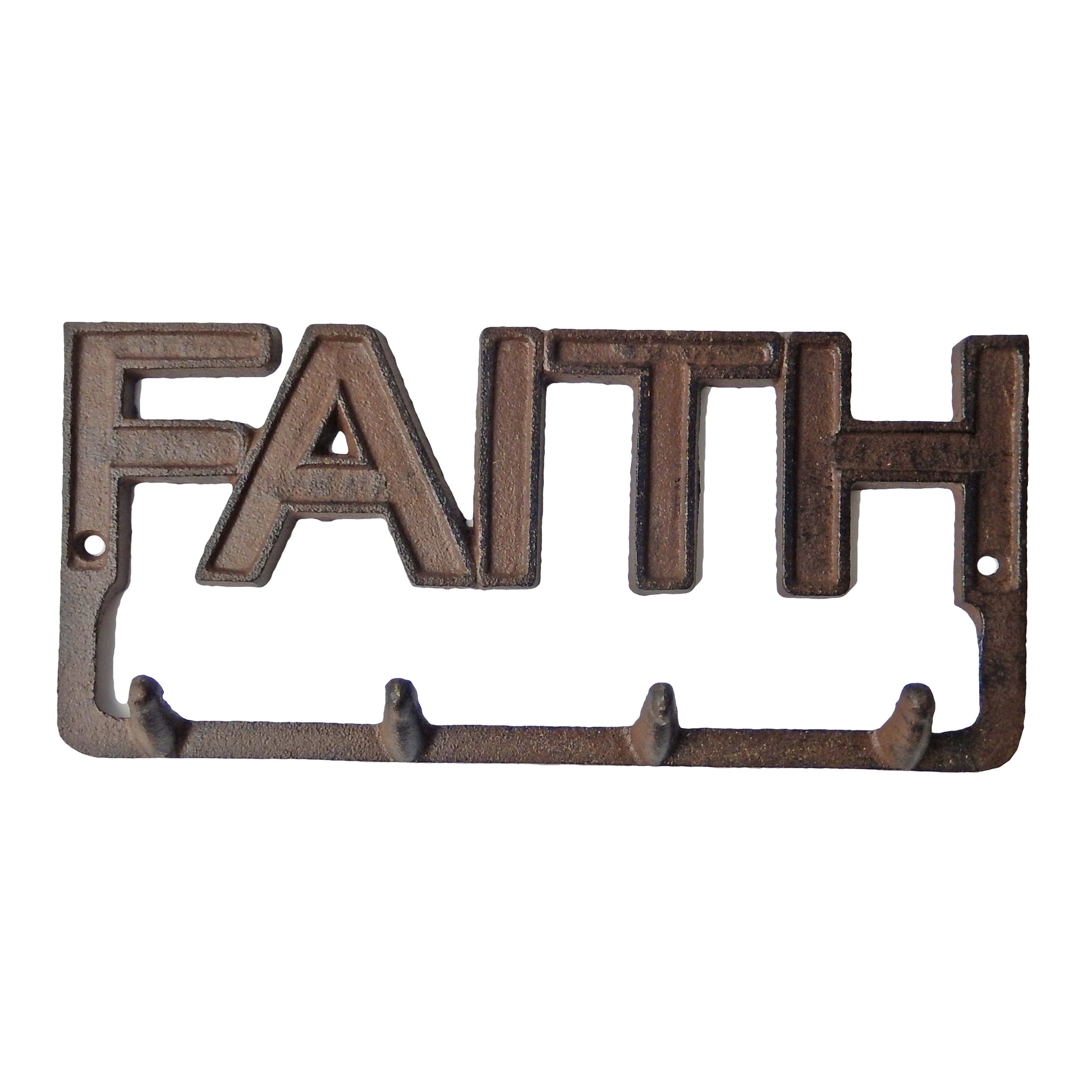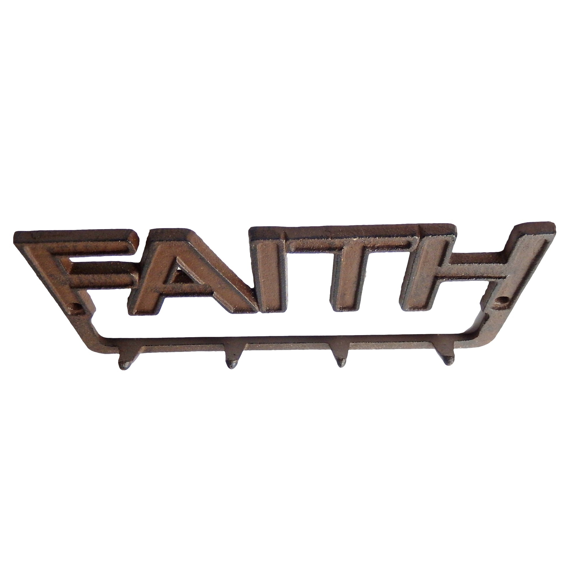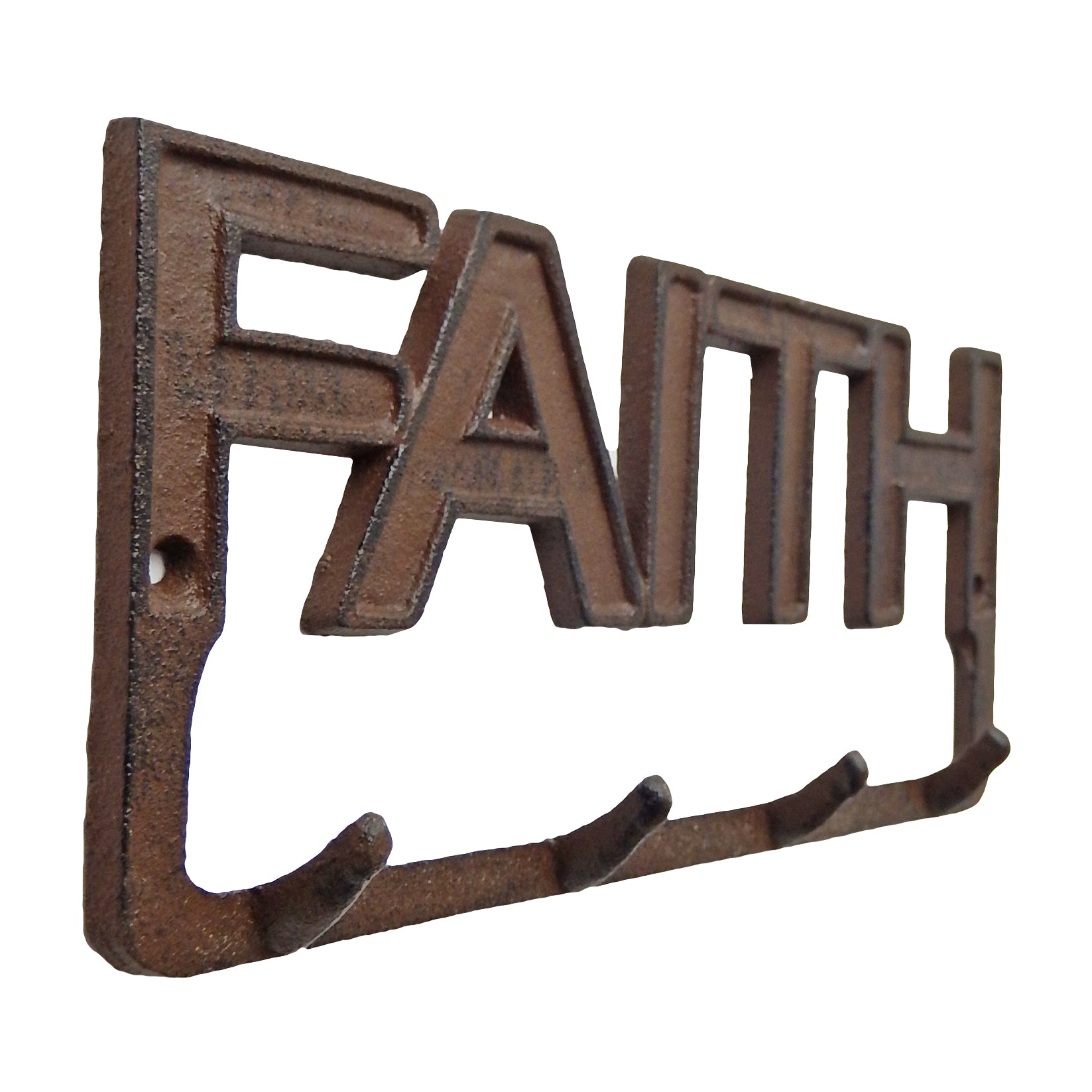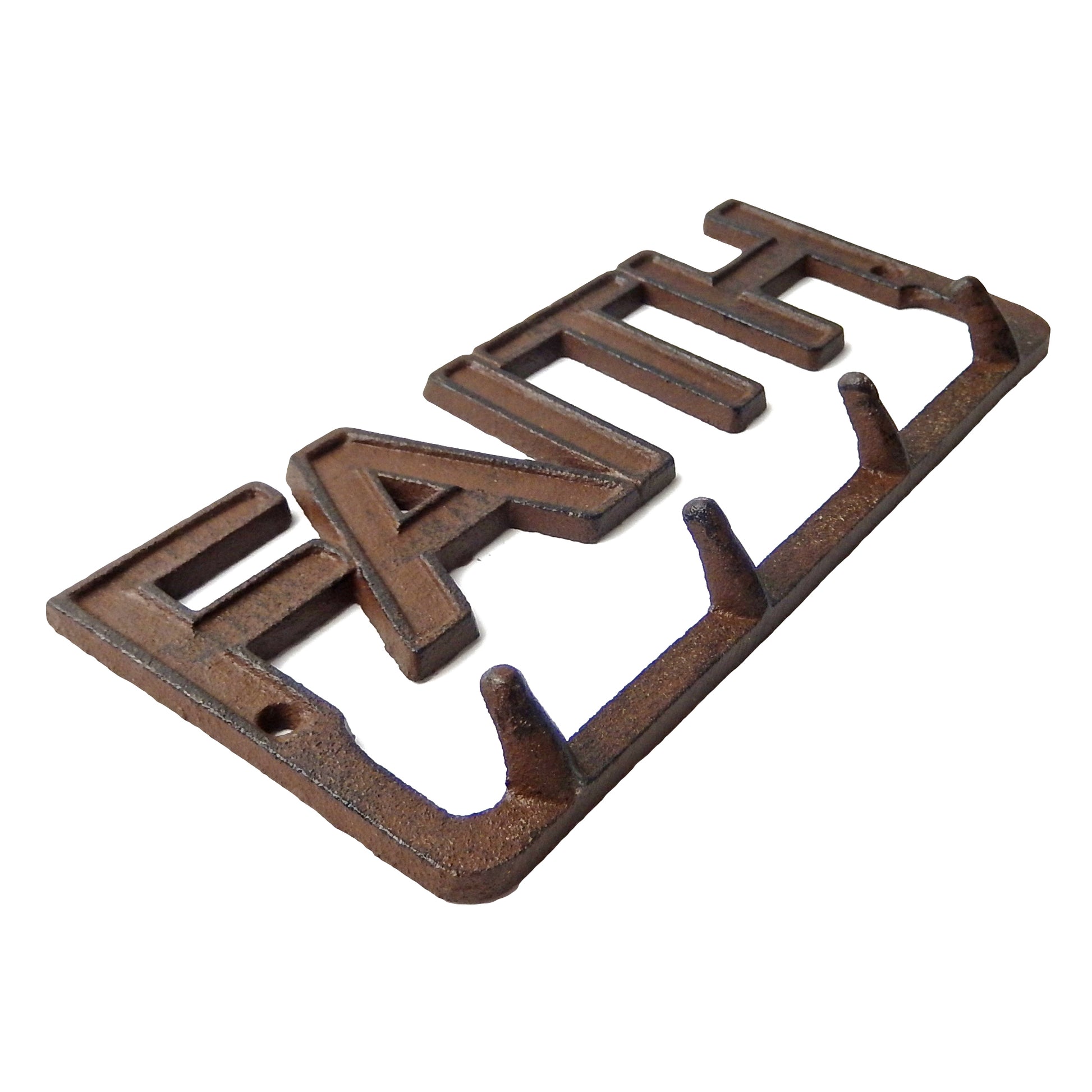 Cast Iron Faith Wall Hook Rack Key Towel Coat Hanger Rustic Brown Inspirational