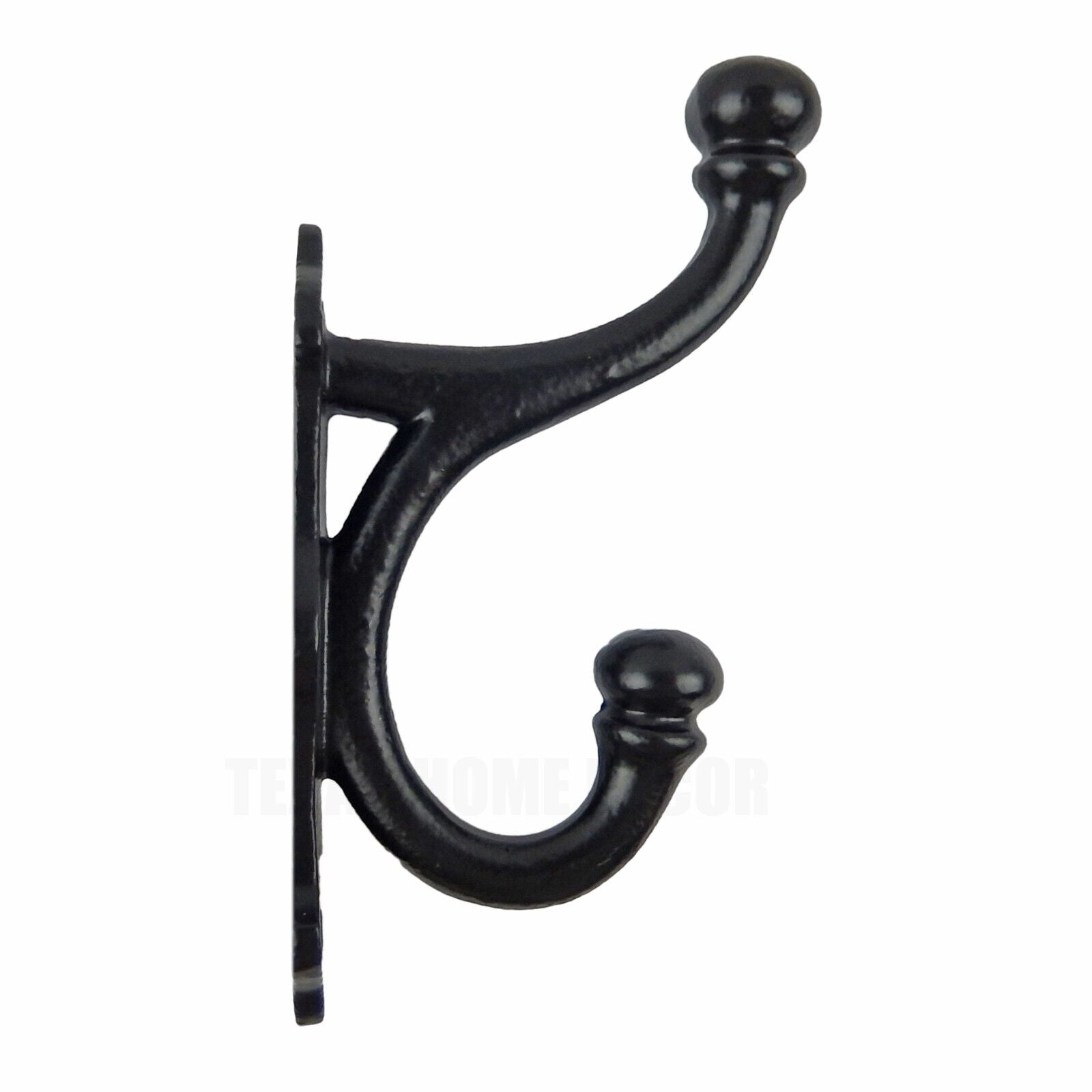 Cast Iron Farmhouse Double Wall Hook Key Coat Towel Hanger Black Powder Coated