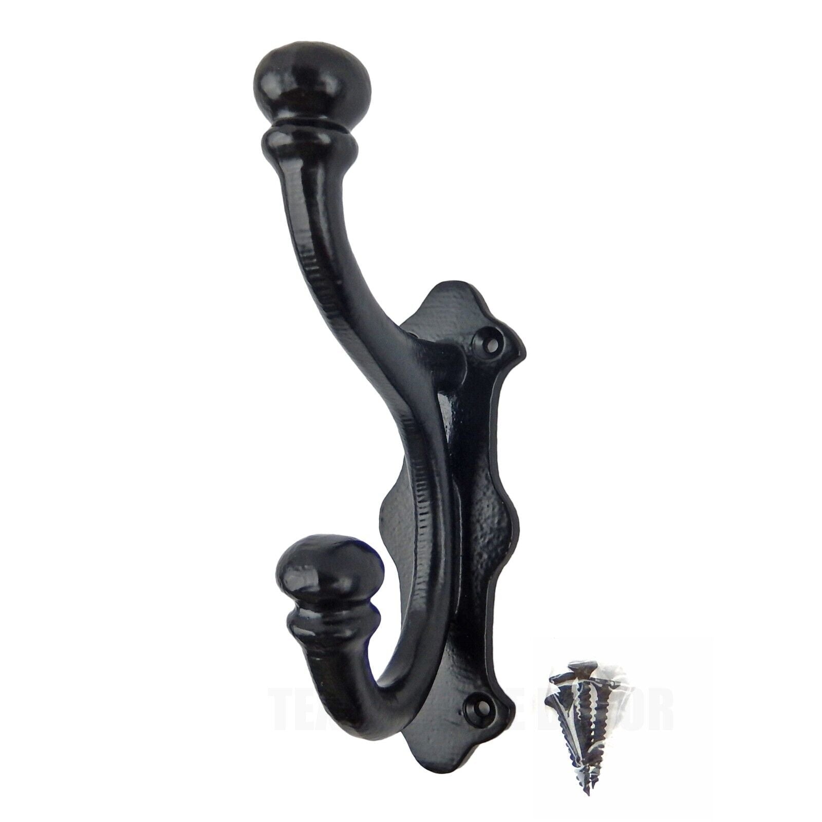 Cast Iron Farmhouse Double Wall Hook Key Coat Towel Hanger Black Powder Coated #UH511