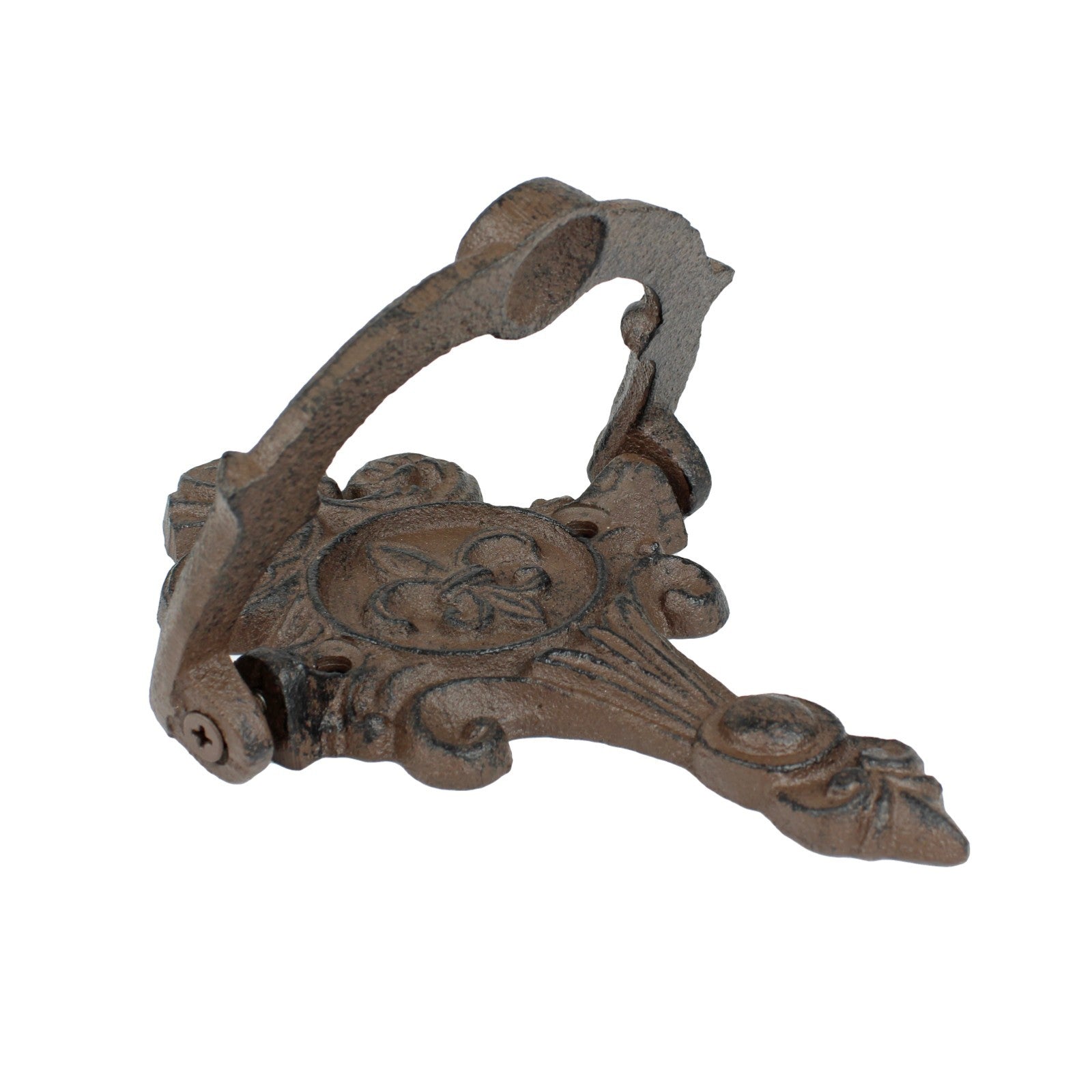 Cast Iron Fleur De Lis Door Knocker Scrolls Accent Rustic Victorian Style Brown