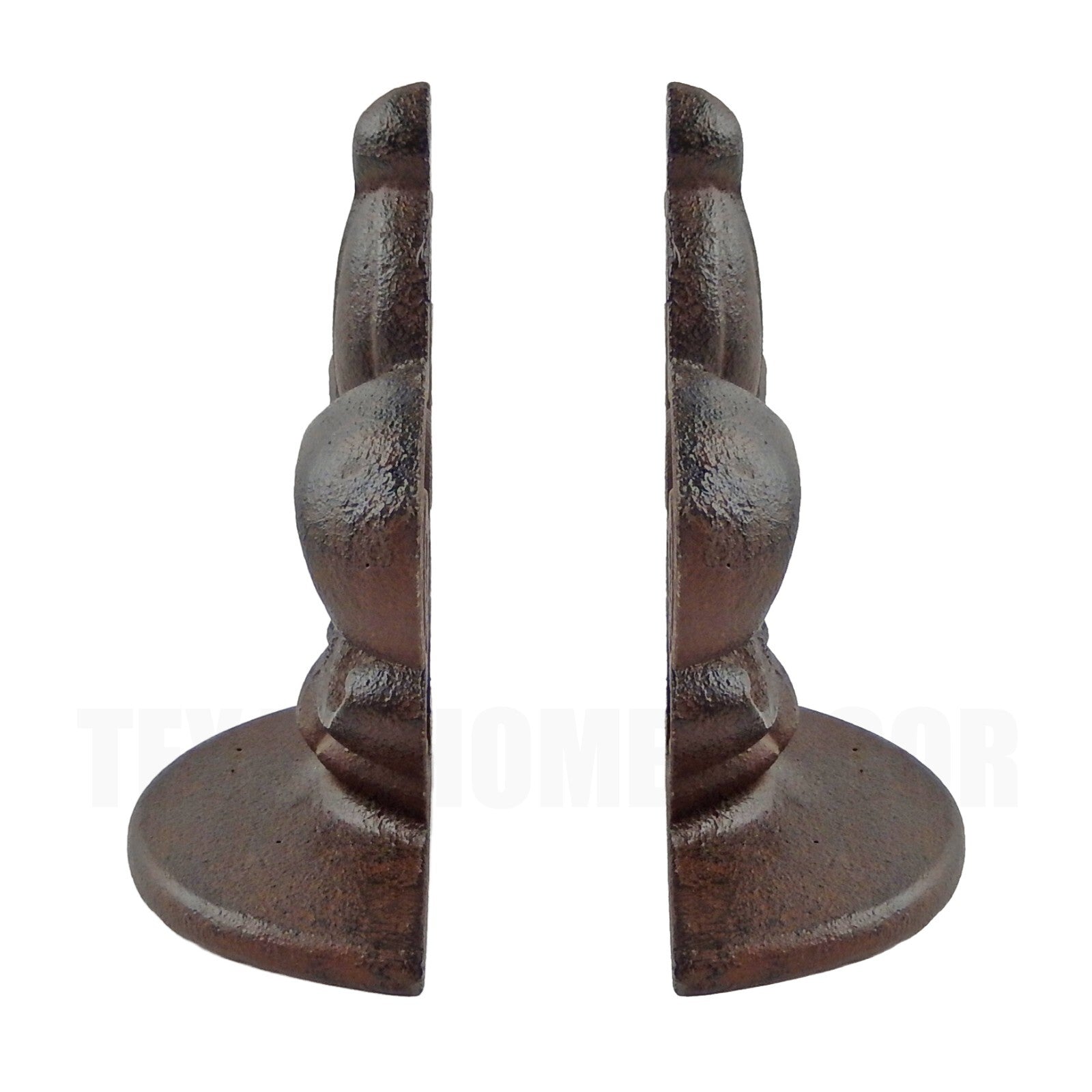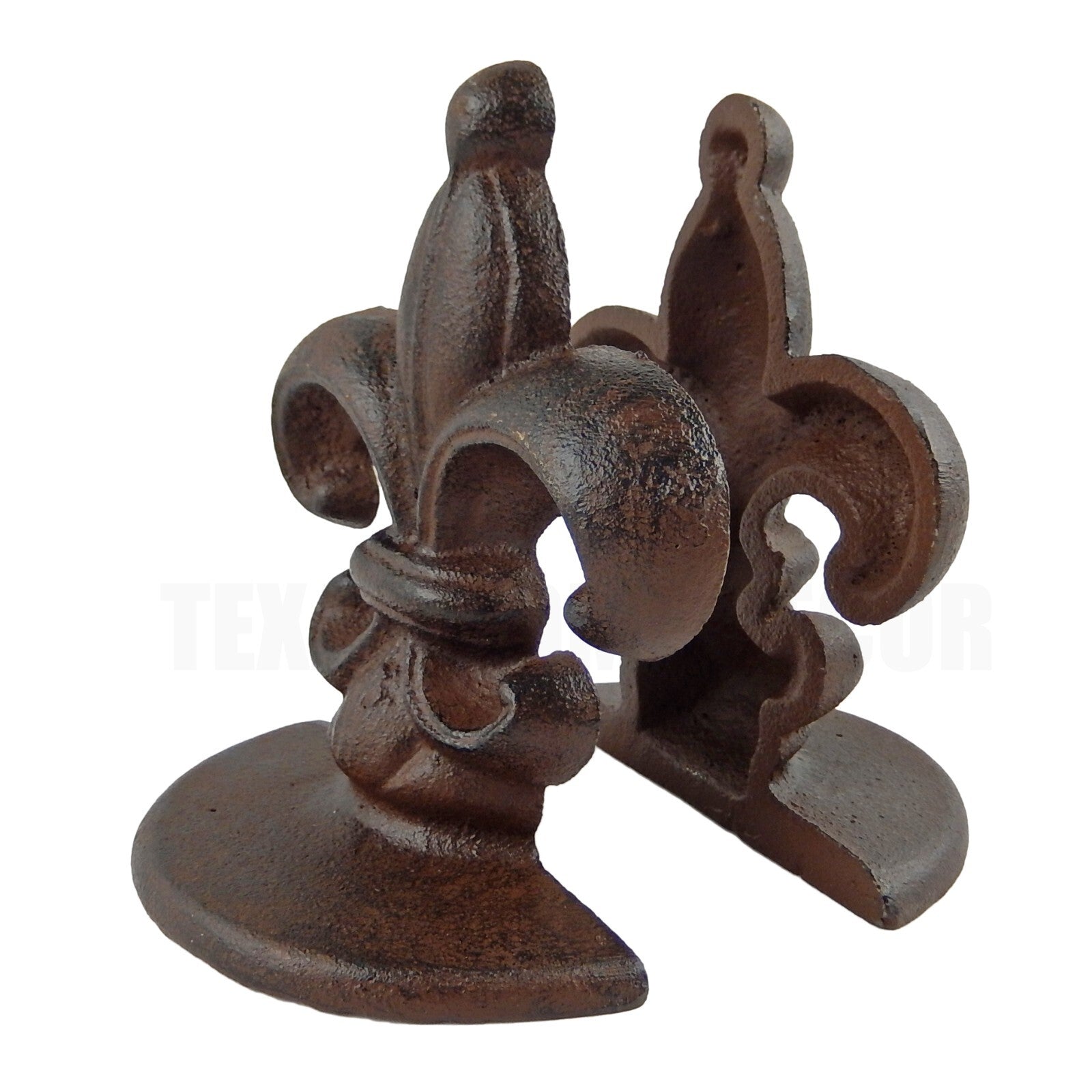 Cast Iron Fleur De Lis Victorian Bookends Set Rustic Antique Brown Finish #UX2821
