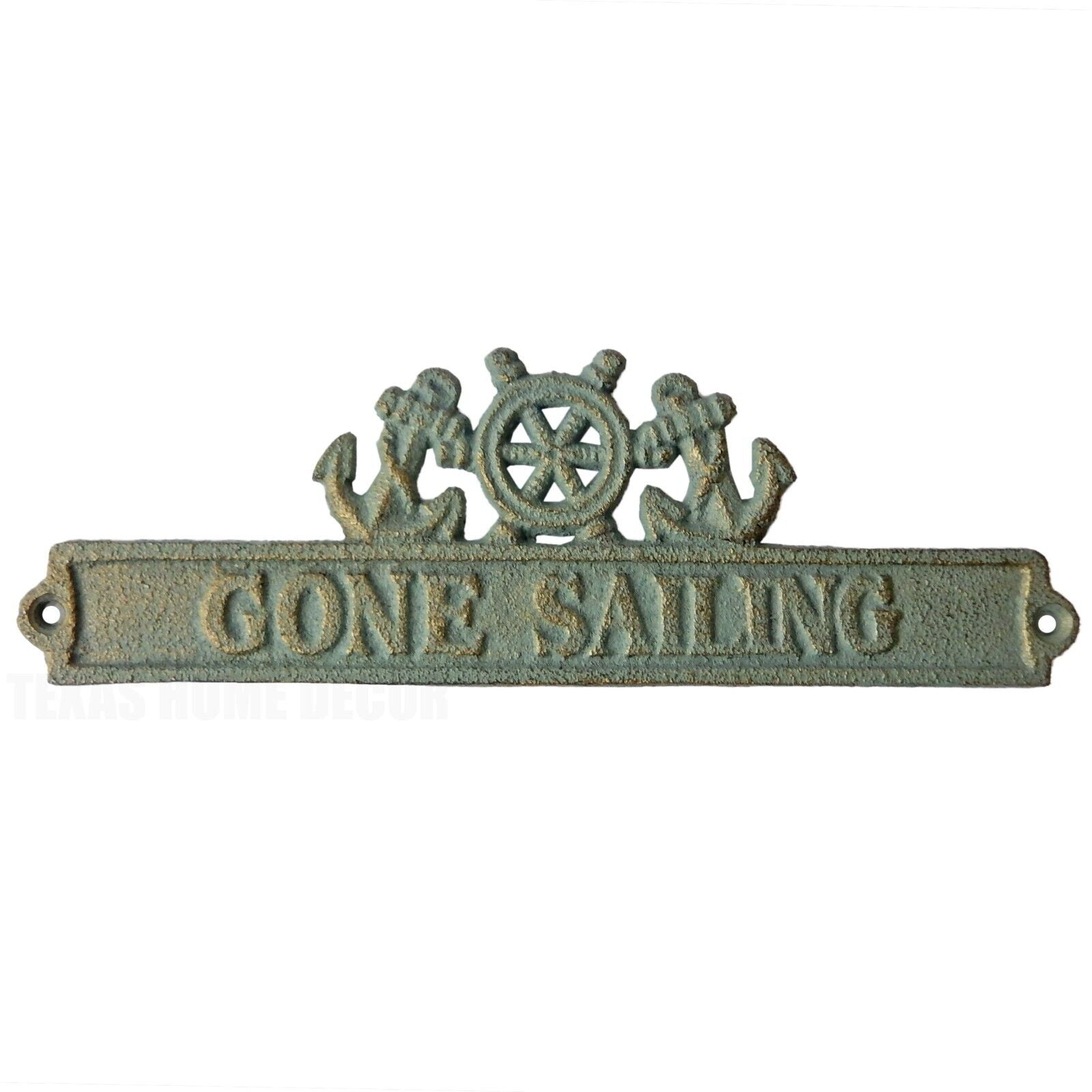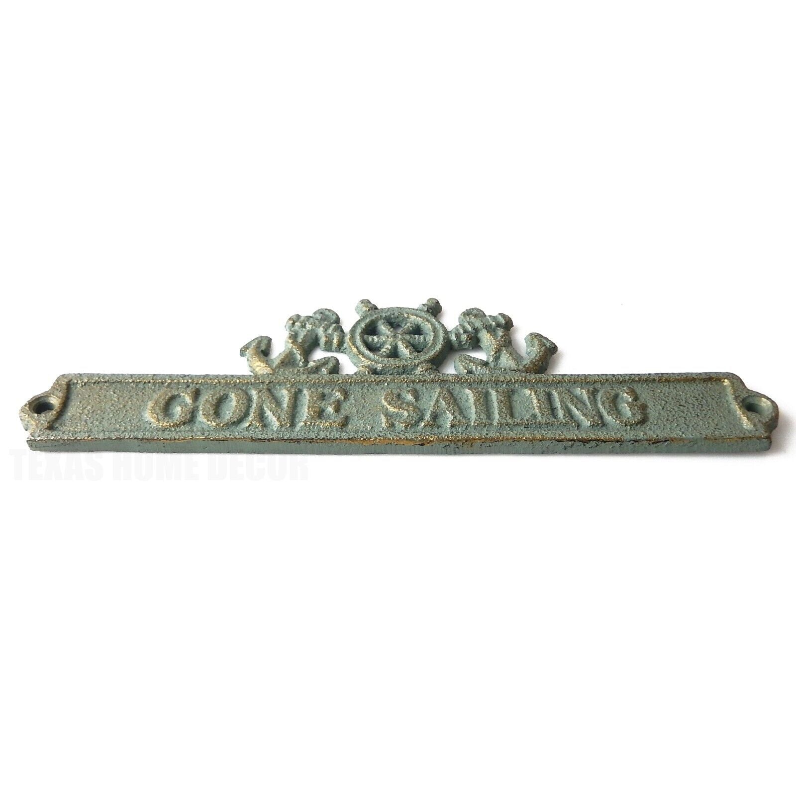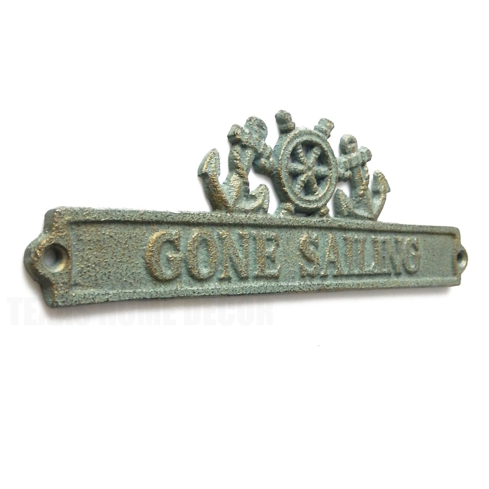 Cast Iron Gone Sailing Anchor Ships Wheel Wall Decor Sign Nautical Green Gold