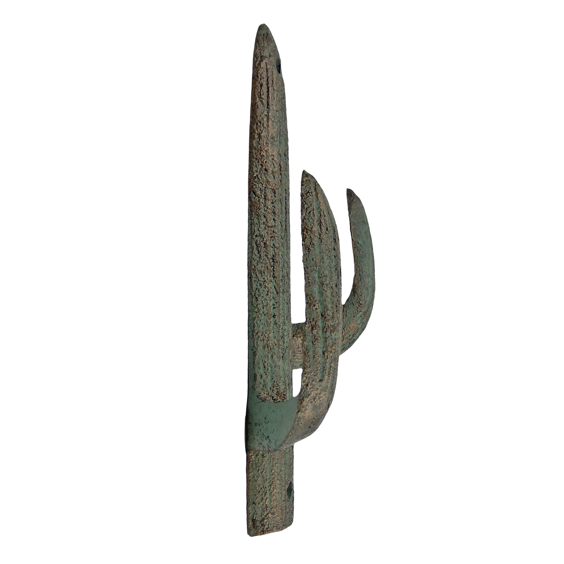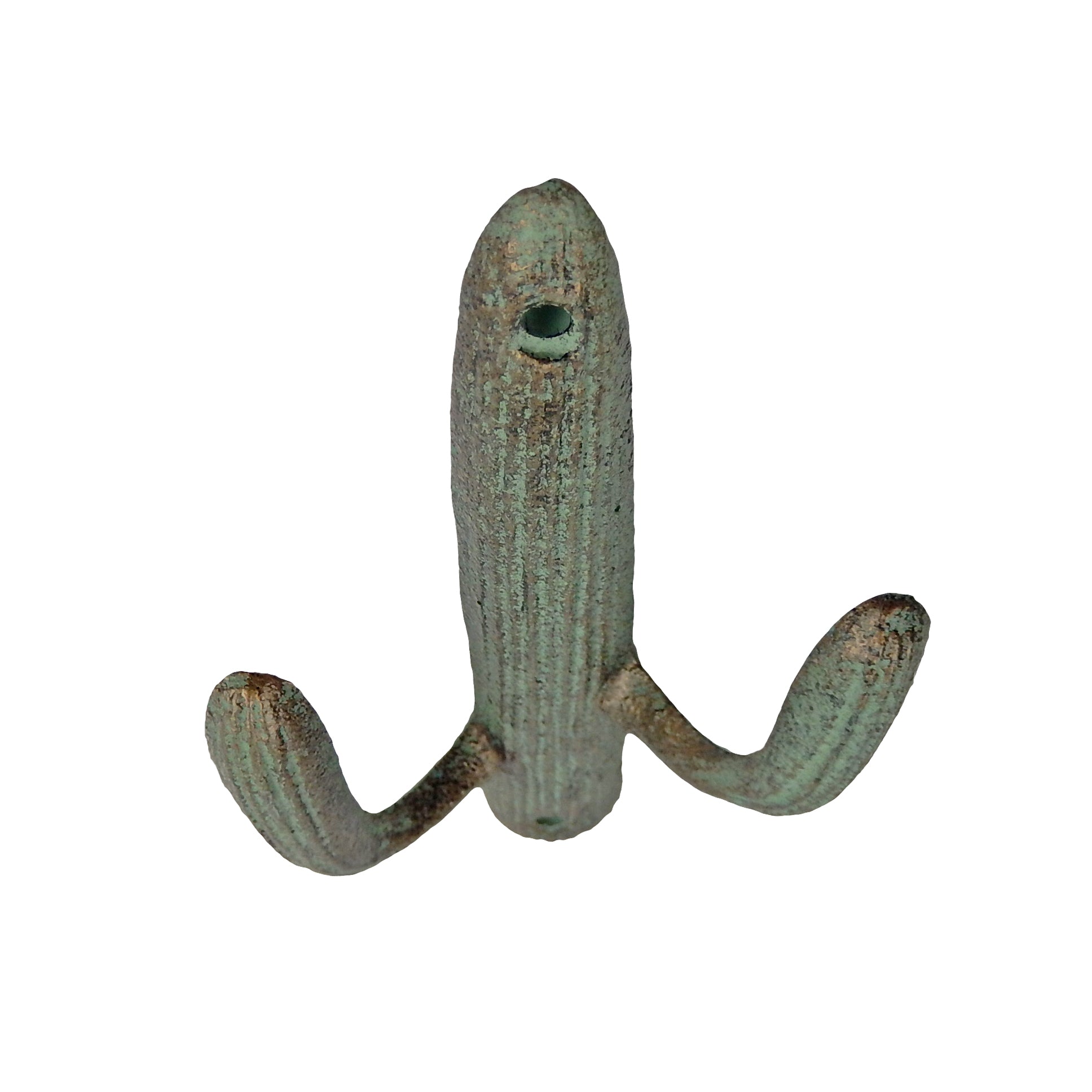 Cast Iron Green Gold Cactus Double Wall Hook Southwest Coat Towel Purse Hanger #G100