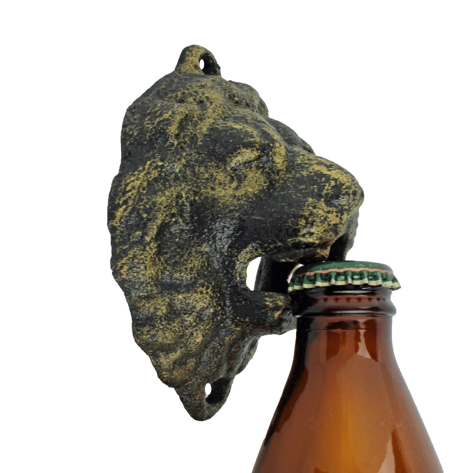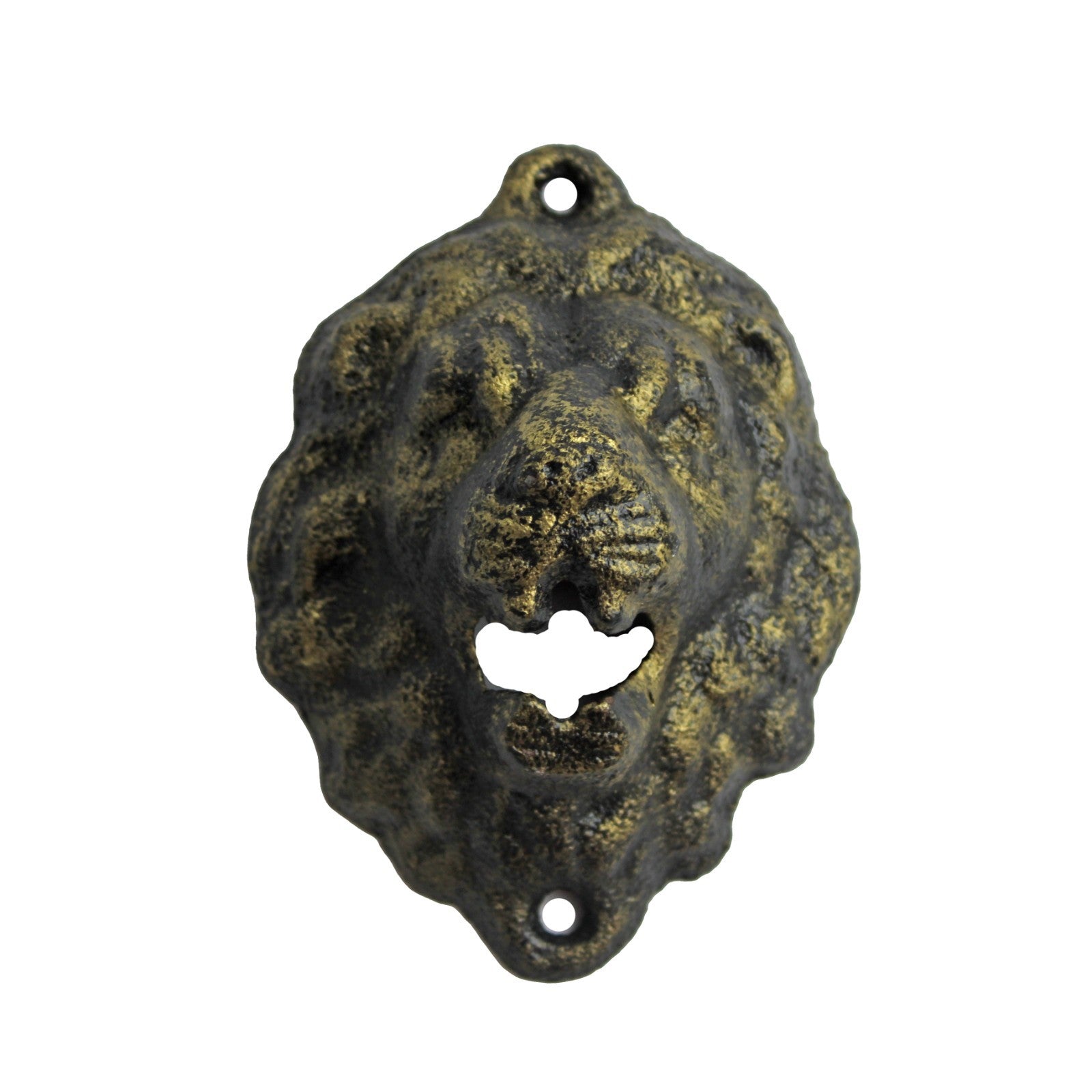 Cast Iron Lion Head Teeth Beer Soda Bar Bottle Opener Wall Mounted Antique Gold