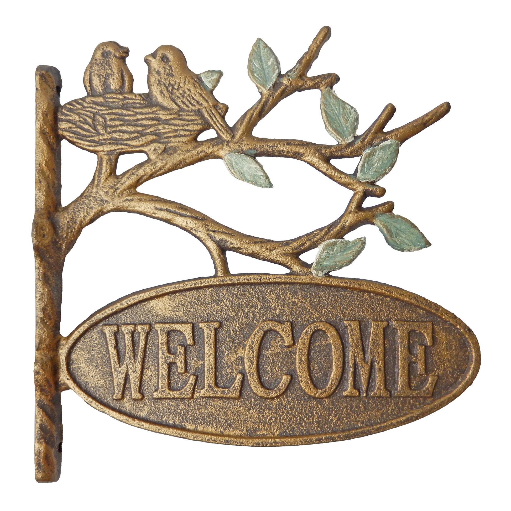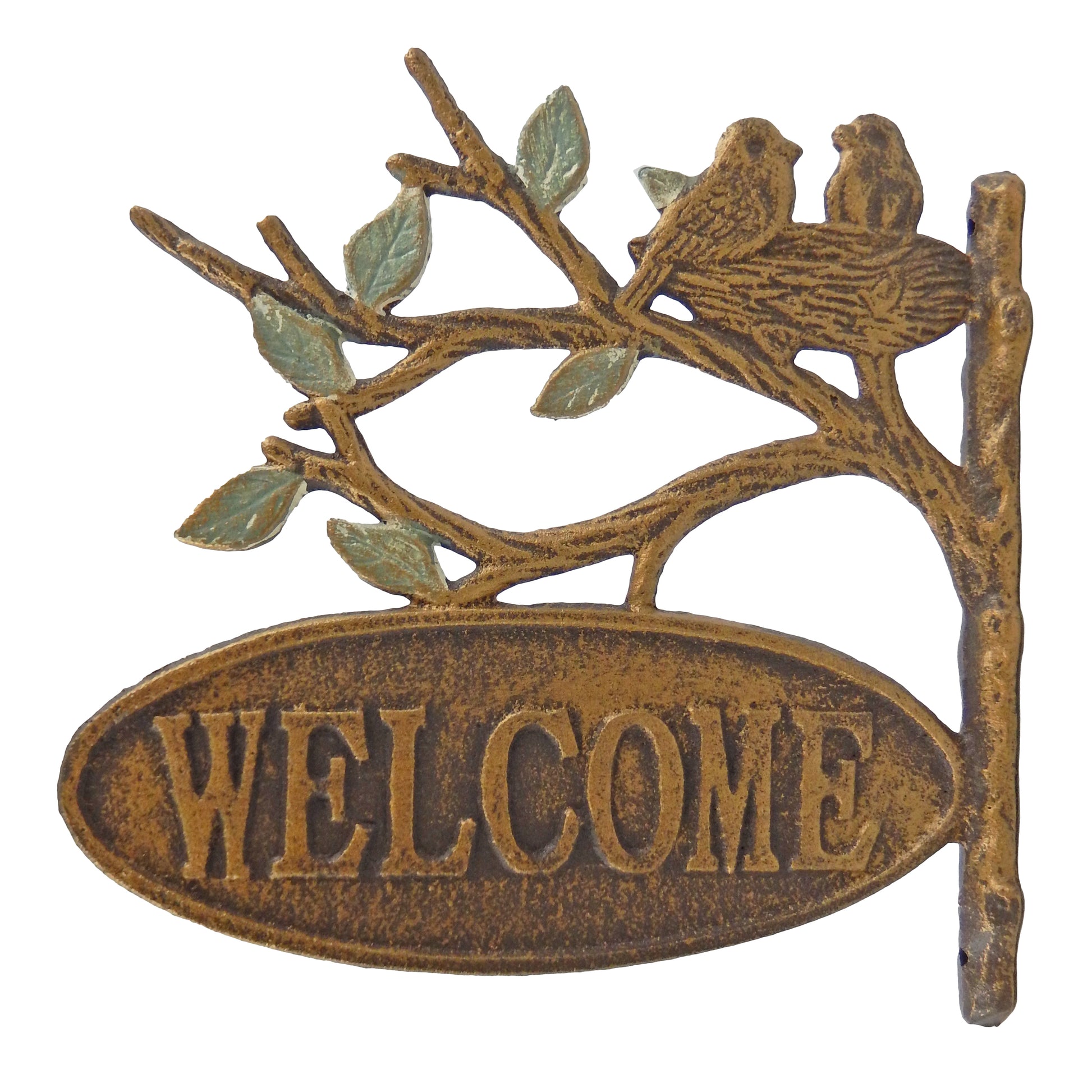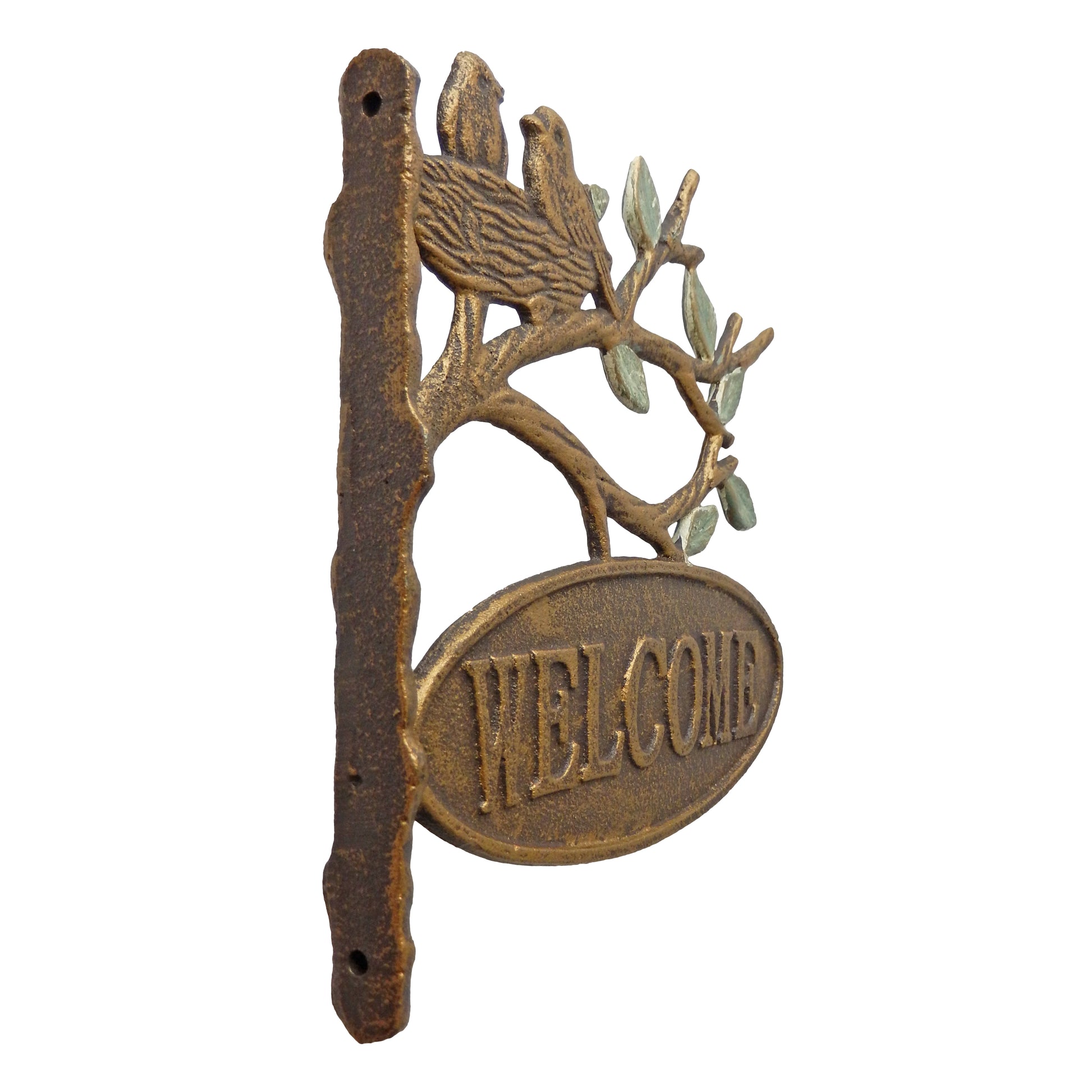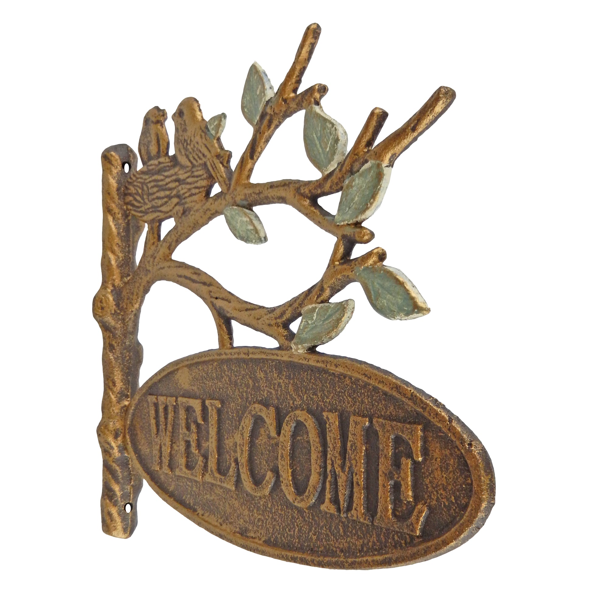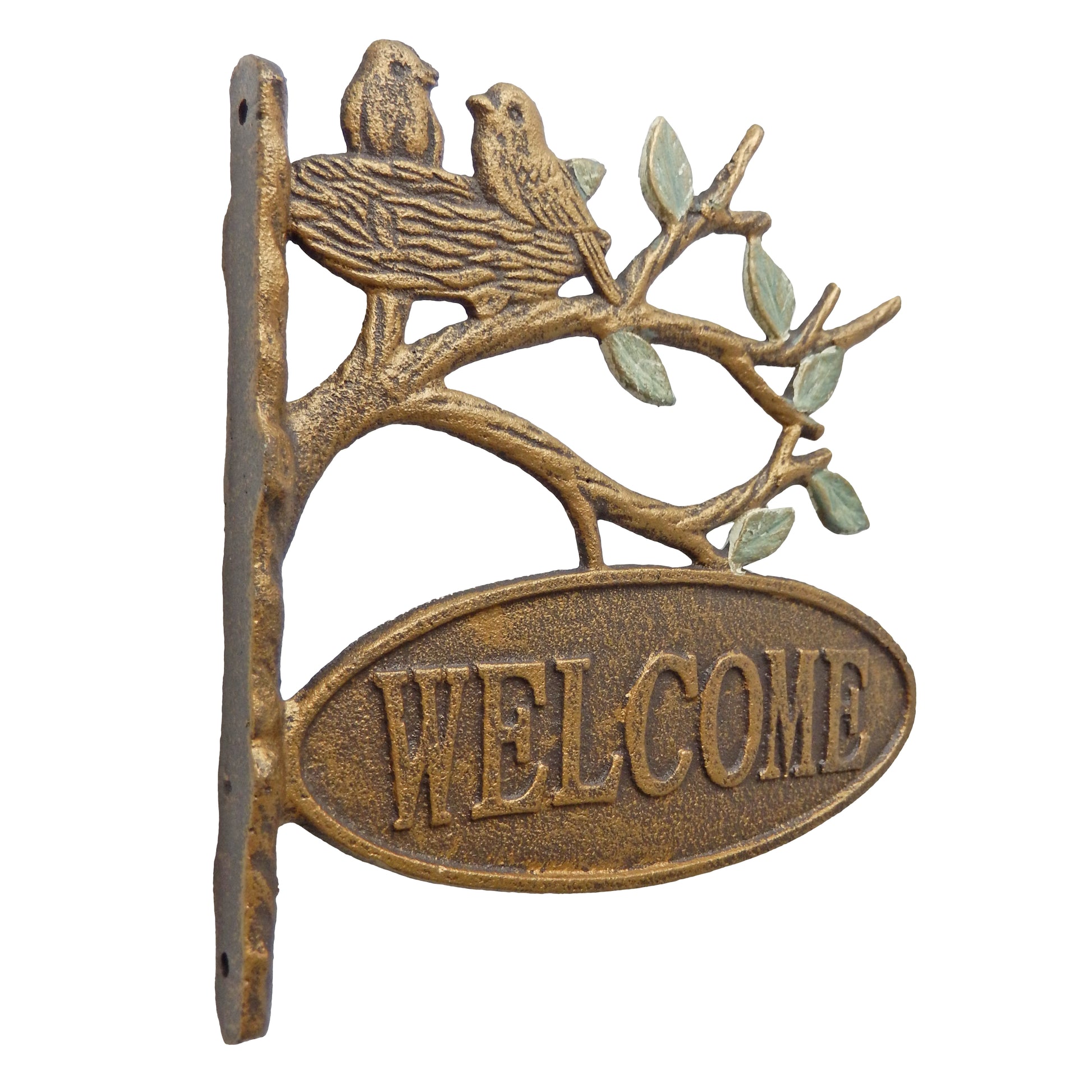 Cast Iron Love Birds In Nest Tree Branch Welcome Wall Plaque Sign Antique Gold #9143