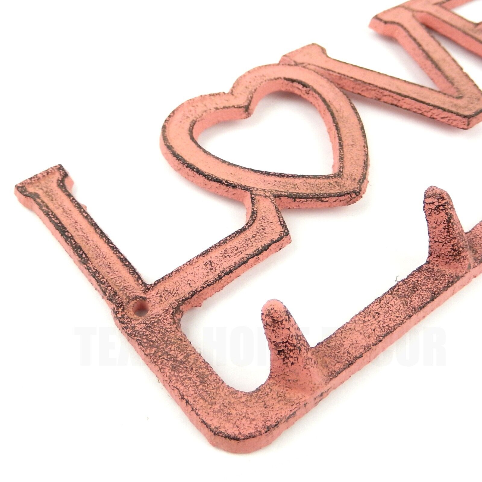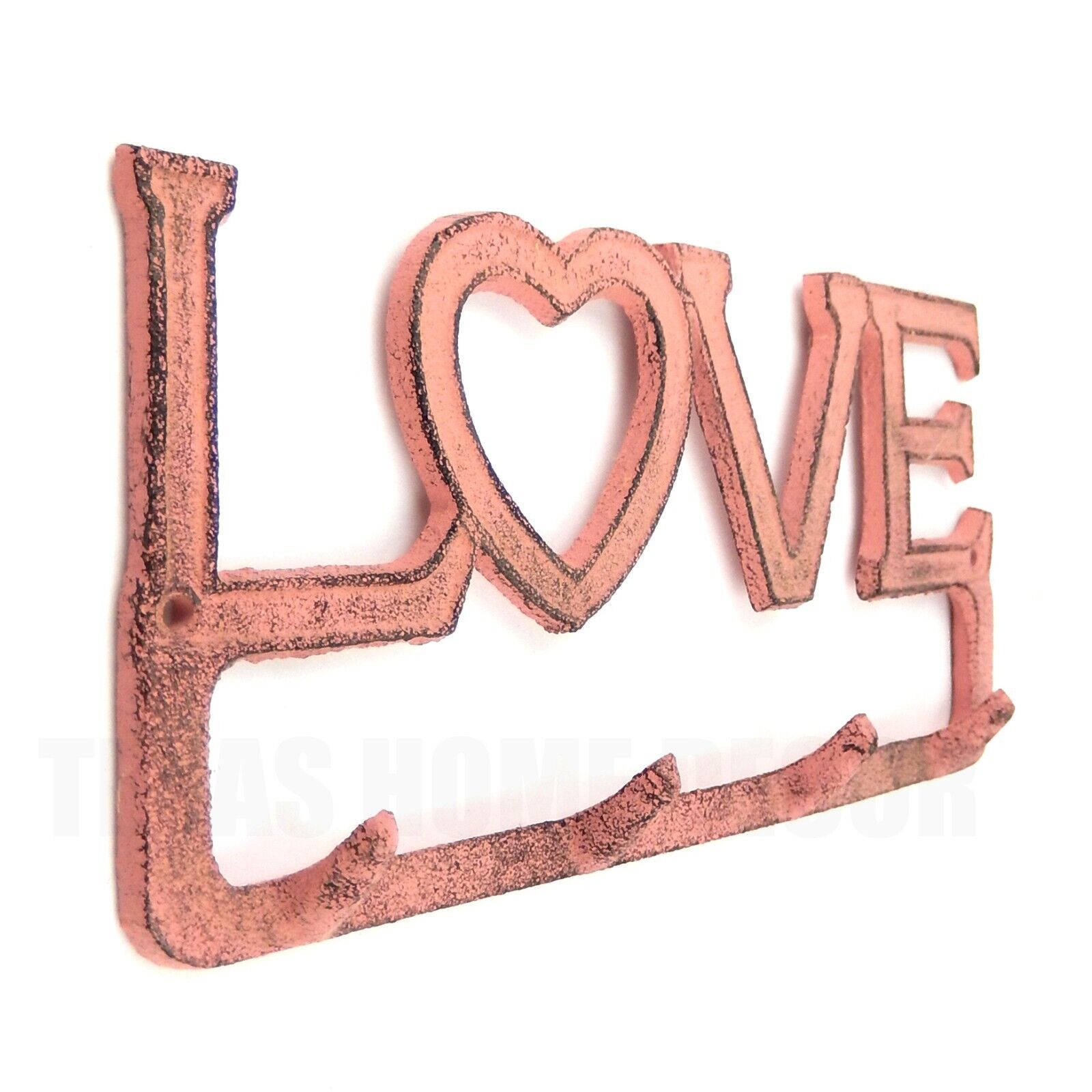 - This heavy duty cast iron "Love" wall hook rack is great for hanging coats, towels, dog leashes, keys, etc...