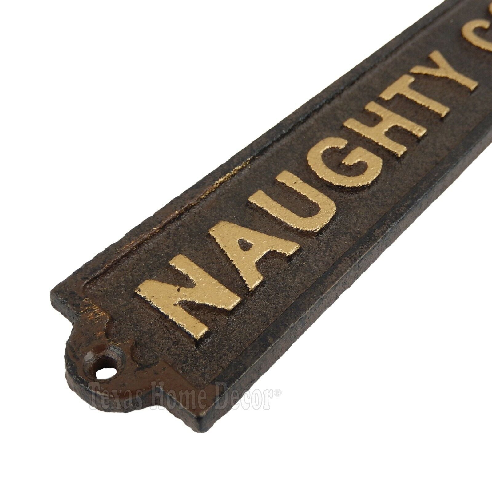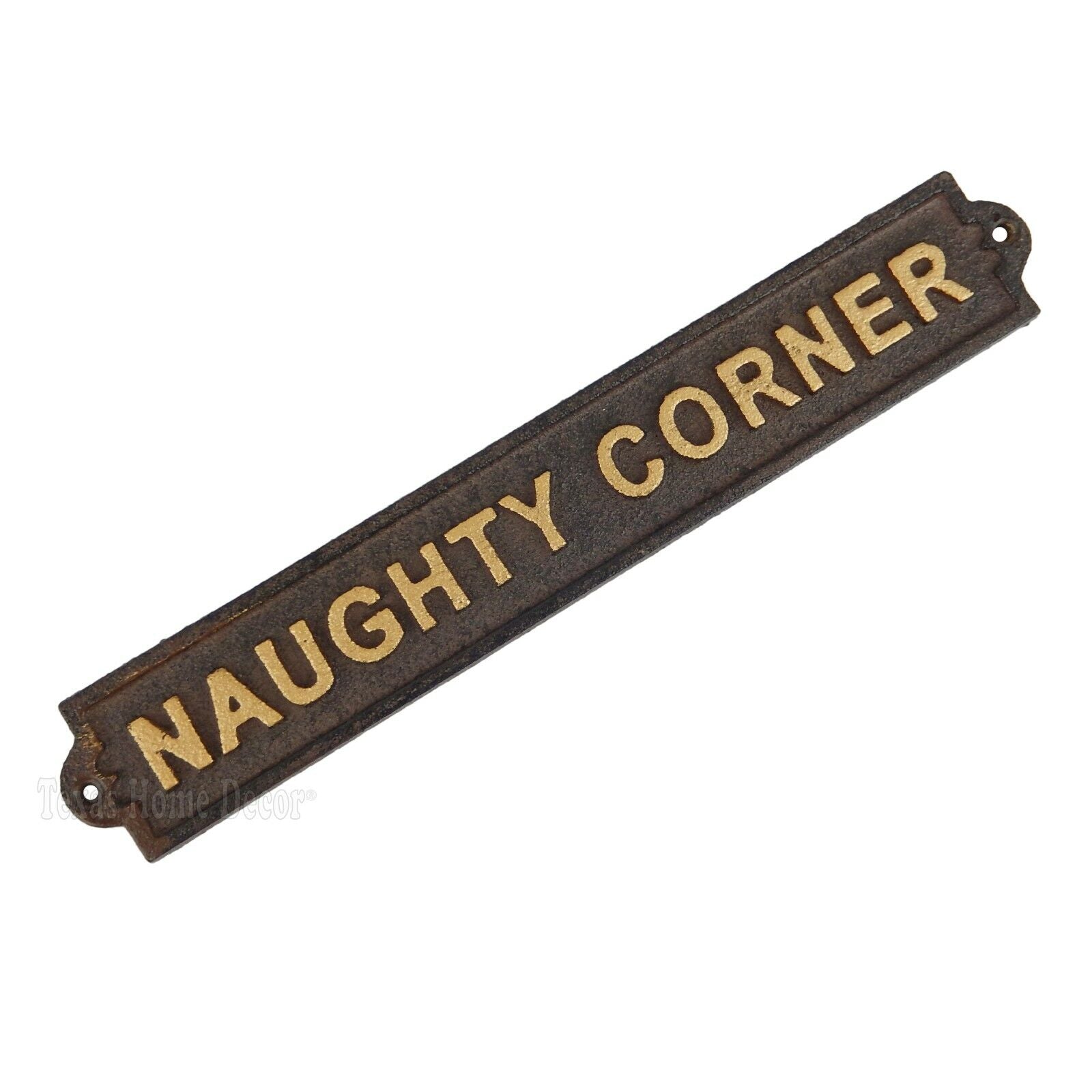 Cast Iron Naughty Corner Wall Plaque Sign Embossed Letters Rustic Brown Gold
