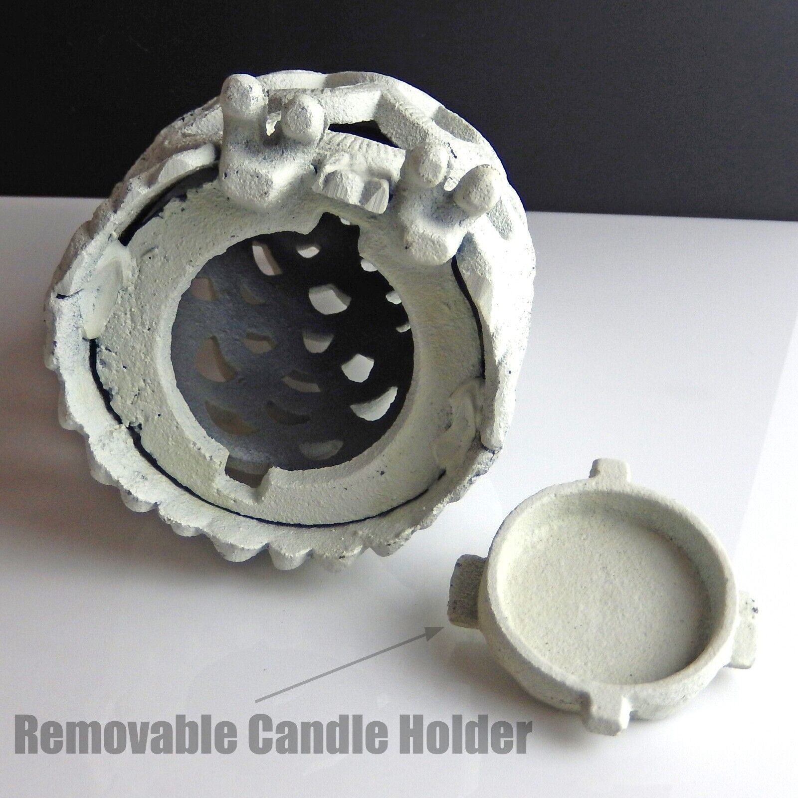 Cast Iron Owl Lantern Candle Holder with Handle Antique White Heavy Duty 7.5"
