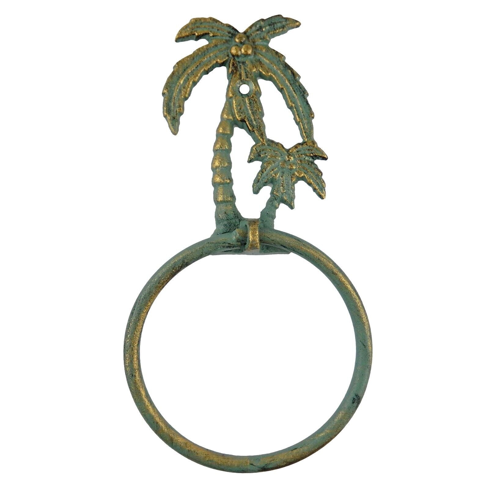Cast Iron Palms Bathroom Hand Towel Ring Tropical Beach House Decor Green Gold