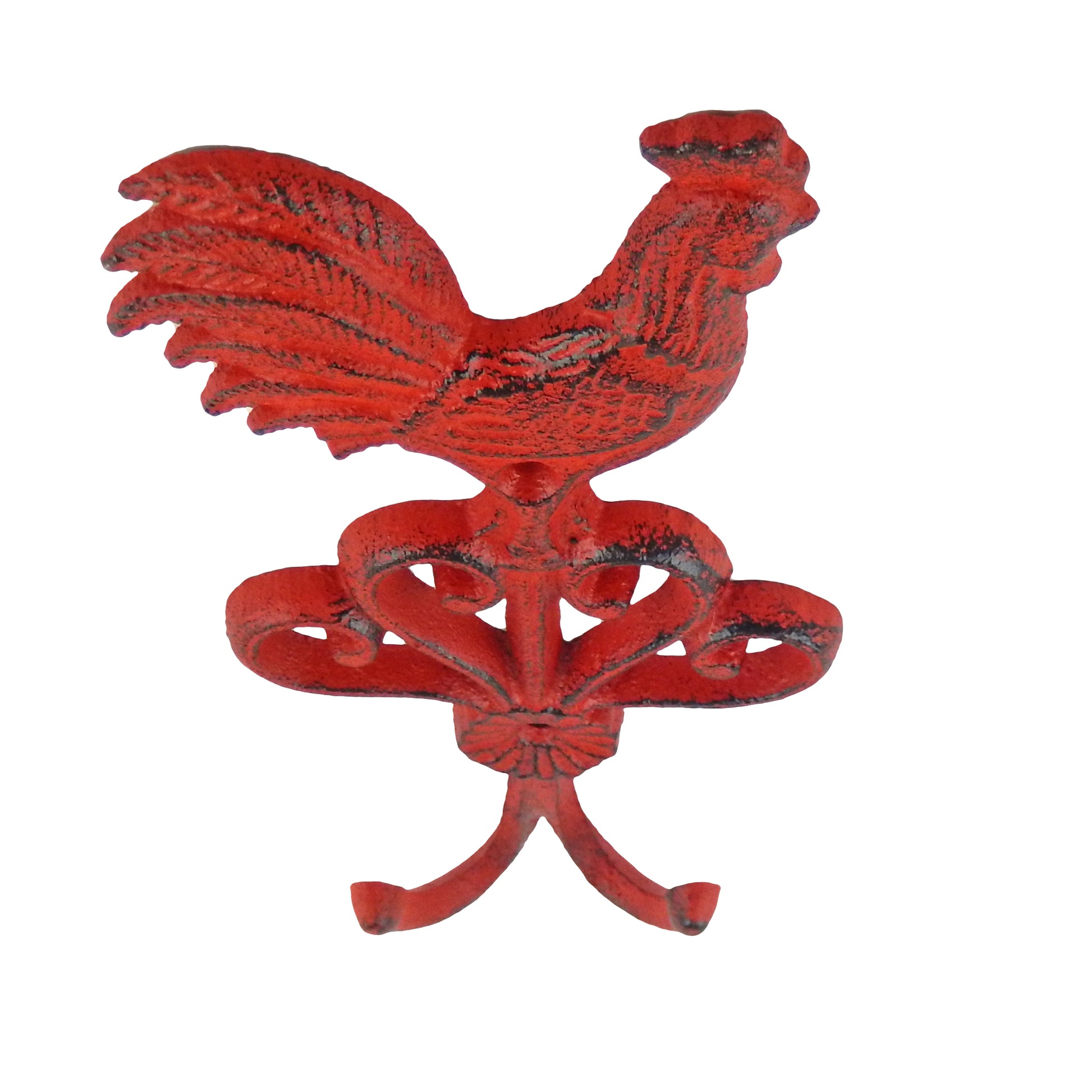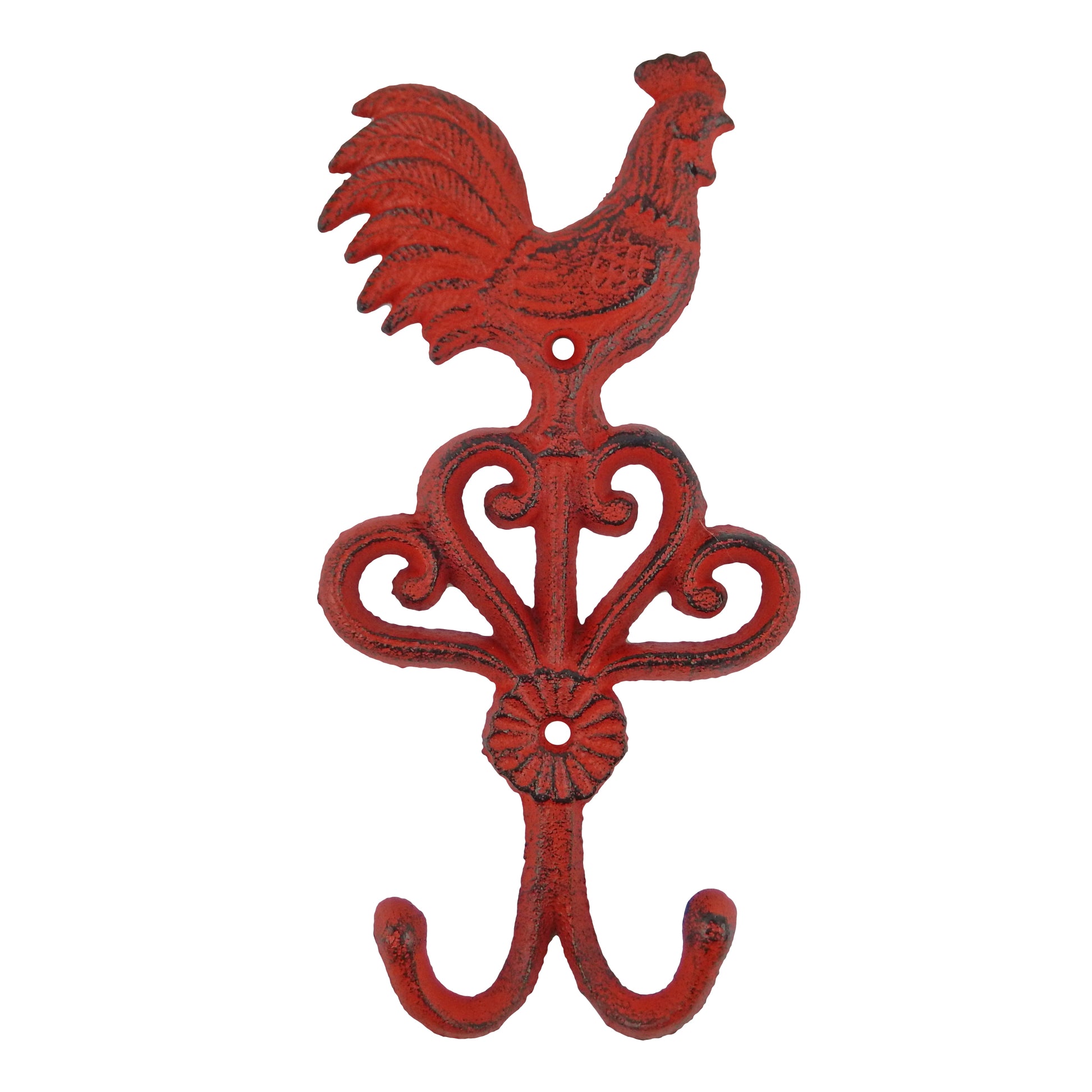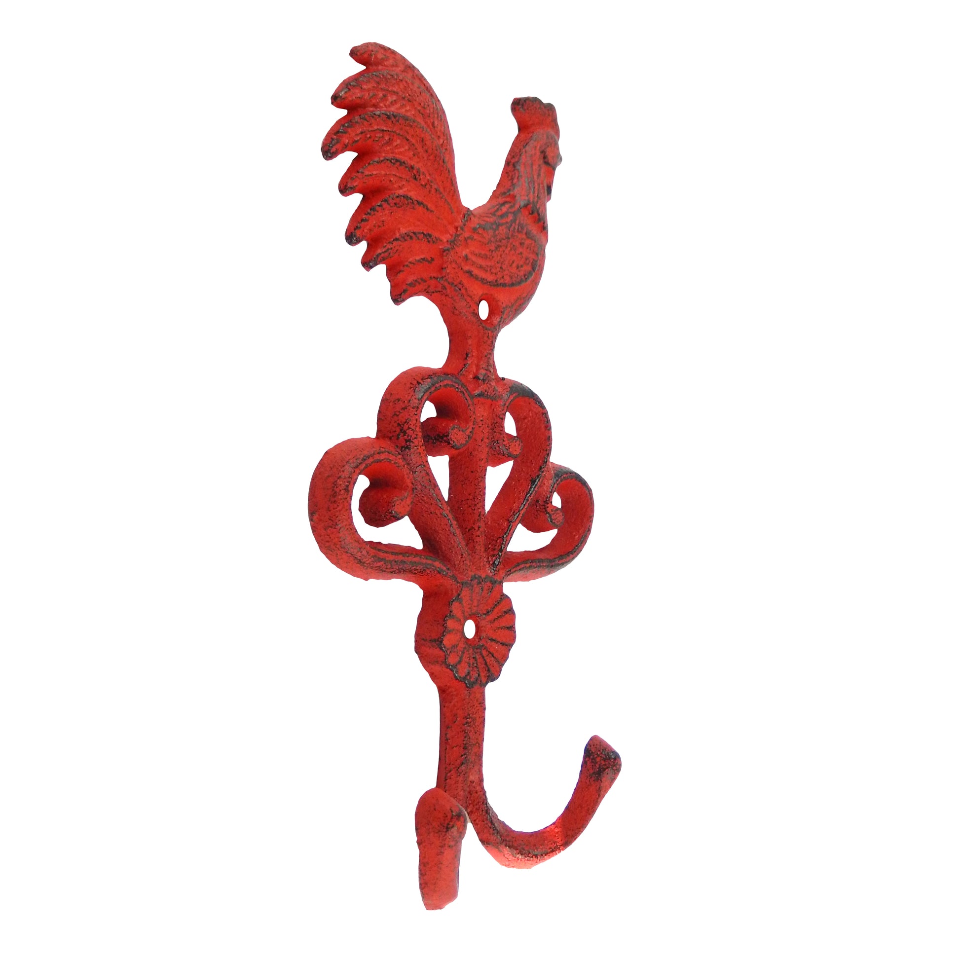 This rustic red cast iron rooster wall hook is great for hanging your coat, keys, towels, purse, and more.