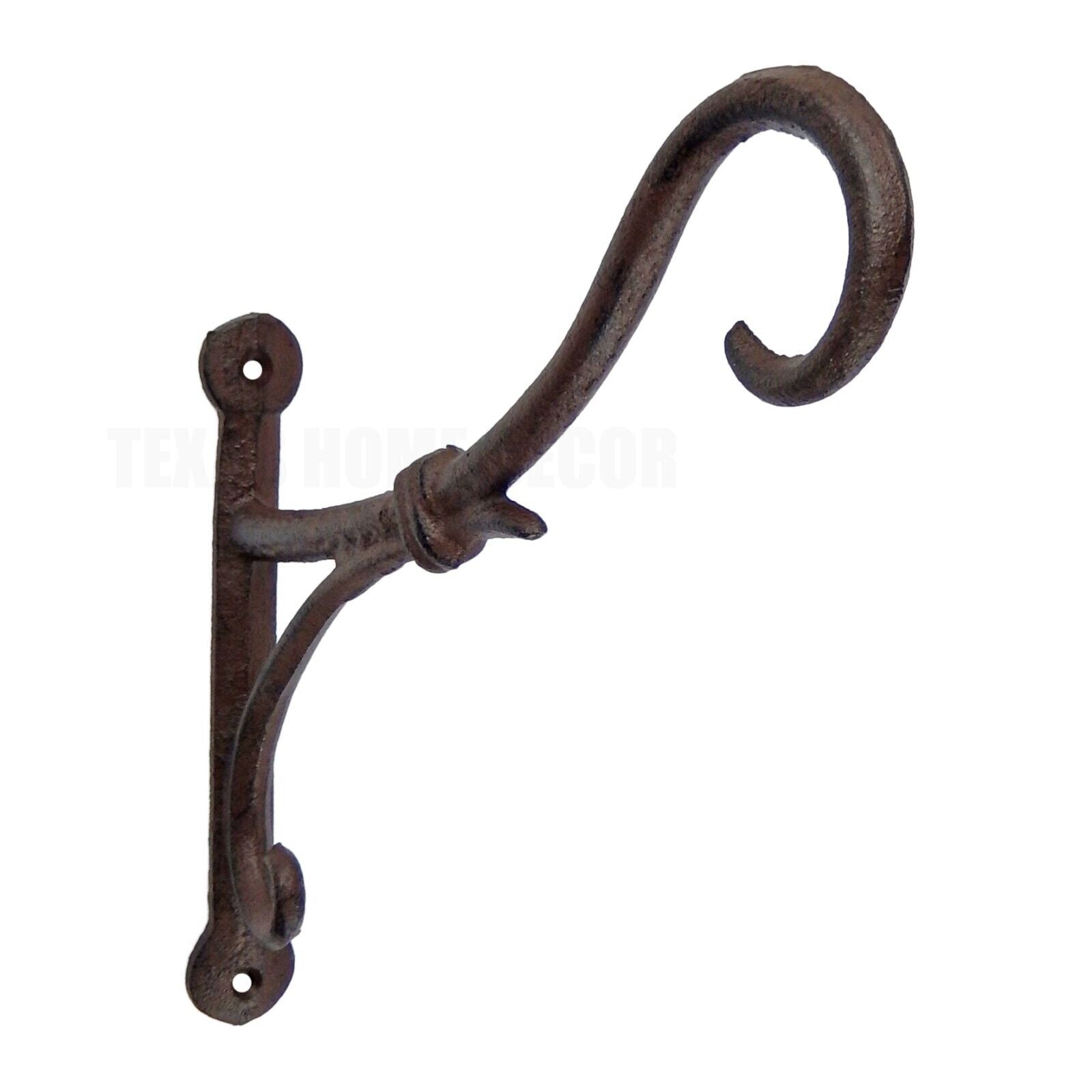 Cast Iron Scrolls Plant Hook Flower Basket Hanger Antique Style Rustic Brown