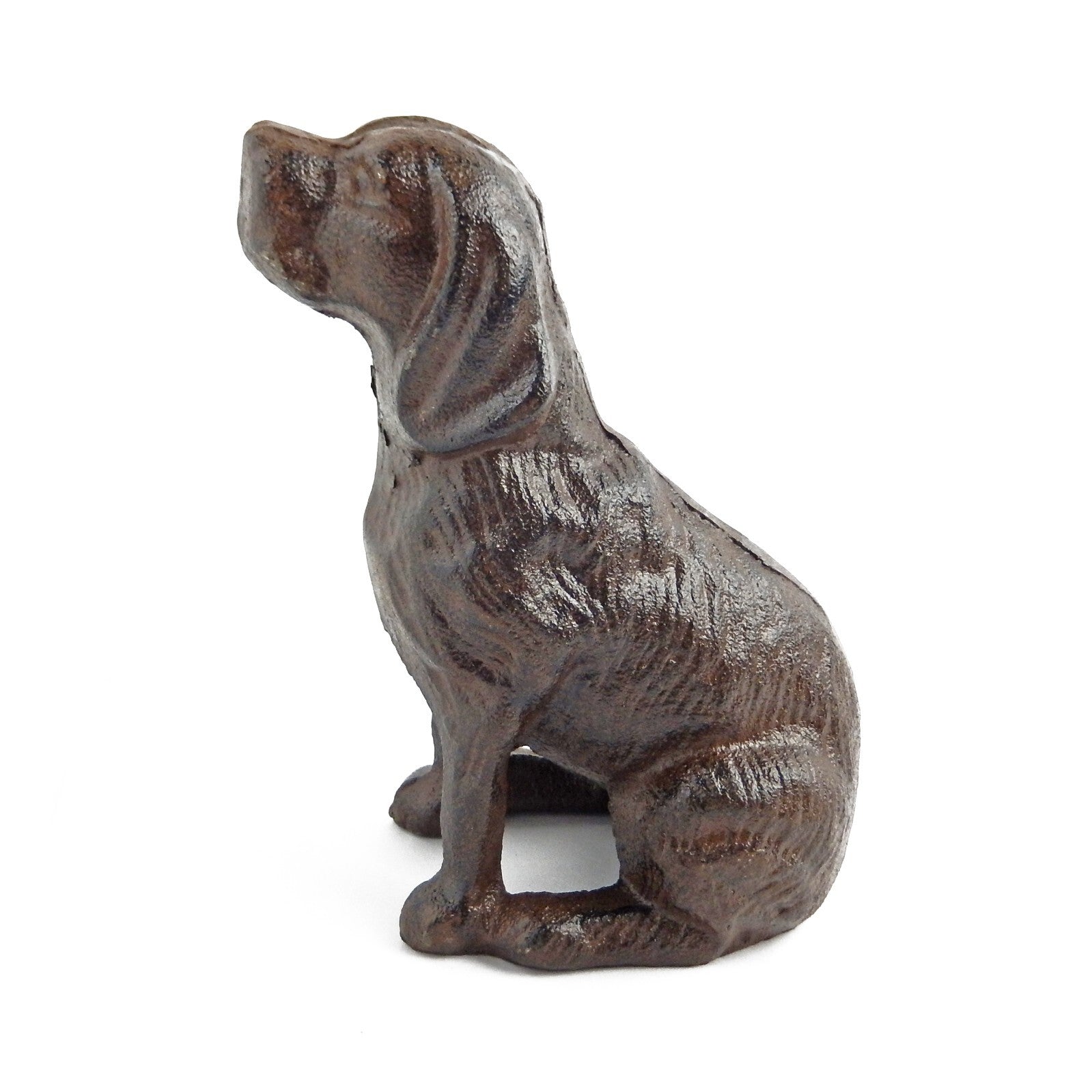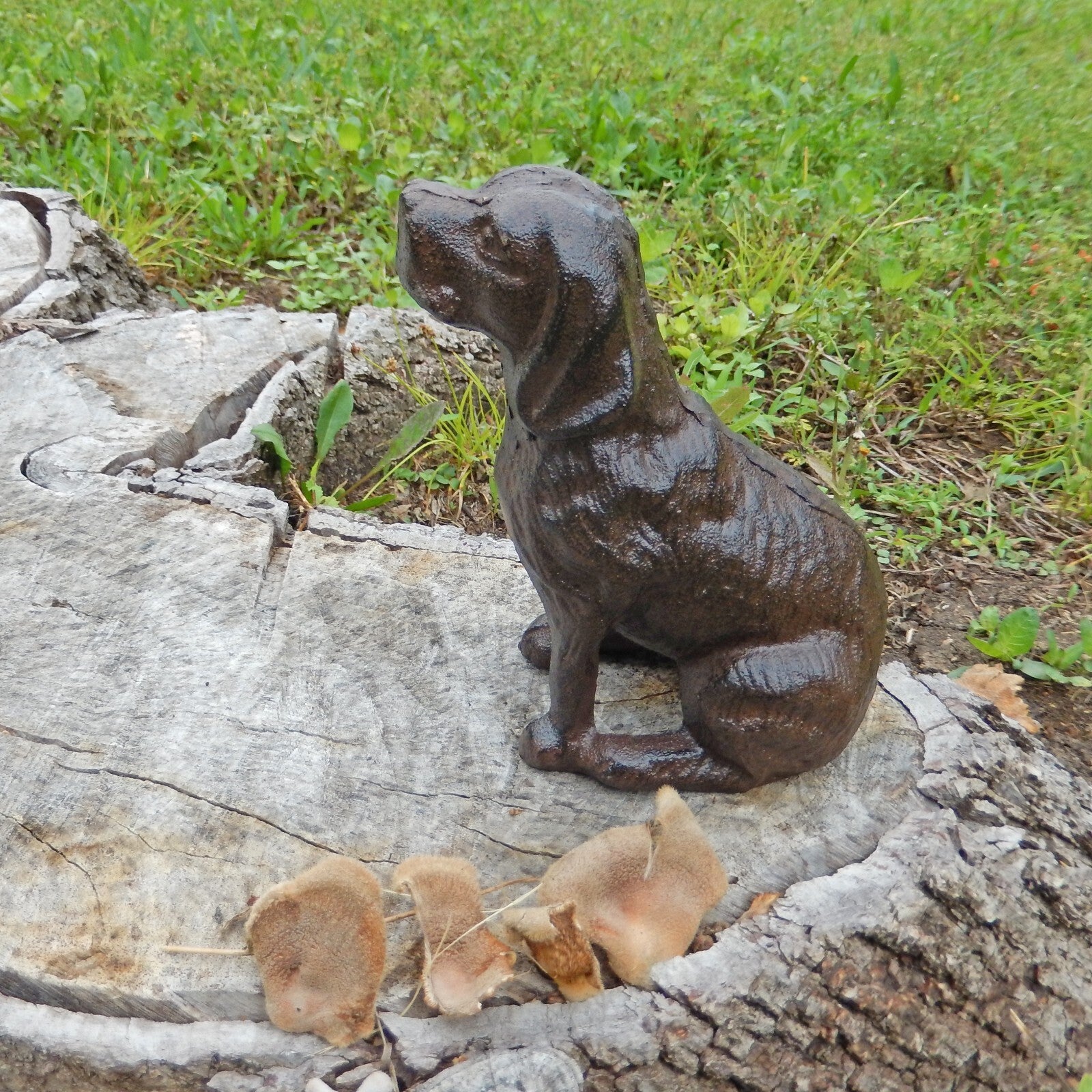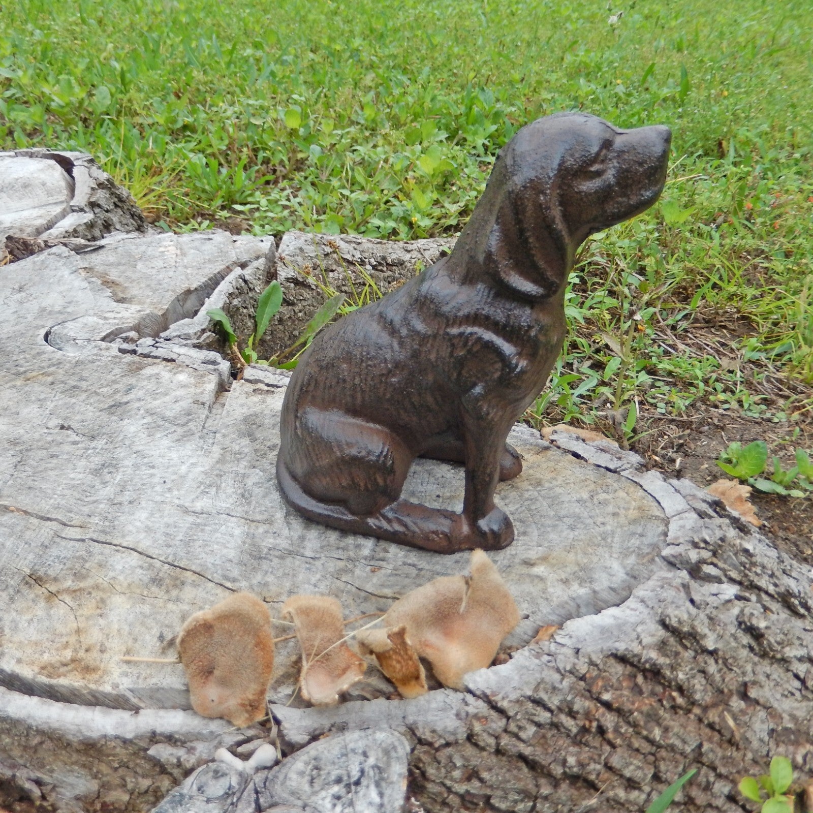 Cast Iron Sitting Dog Shelf Figurine Statue Rustic Brown Finish 6 inch Tall