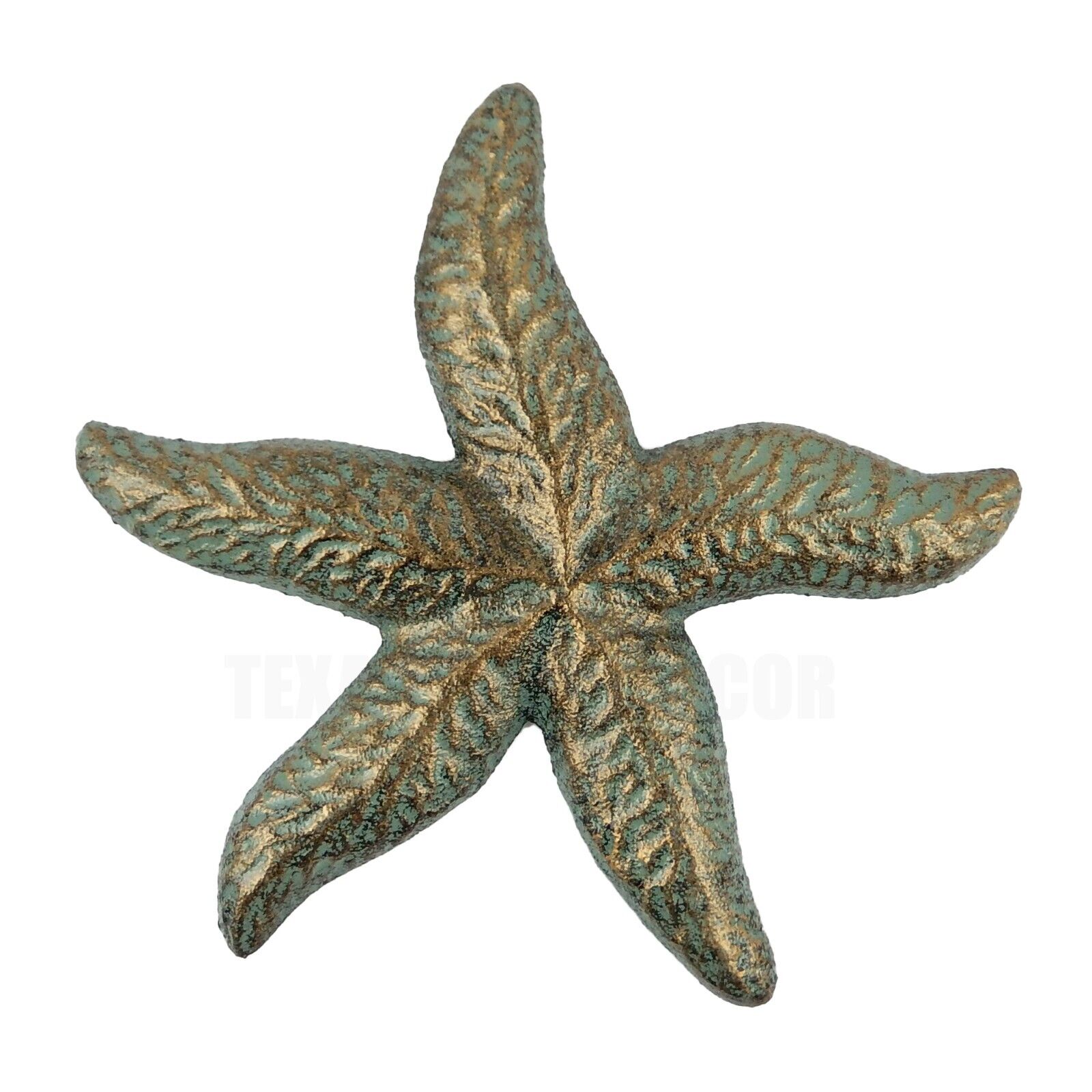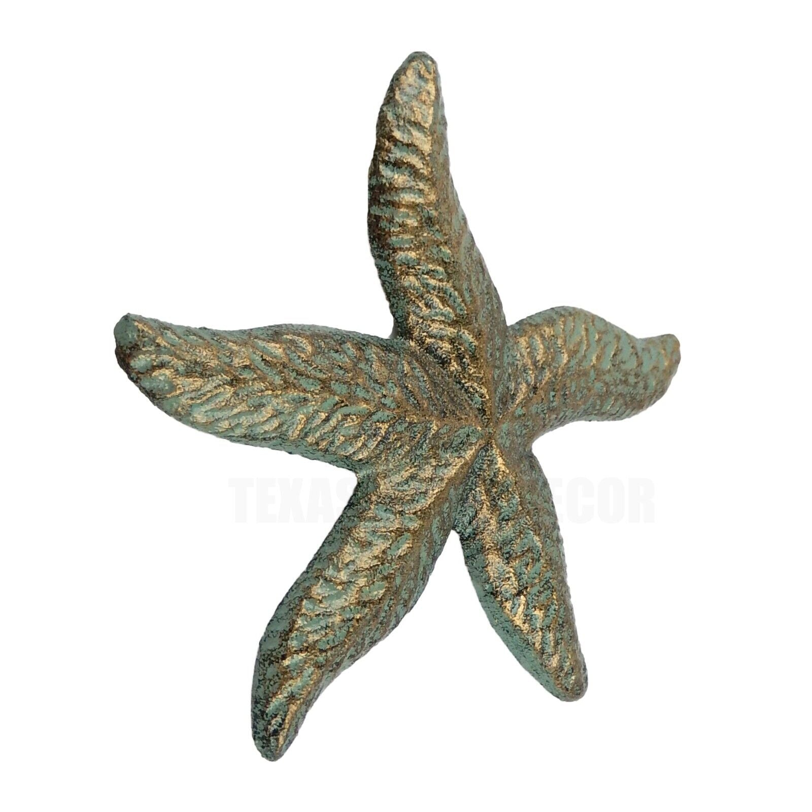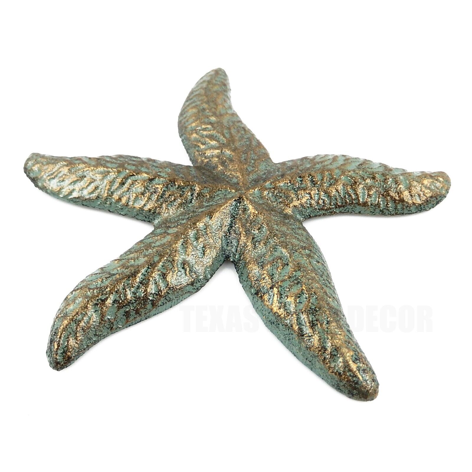 Cast Iron Starfish Nautical Wall Decor Verdigris Green Gold Finish 8 inch #7284