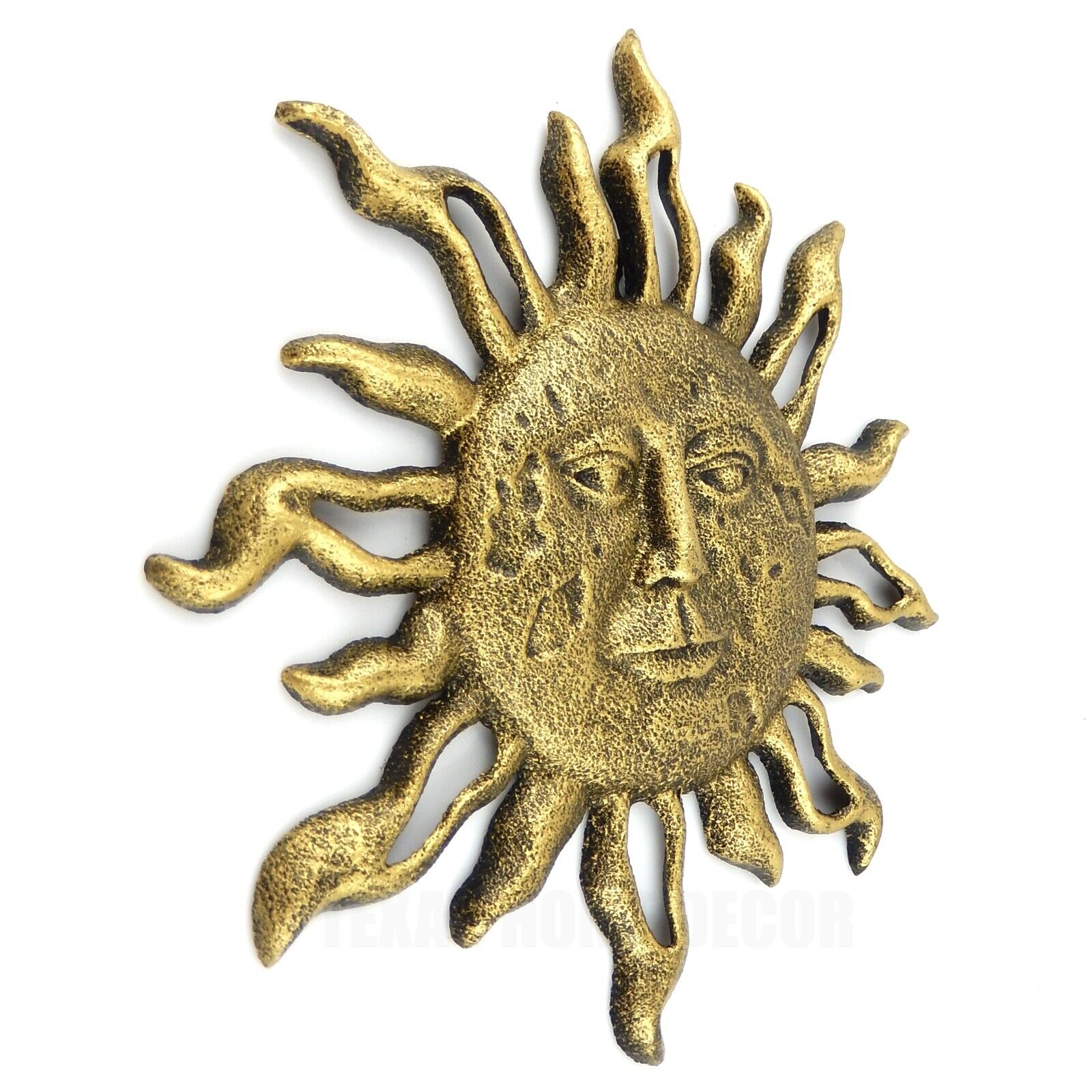 Cast Iron Sun Face Rays Wall Decor Heavy Duty Rustic Antique Gold Patina