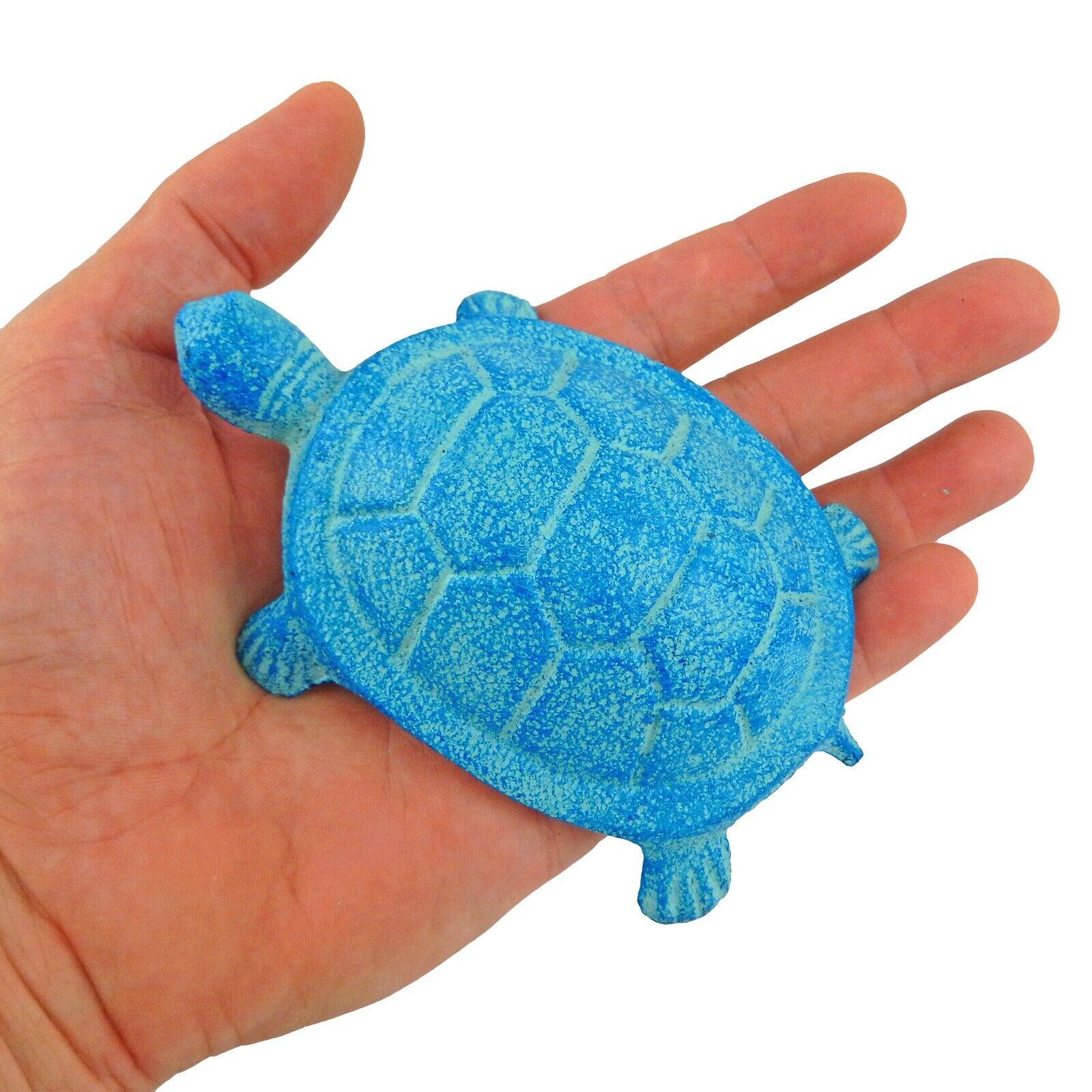 Cast Iron Turtle Figurine Antique Style Garden Pond Decor Sea Blue Finish 4.5 in #MA-2064