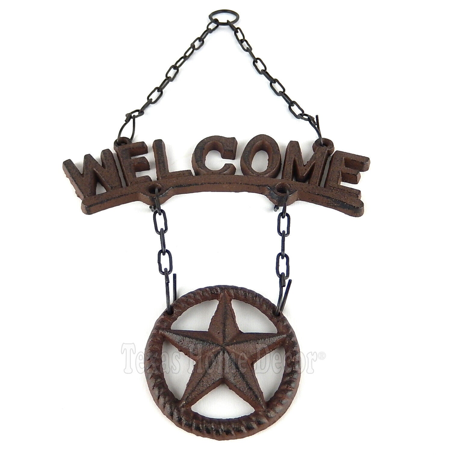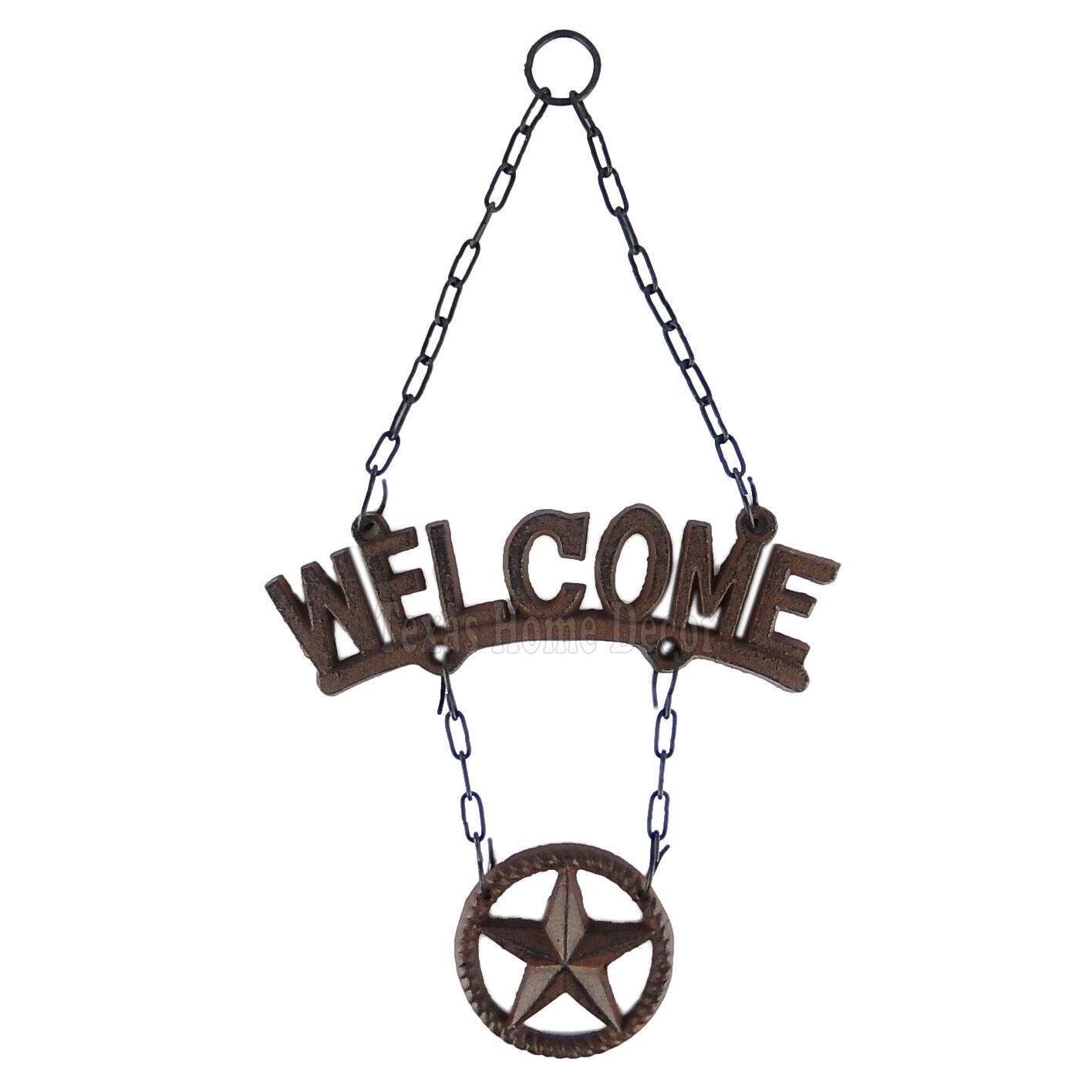 Cast Iron Welcome Porch Sign Western Wall Plaque Rustic Star Antique Style 13.5"